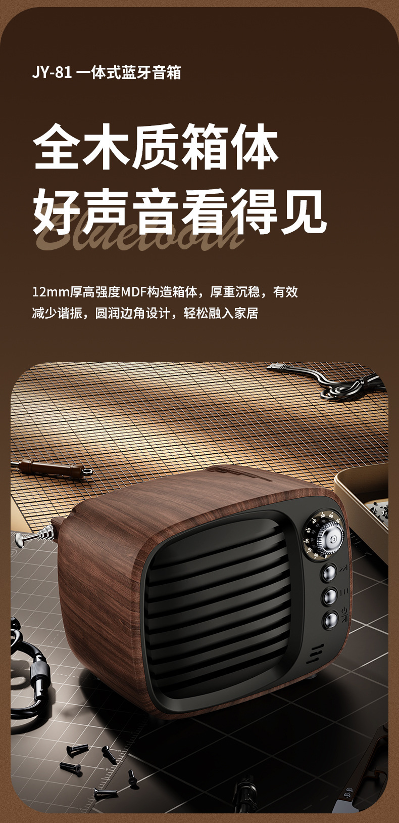 复古风蓝牙小音箱+FM收音机