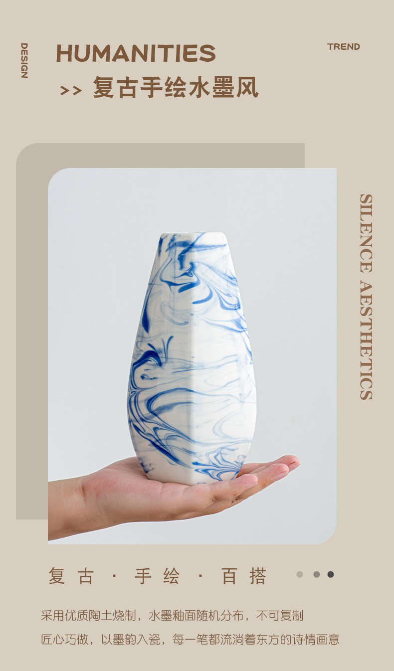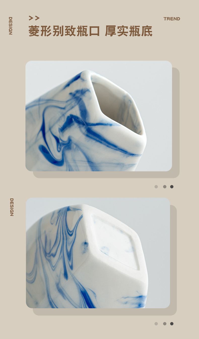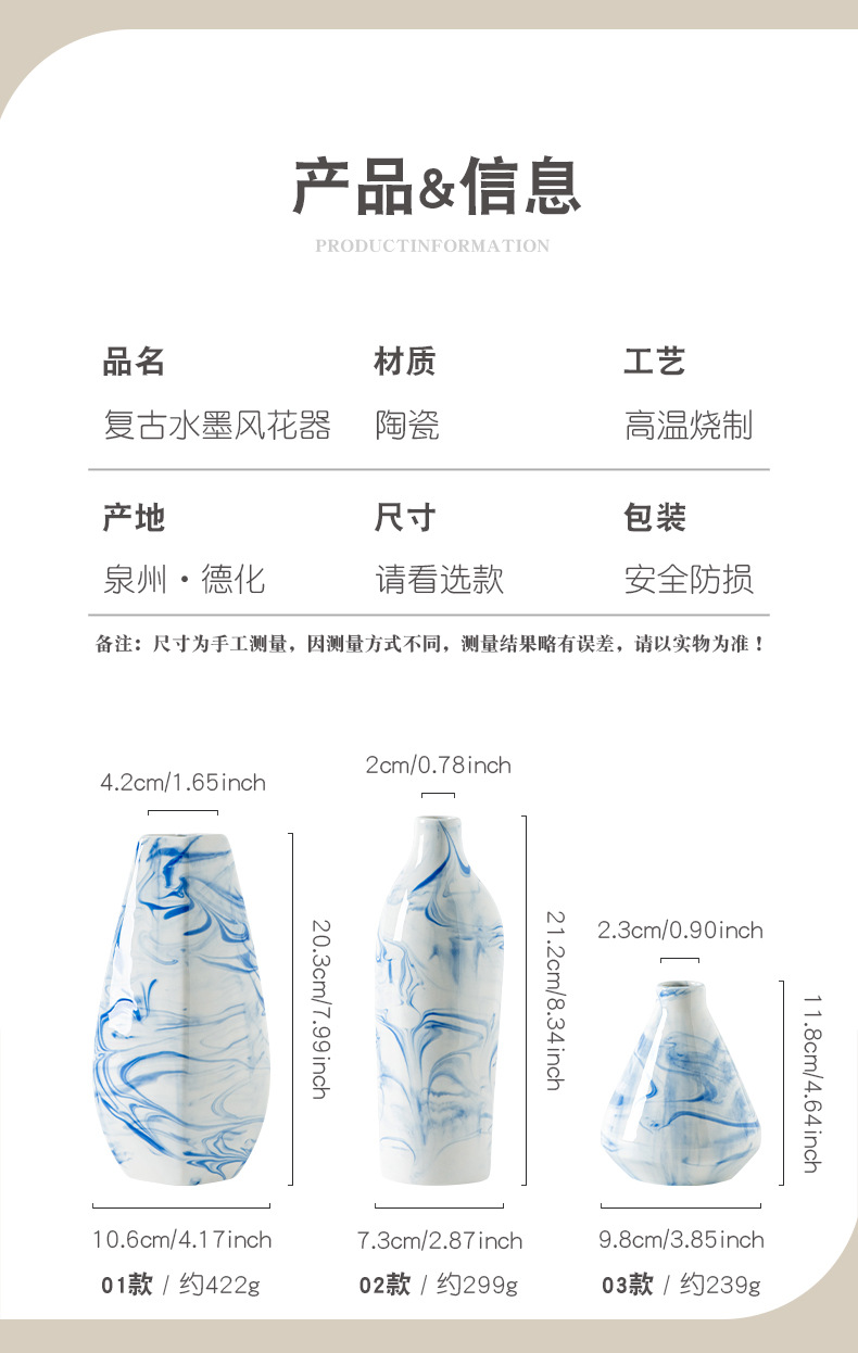 本司陶瓷均为我司生产基地独立设计、生产;工艺上以手工制做为主,花瓶内部和底部不在检测范围内,所售产品出现的小黑点或针孔等少许瑕疵均在国际行业标准的正常范畴之内。