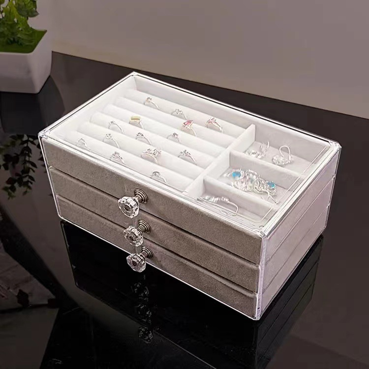 3 층 플란넬 쥬얼리 보관 상자 귀걸이 보관 상자 보석 방진 다기능 서랍 보석 상자