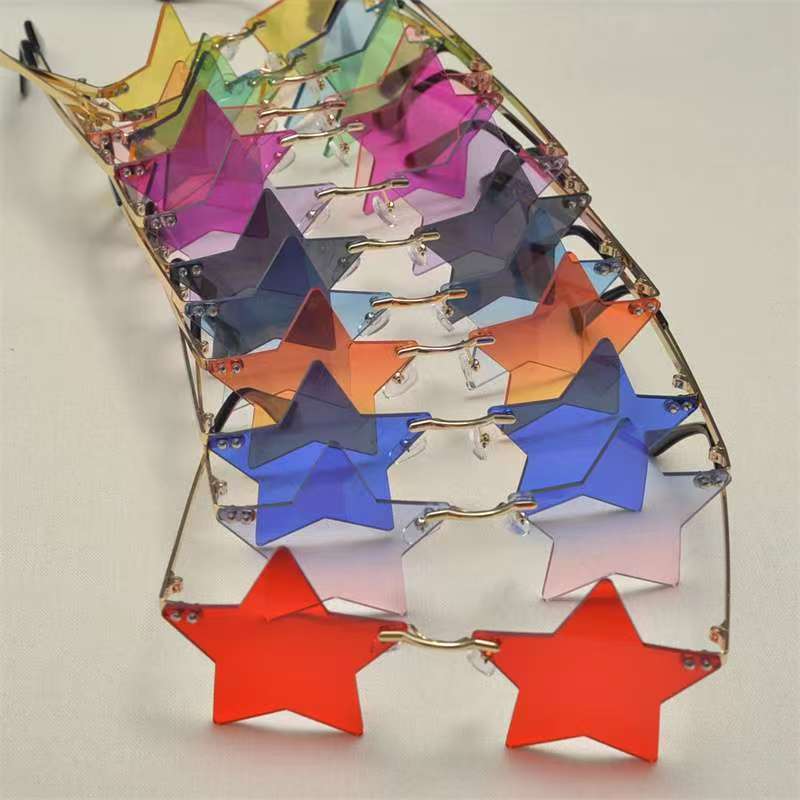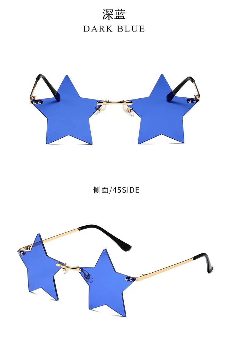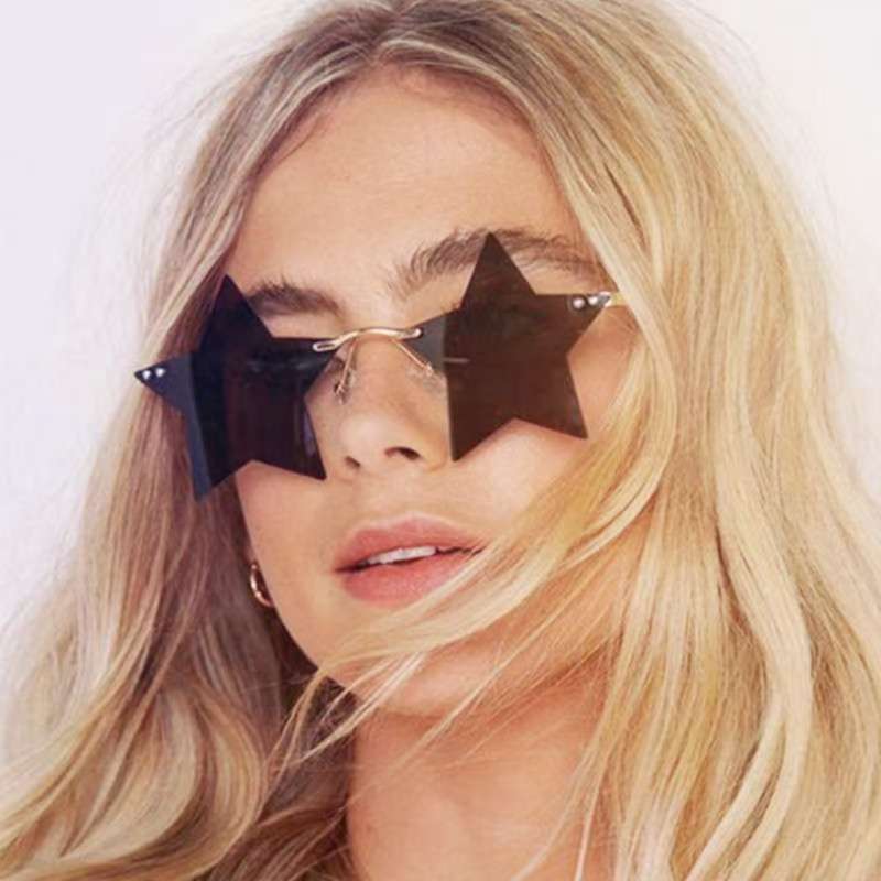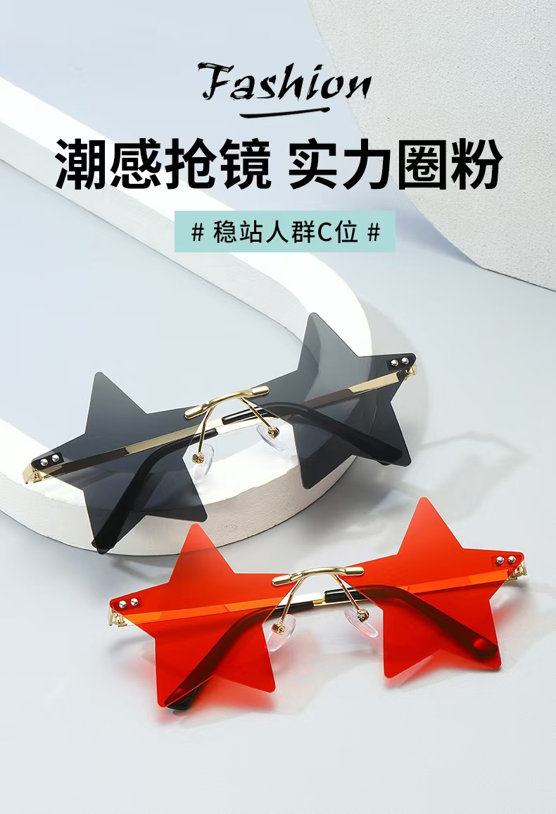 개성 넘치는 오각별 무테 선글라스 남성용 유럽 및 미국 패션 해양 렌즈 신상 선글라스 트렌디한 해외 무역 선글라스스토어 가기