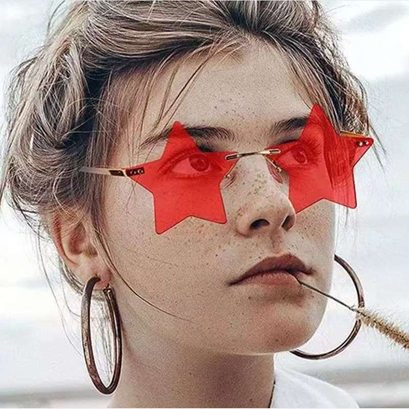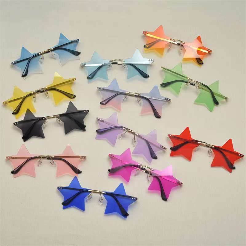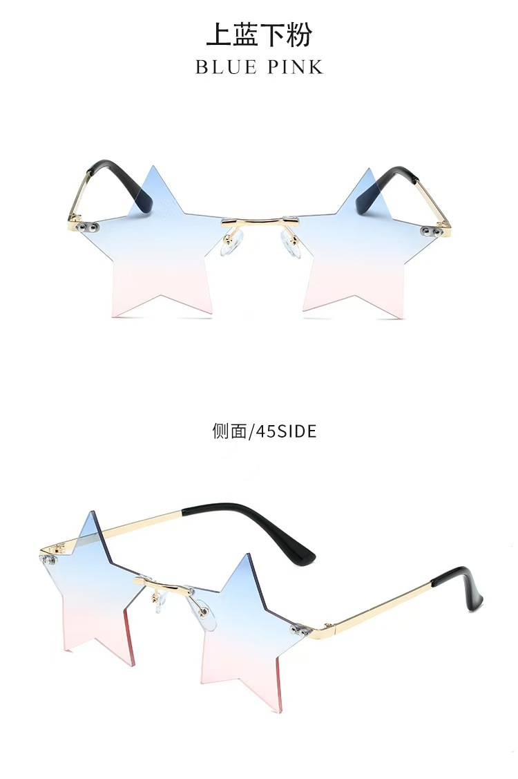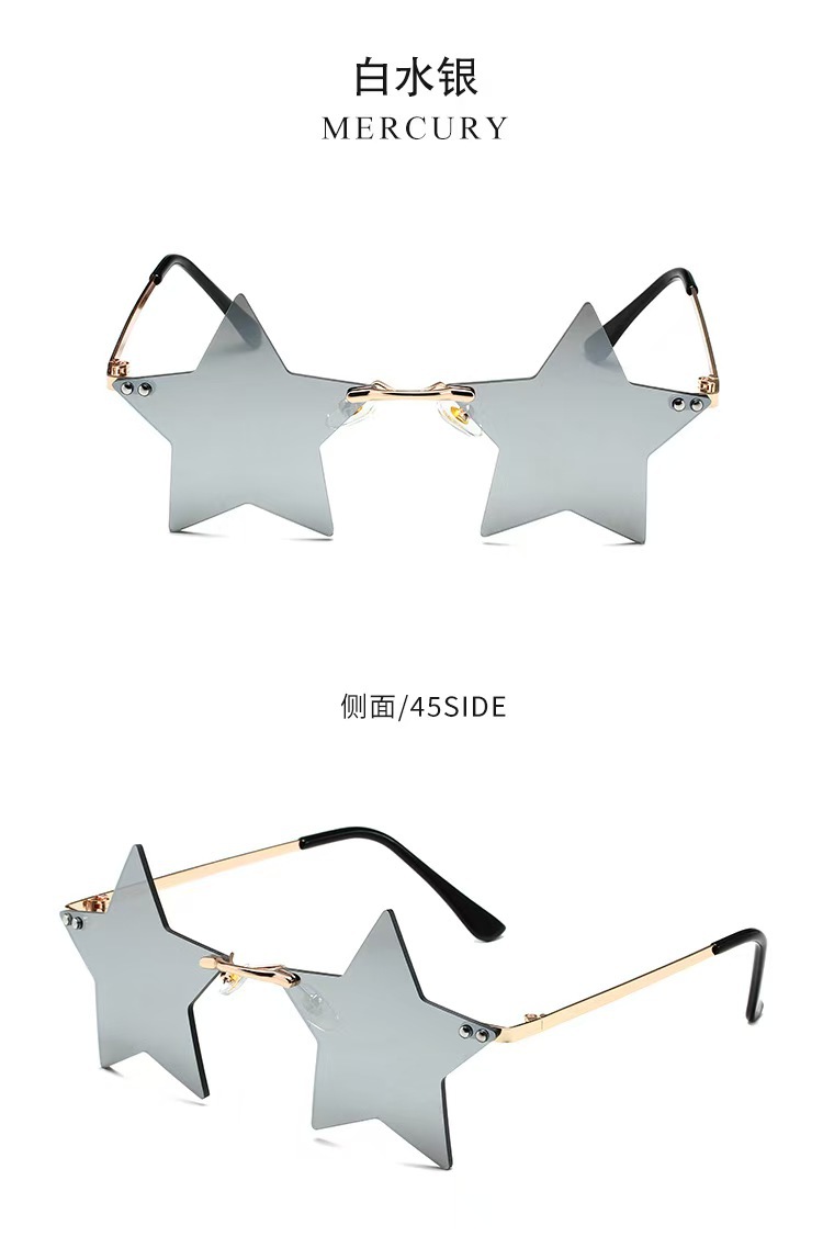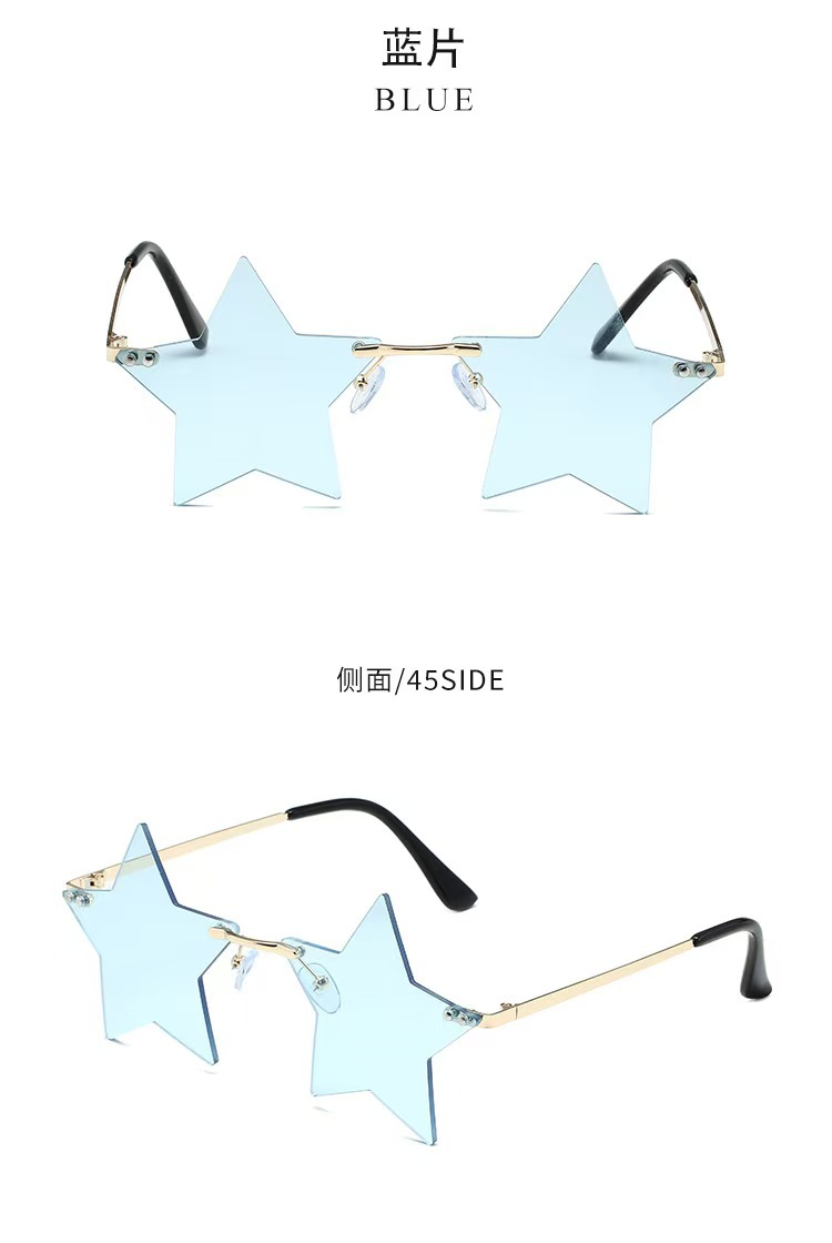 개성 넘치는 오각별 무테 선글라스 남성용 유럽 및 미국 패션 해양 렌즈 신상 선글라스 트렌디한 해외 무역 선글라스스토어 가기