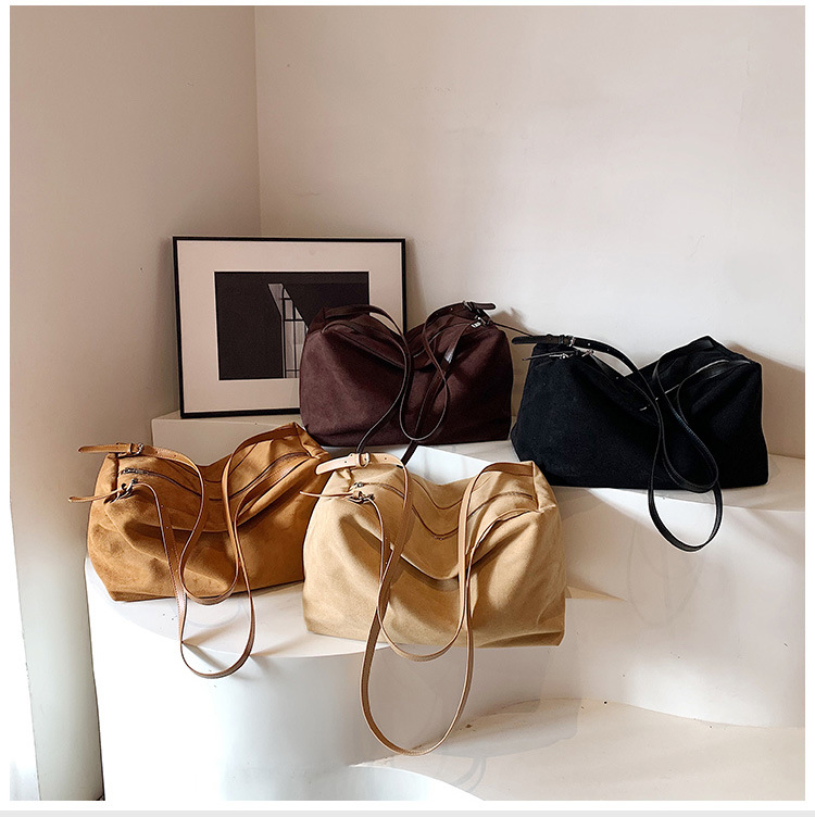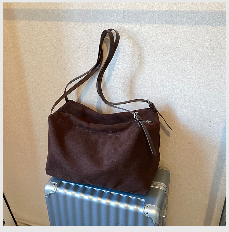국경 간 이완 대용량 게으른 스타일 스웨이드 베개 가방 2024 가을과 겨울 새로운 복고풍 어깨 가방