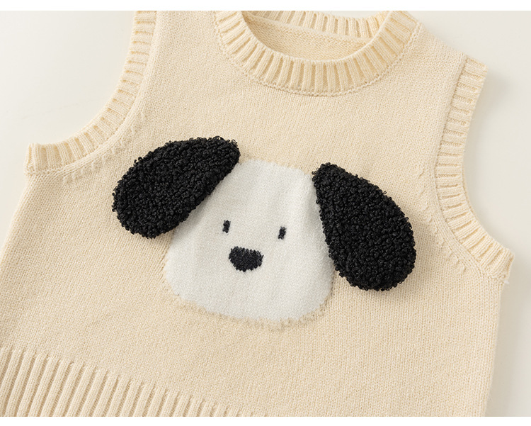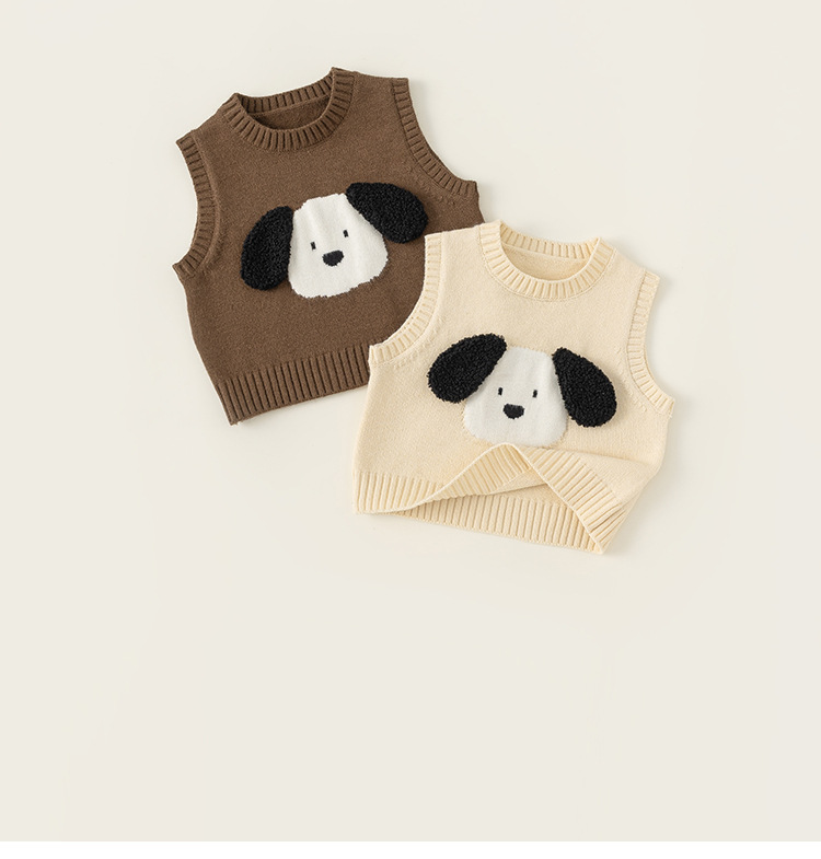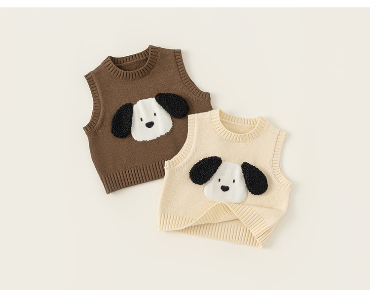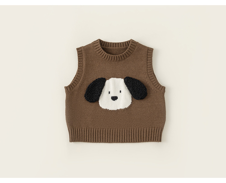 방선택 아동복 2026 신상품 가을 스타일 유아용 귀여운 강아지 무늬 레이어드 니트 조끼 남아용 스웨터 조끼스토어 가기