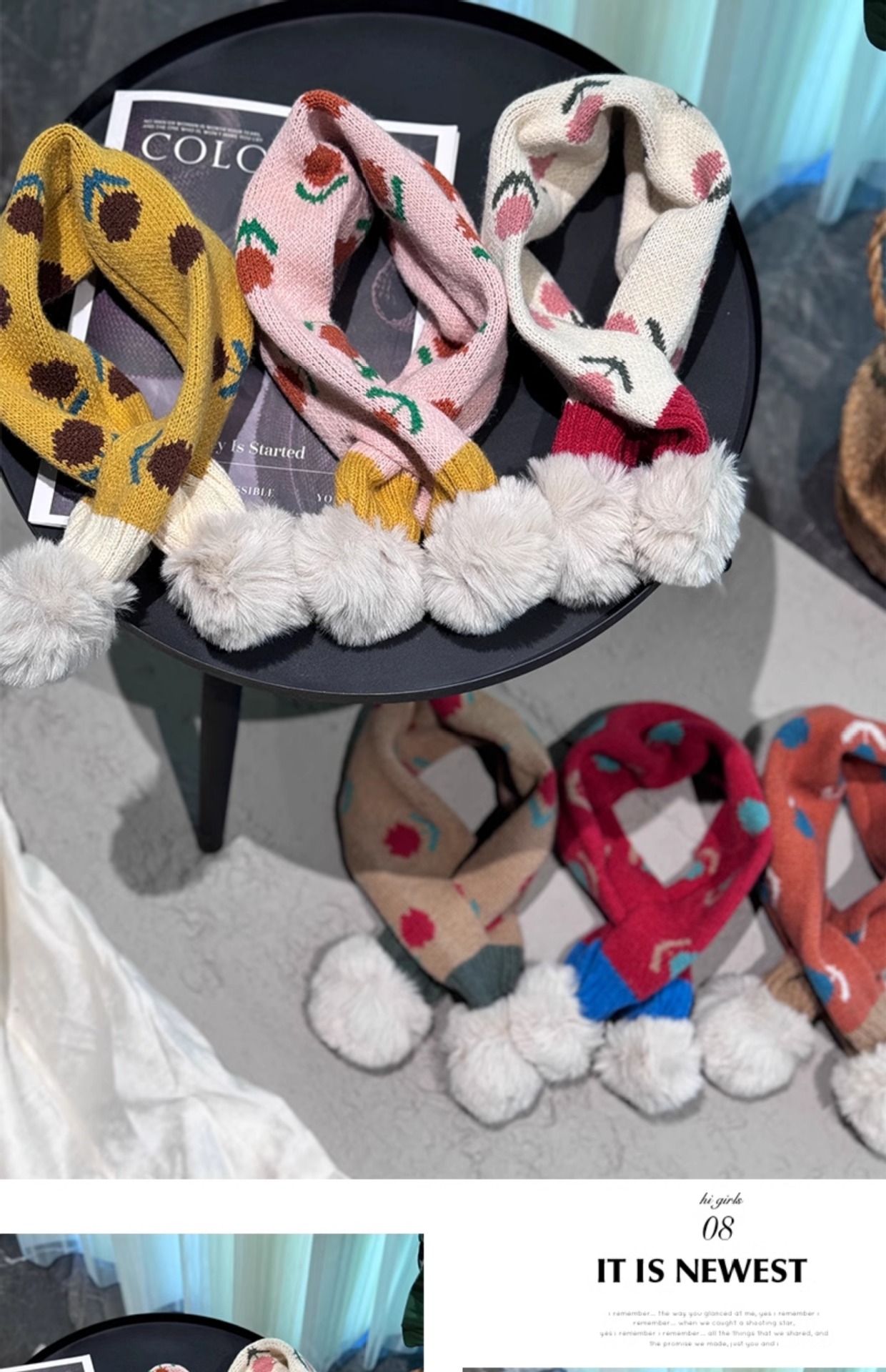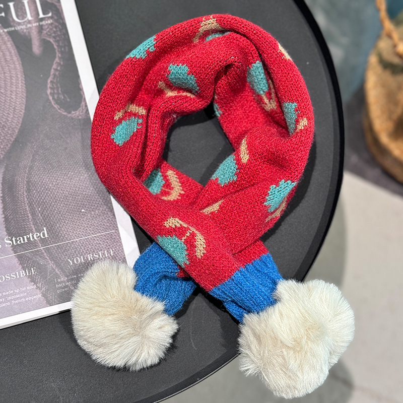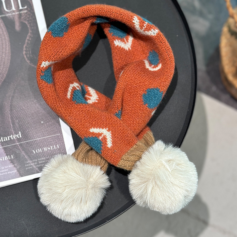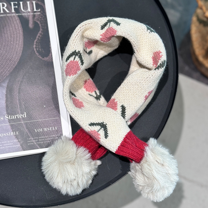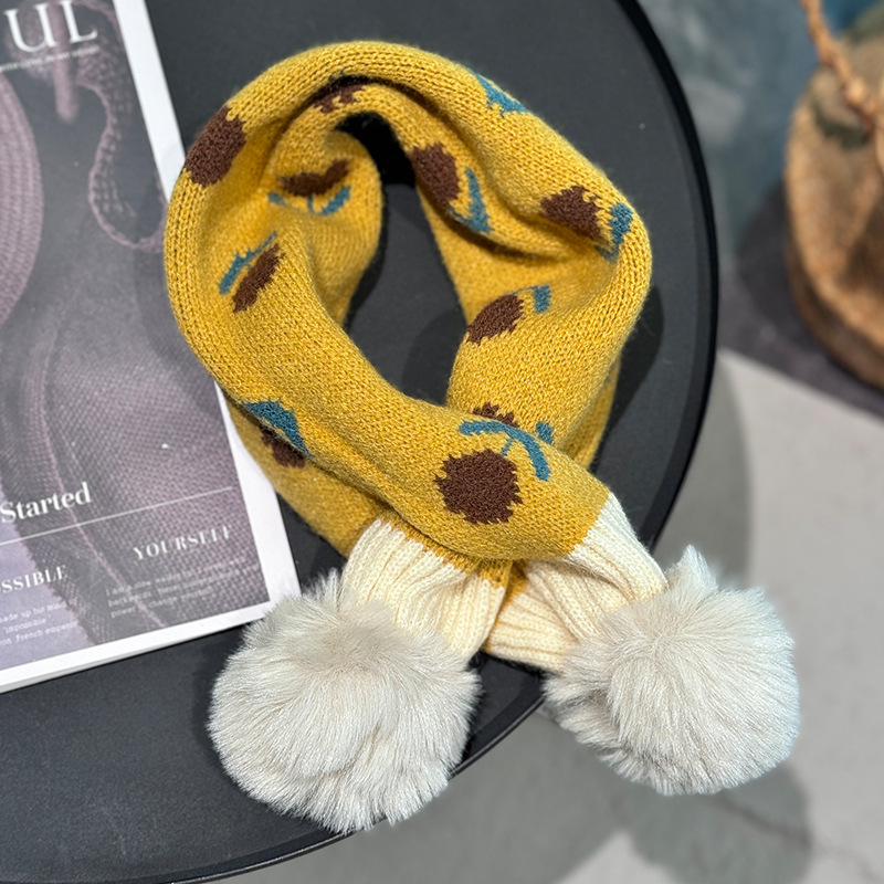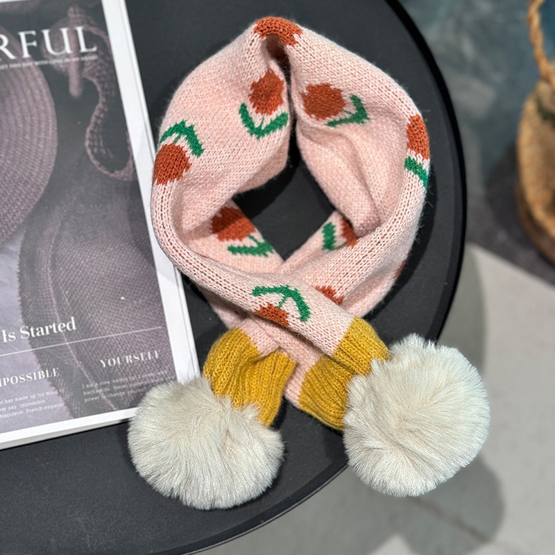 2024 일본과 한국식 트렌디 한 어린이 십자가 스카프 작은 꽃 니트 목 여성 보물 가을과 겨울 새로운 따뜻한 칼라스토어 가기