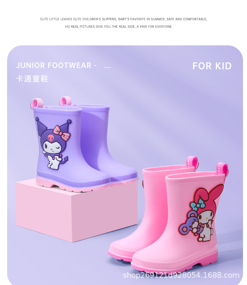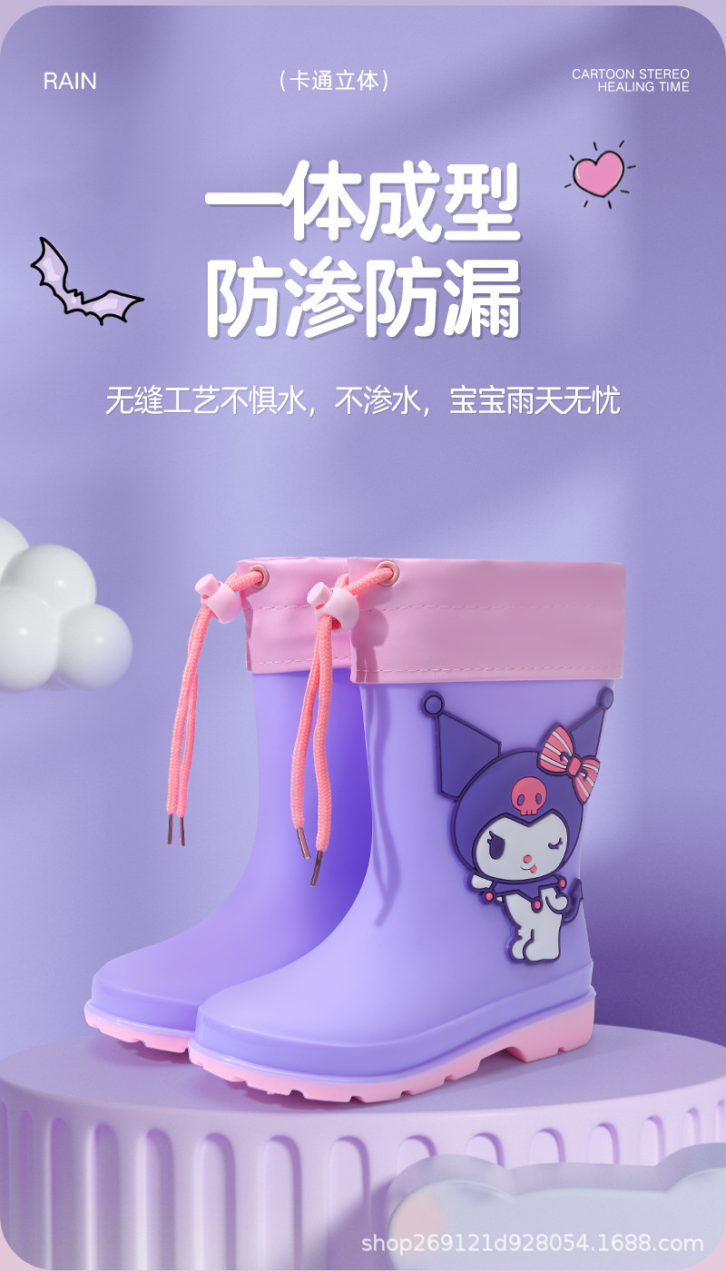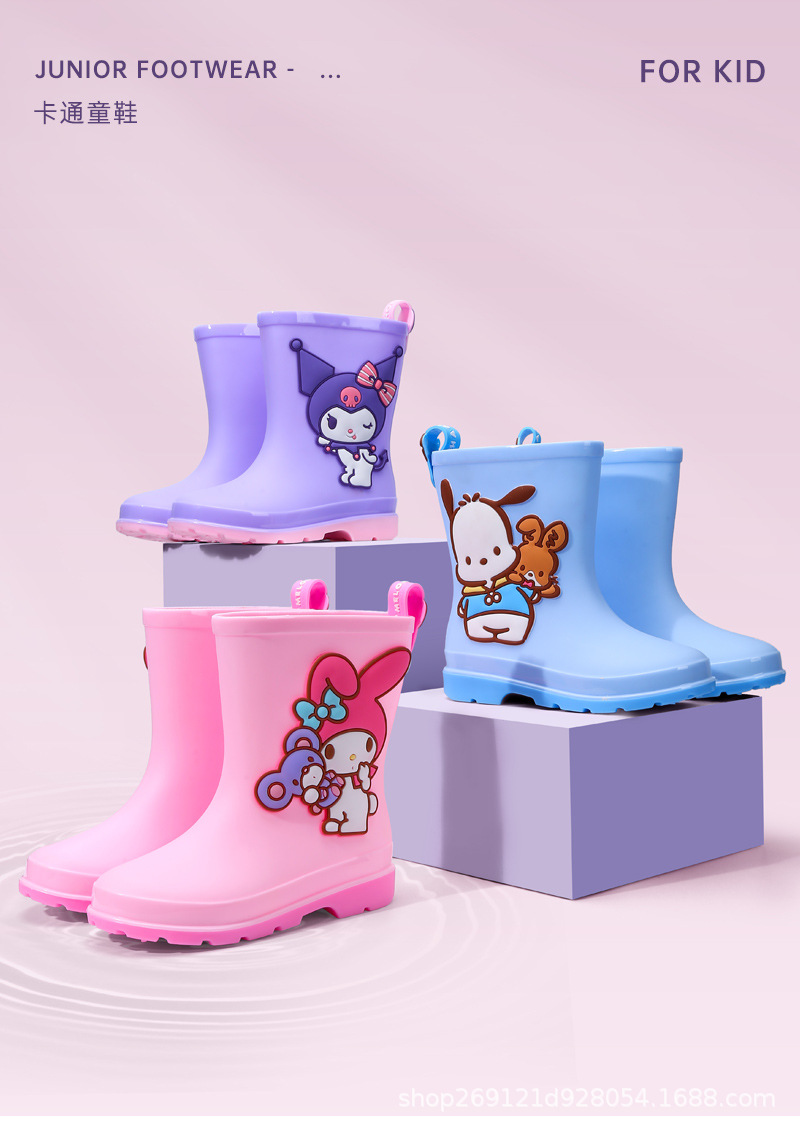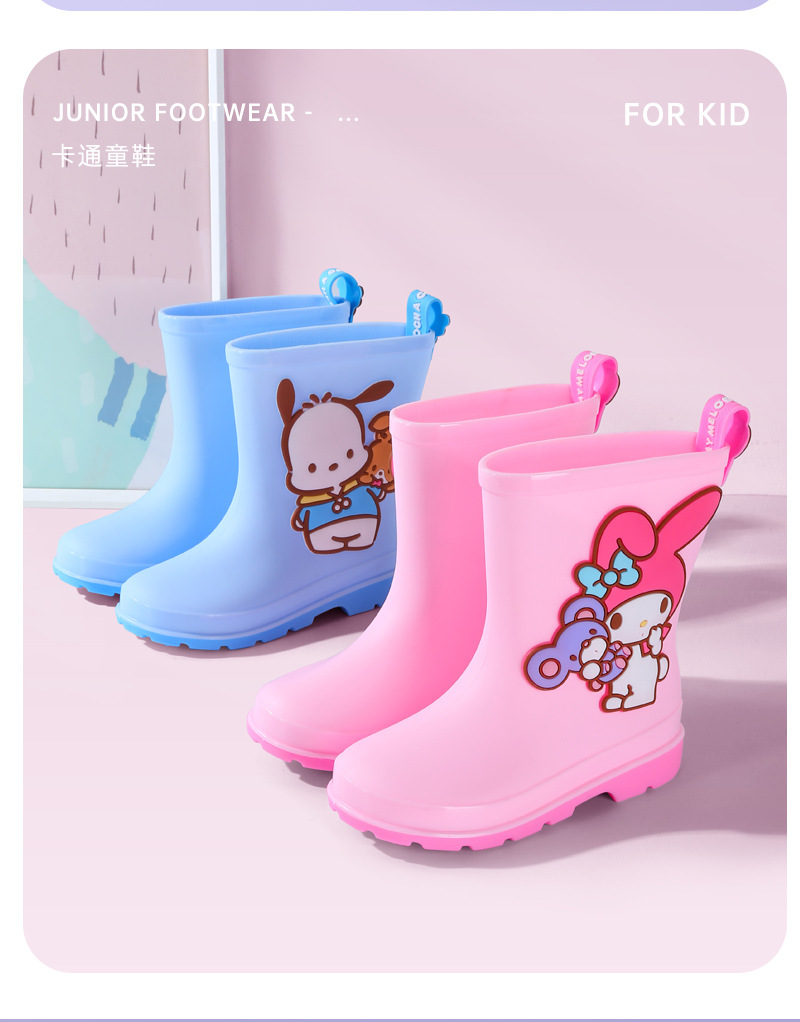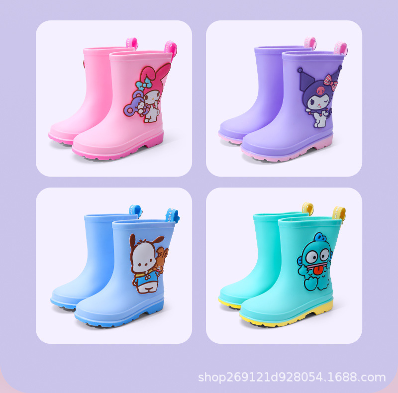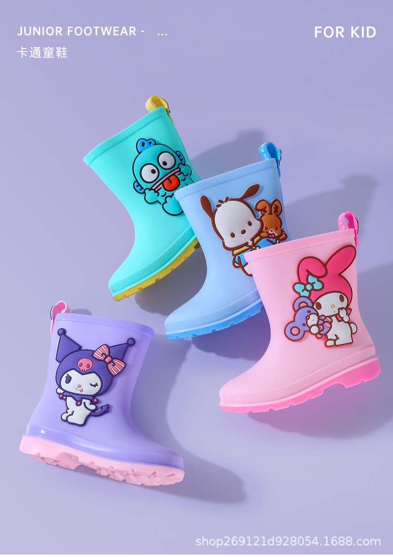 Sanrio 어린이 장화 만화 귀여운 소년과 소녀 방수 장화 유치원 어린이 아기 미끄럼 방지 고무 신발