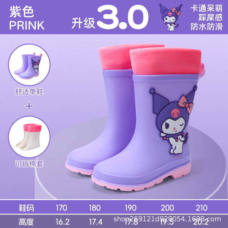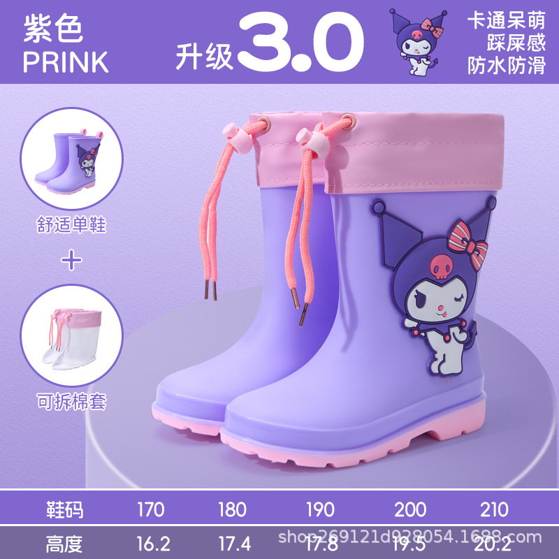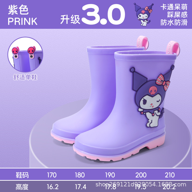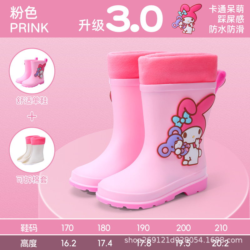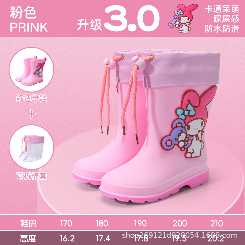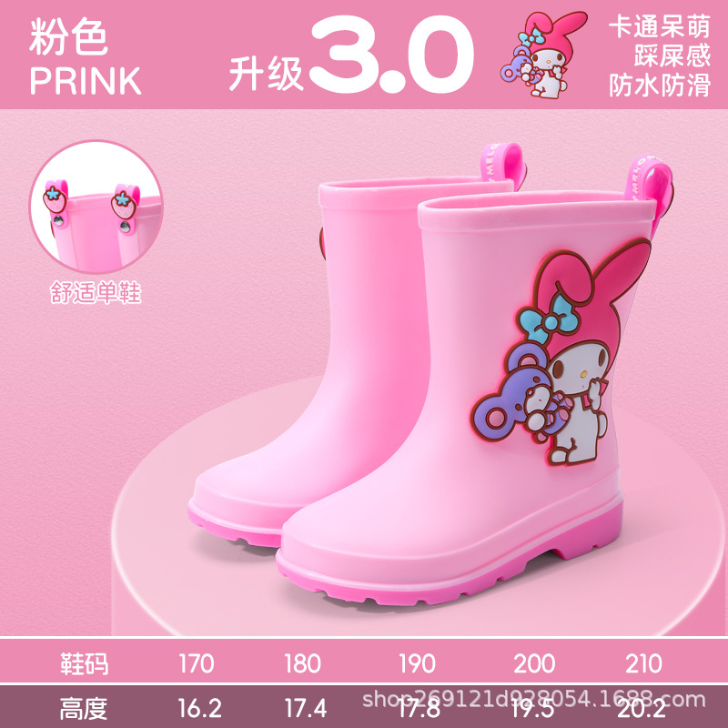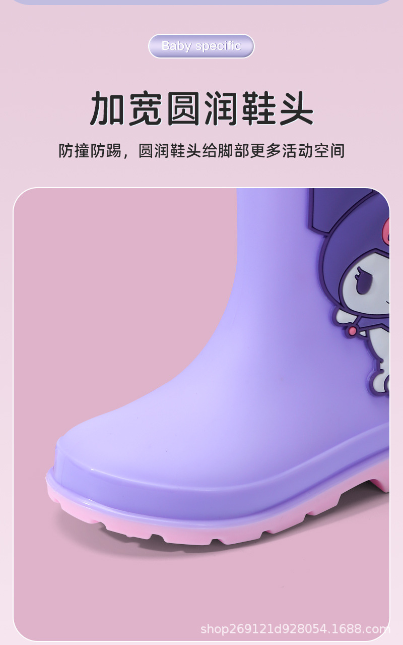 Sanrio 어린이 장화 만화 귀여운 소년과 소녀 방수 장화 유치원 어린이 아기 미끄럼 방지 고무 신발