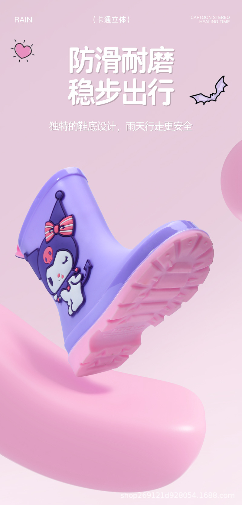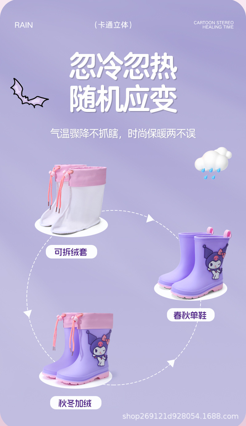 Sanrio 어린이 장화 만화 귀여운 소년과 소녀 방수 장화 유치원 어린이 아기 미끄럼 방지 고무 신발스토어 가기