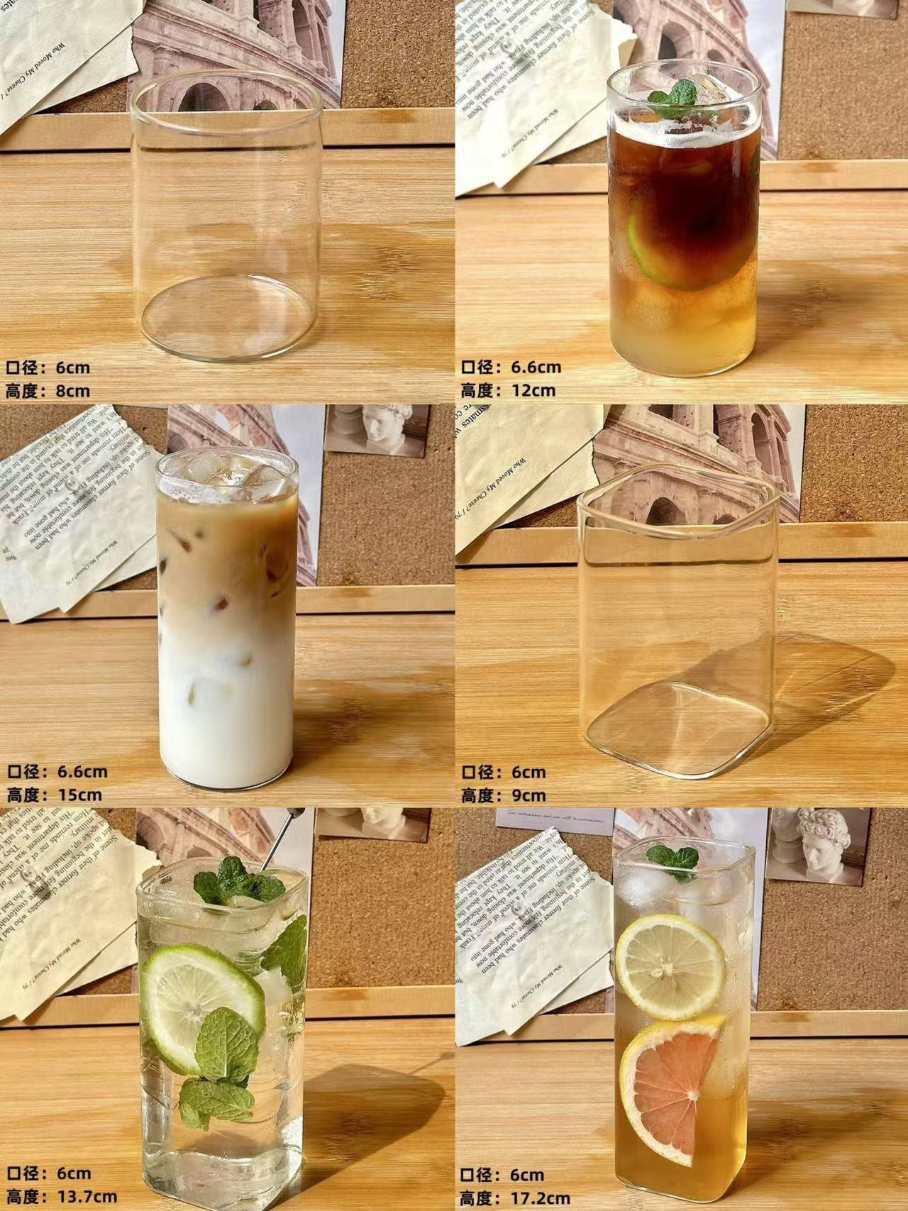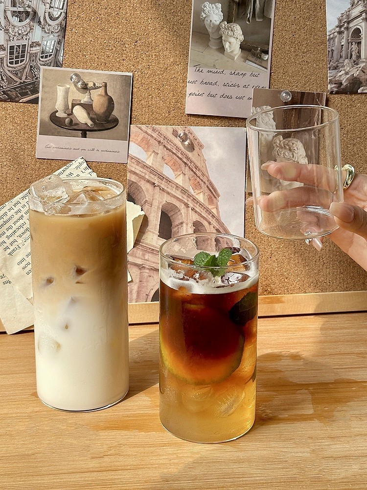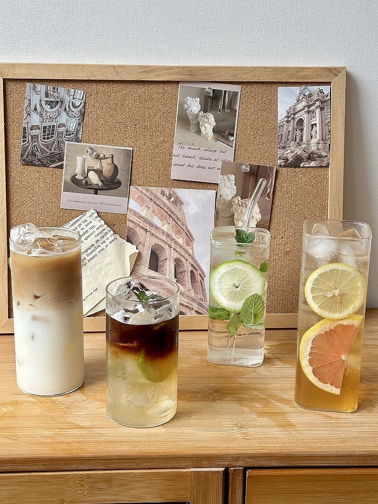 Ins 스타일 유리 레몬 컵 스트레이트 차가운 음료 컵 유리 바 칵테일 컵 셰이커 컵 가정용 주스 컵스토어 가기