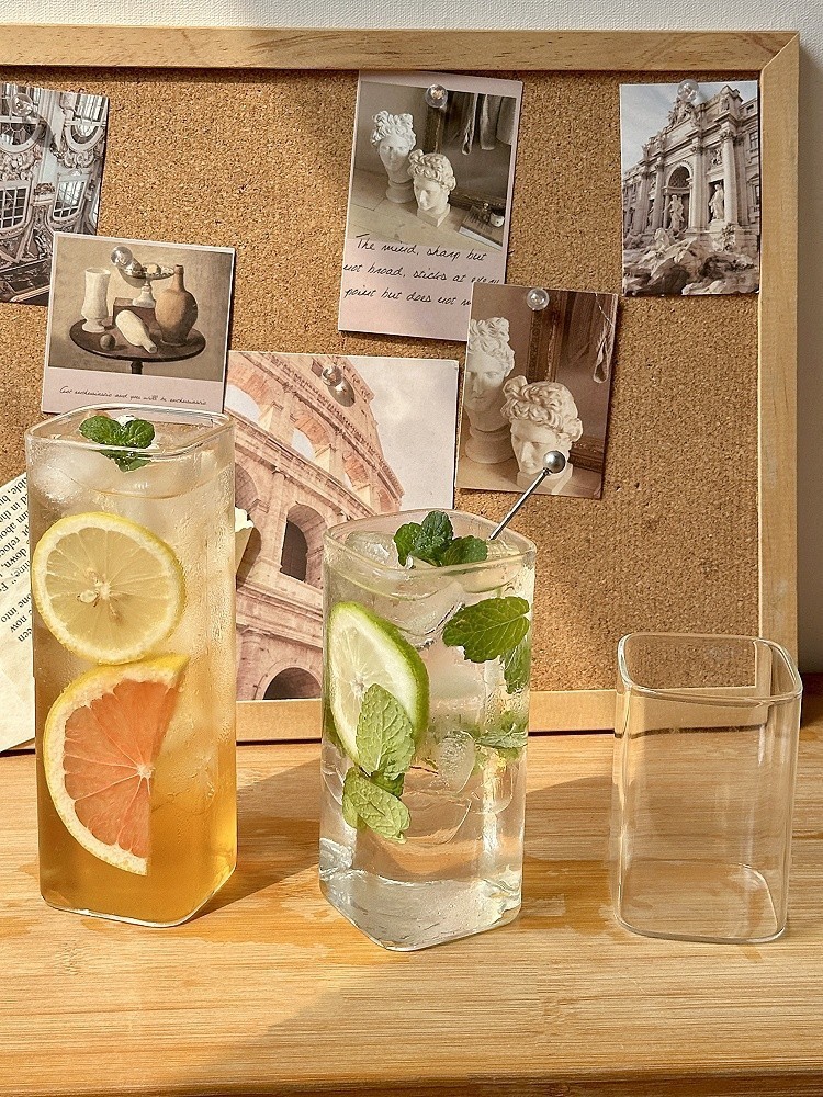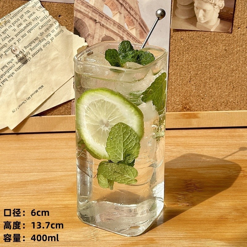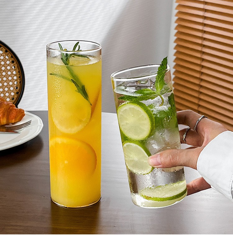 Ins 스타일 유리 레몬 컵 스트레이트 차가운 음료 컵 유리 바 칵테일 컵 셰이커 컵 가정용 주스 컵