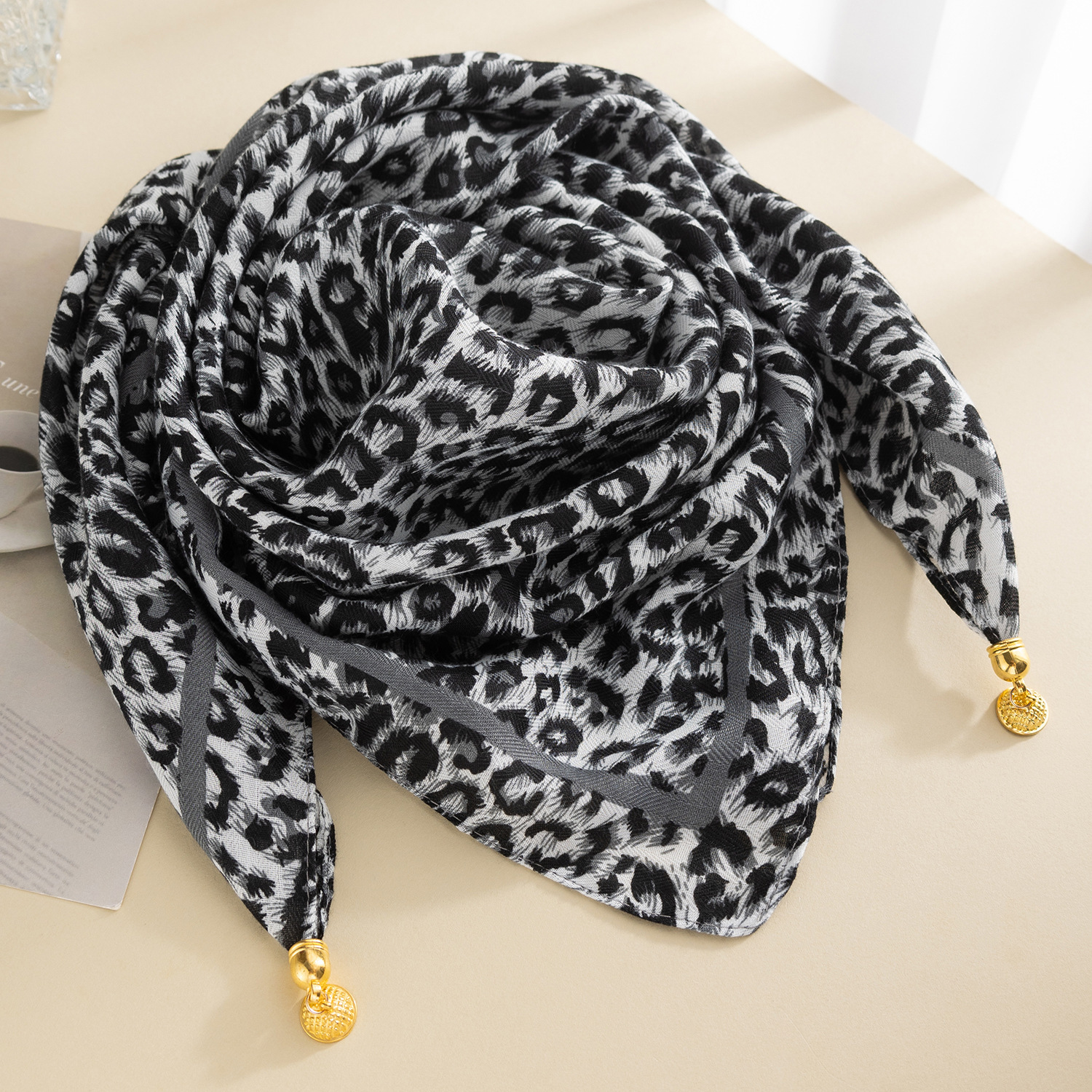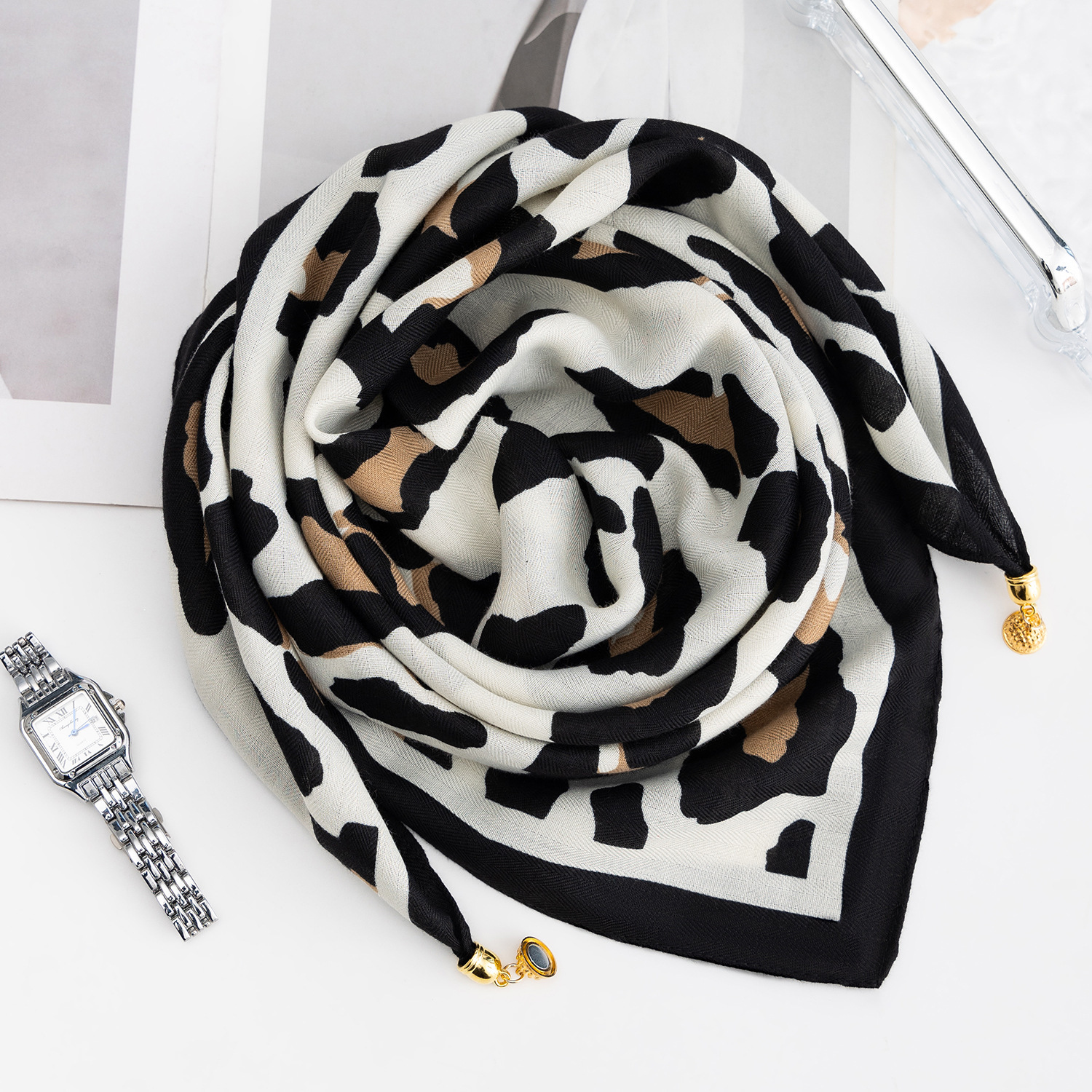 • 밀크 커피 레오파드 프린트 + 자석 버클 스카프