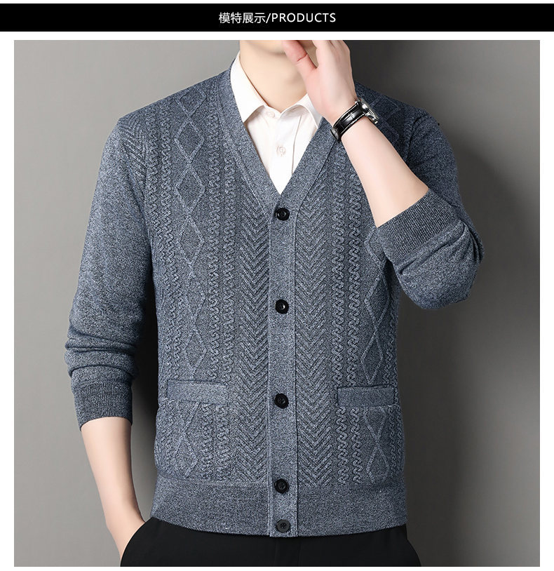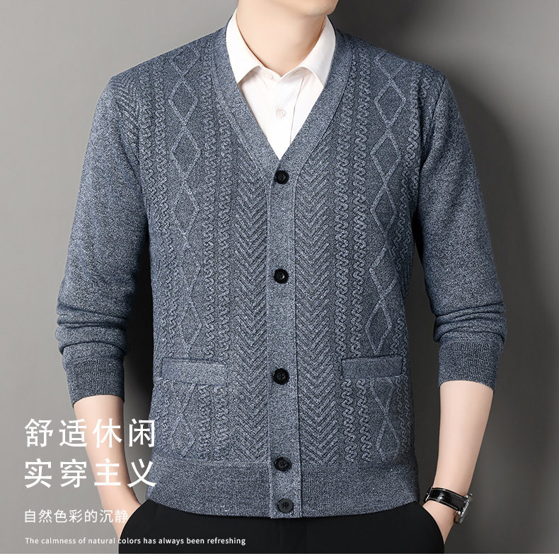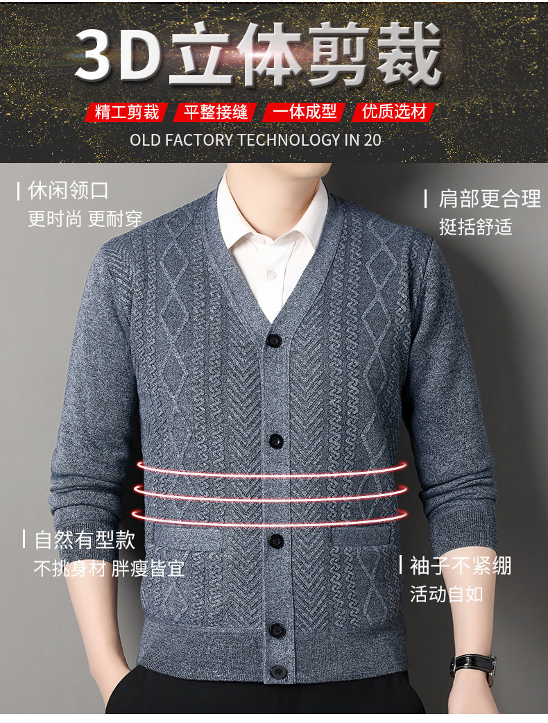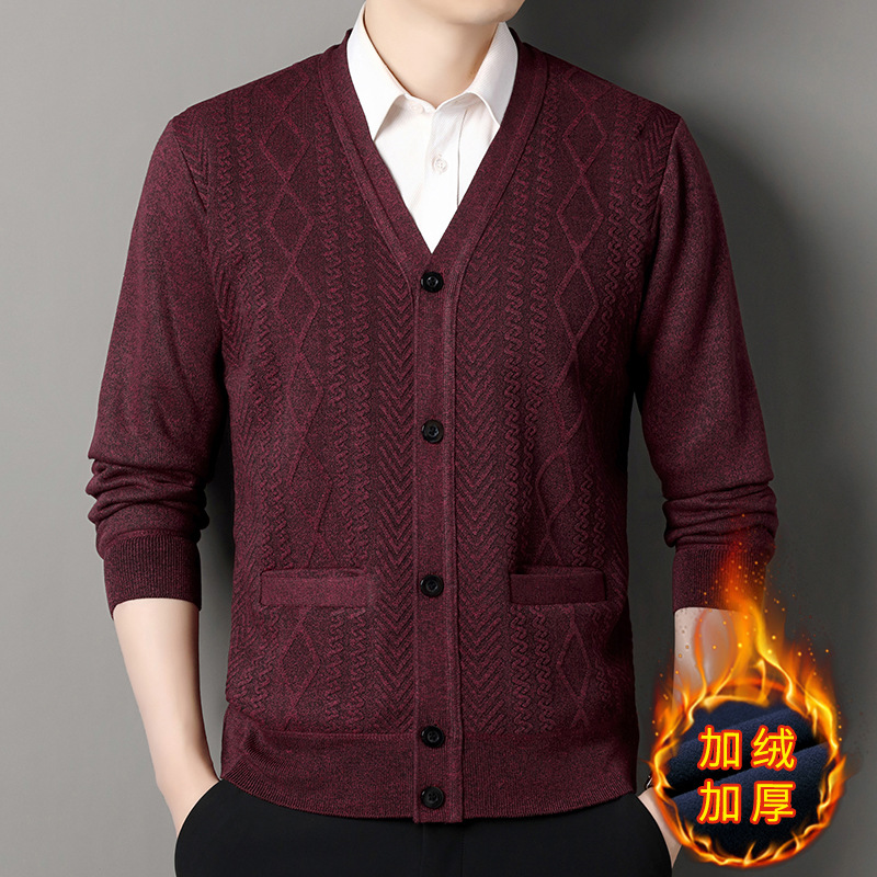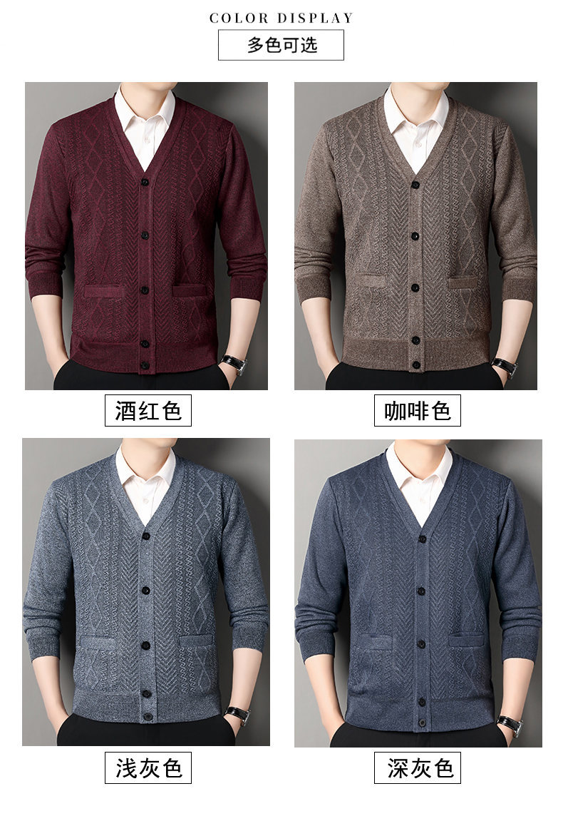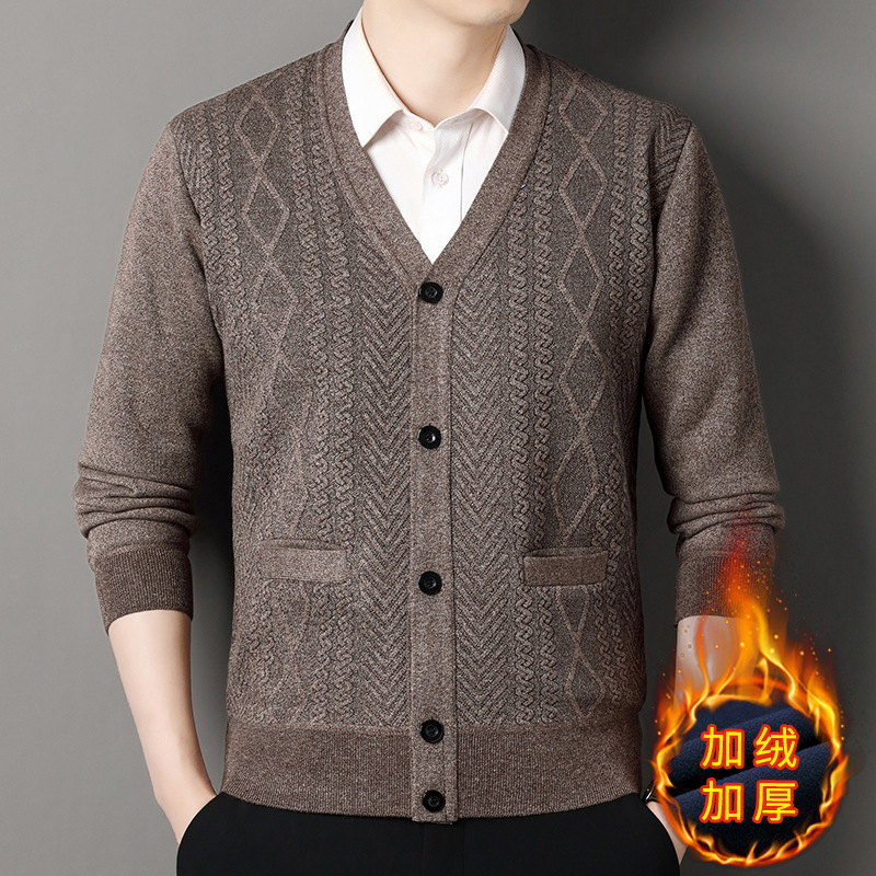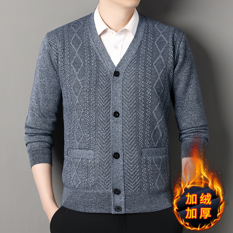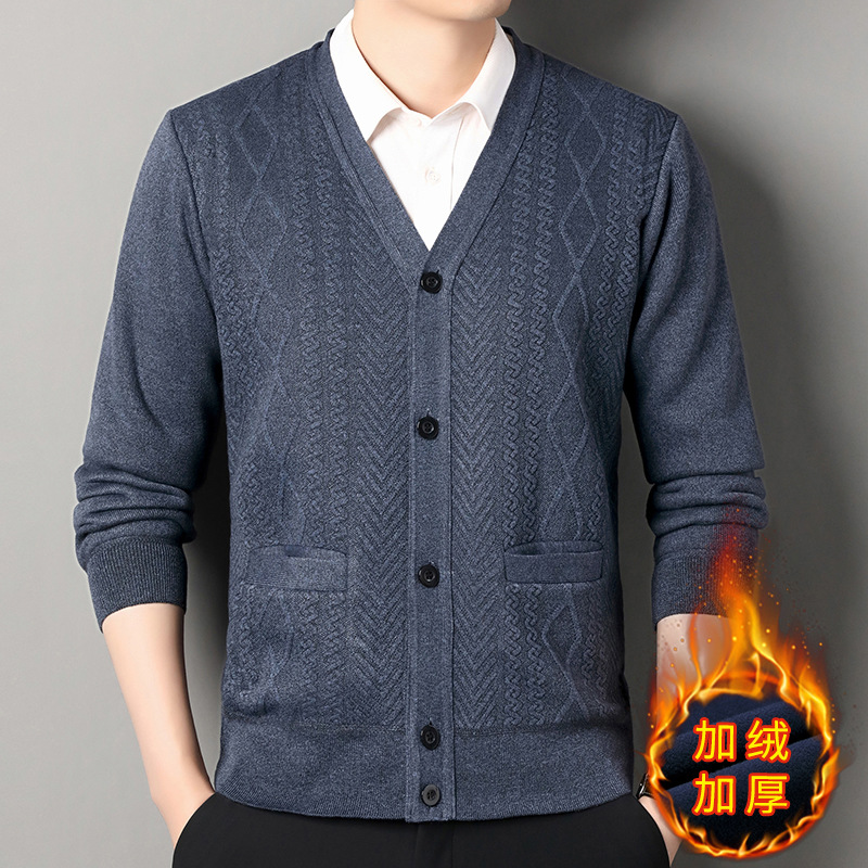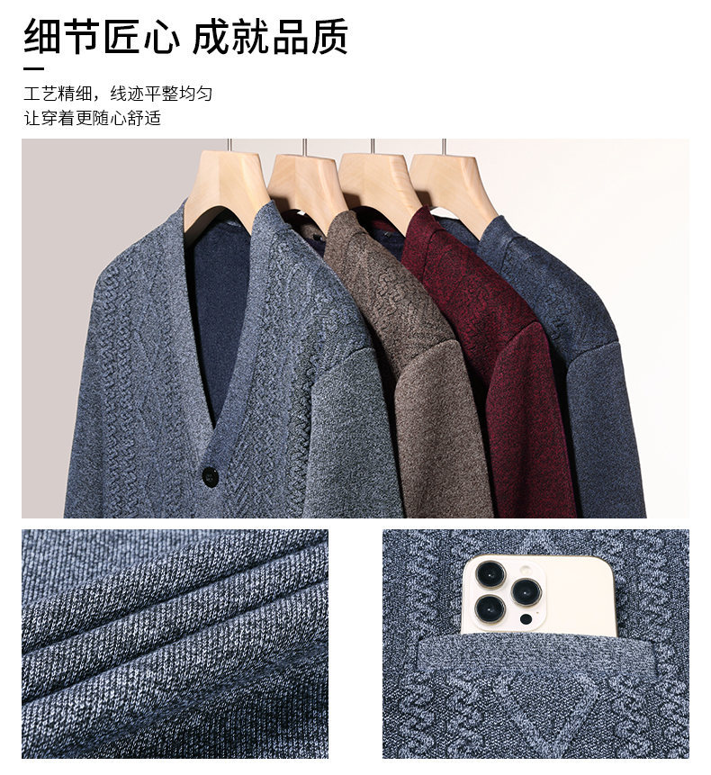가을 겨울 신상품 노인 남성용 캐주얼 브이넥 스웨터 니트 코트 다용도 플리스 재킷