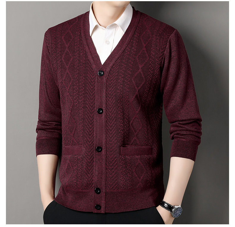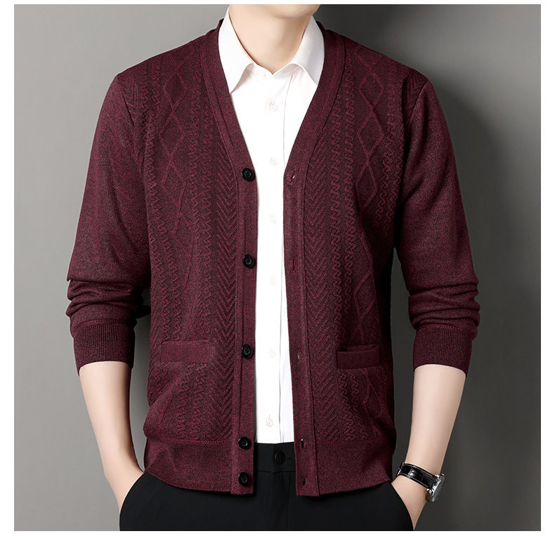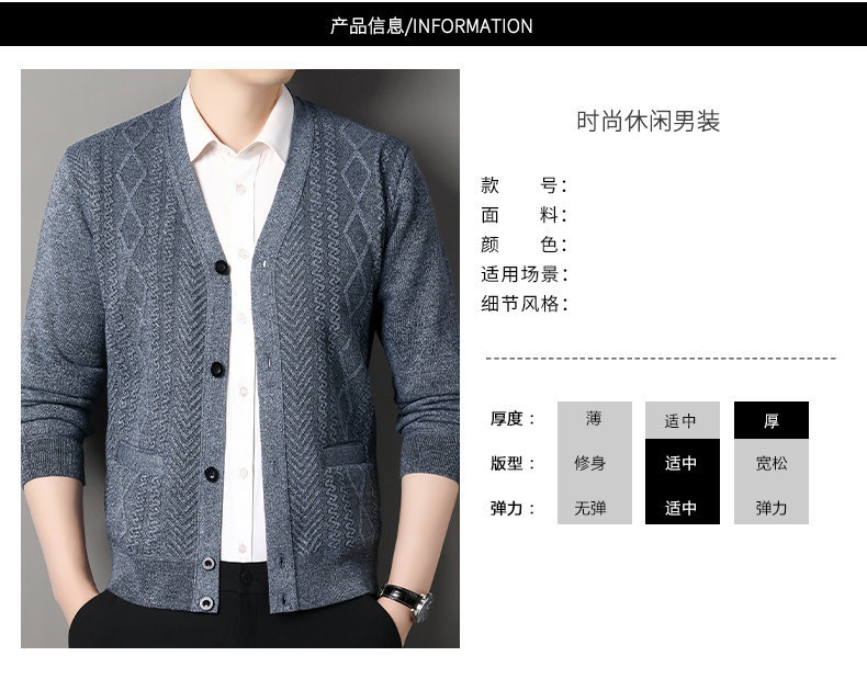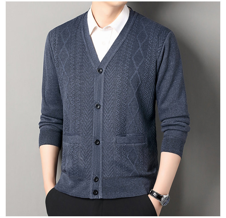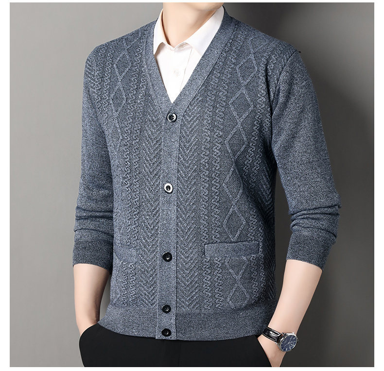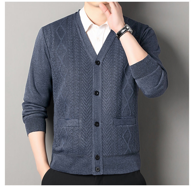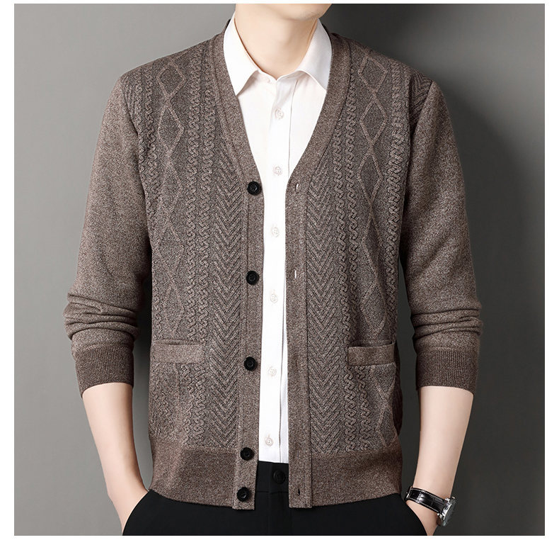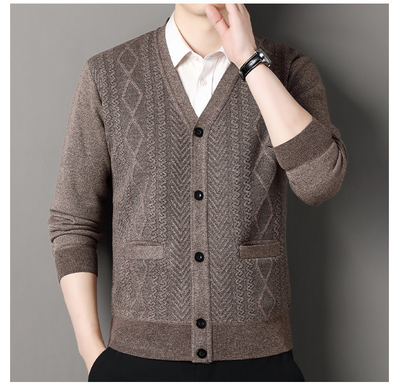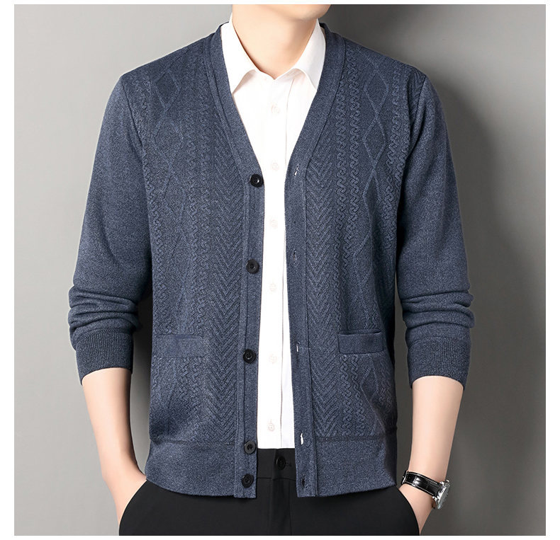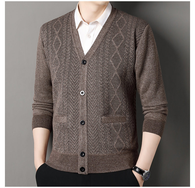 가을 겨울 신상품 노인 남성용 캐주얼 브이넥 스웨터 니트 코트 다용도 플리스 재킷