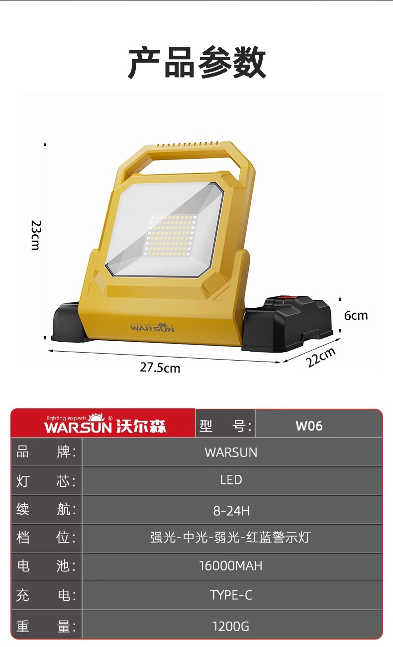 Wallson W06 야외 led 작업 빛 자석 자동 수리 수리 슈퍼 밝은 빛 수리 자동차 충전 작업 빛스토어 가기