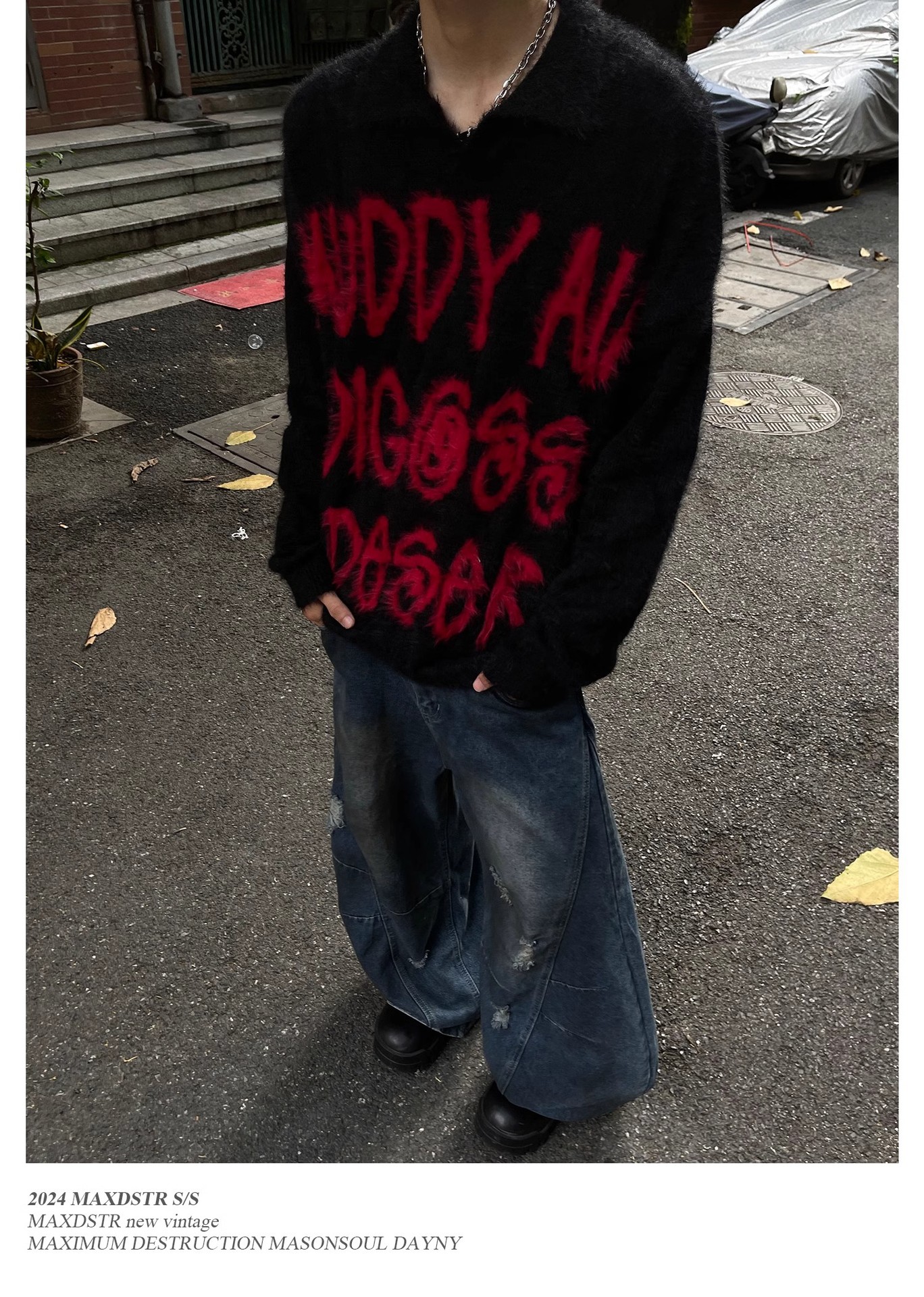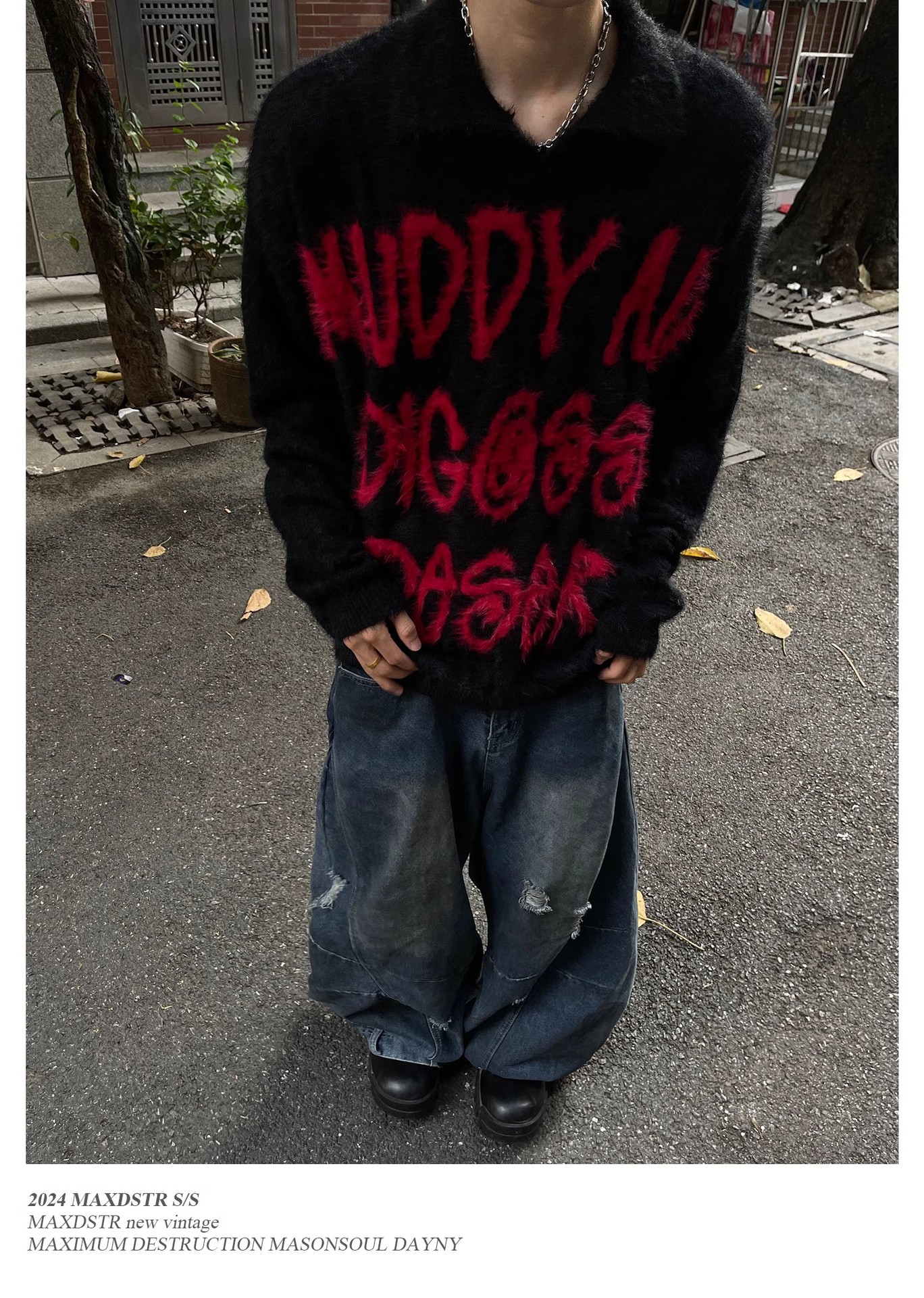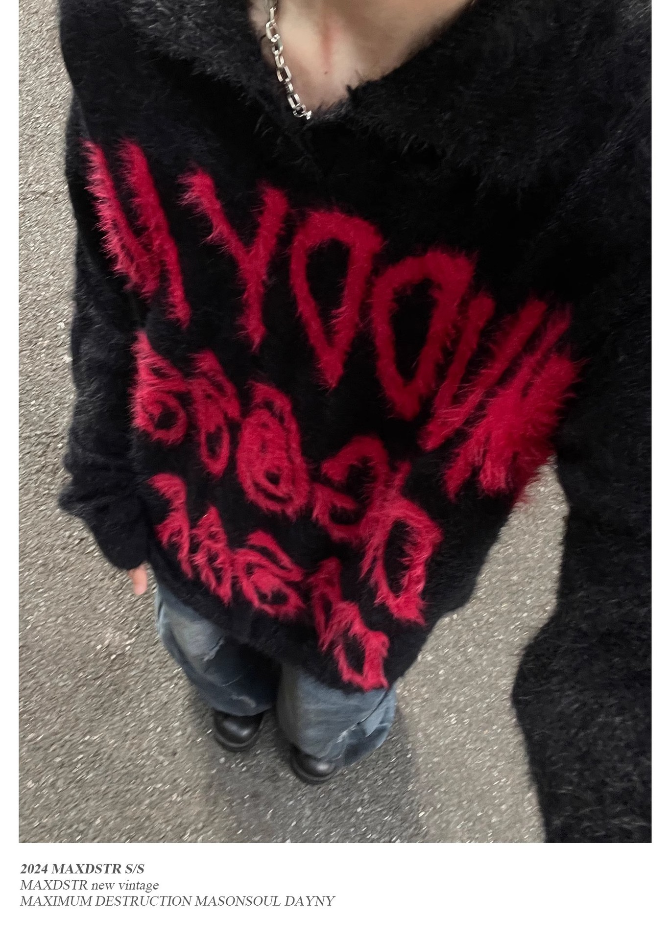 아메리칸 스타일 레트로 콘트라스트 컬러 레터 스웨터 남자 봄과 가을 새로운 힙합 캐주얼 루즈 패션 브랜드 올매치 커플스토어 가기