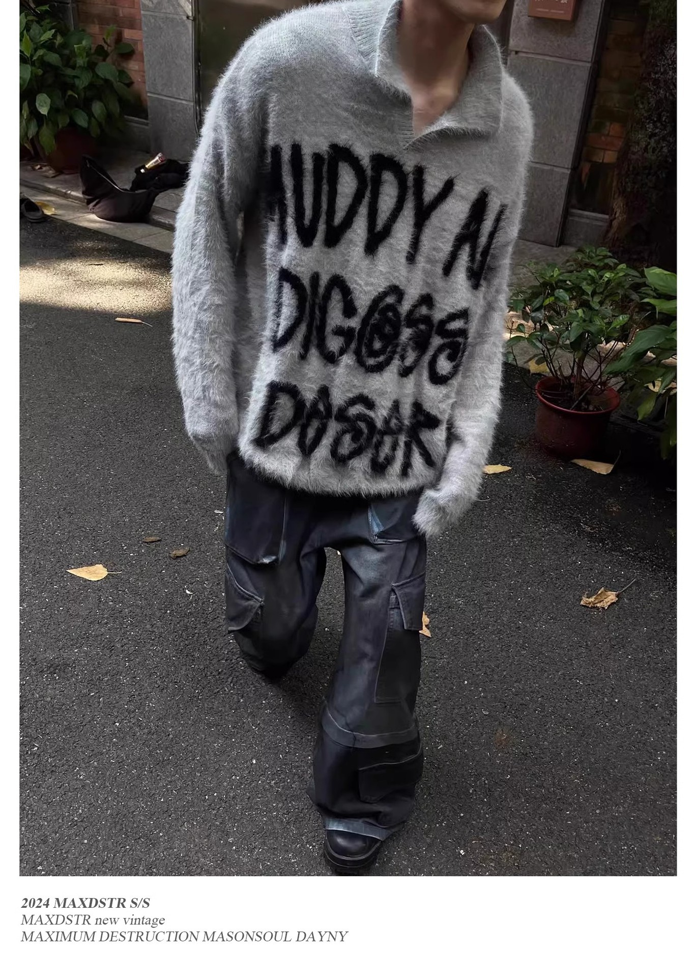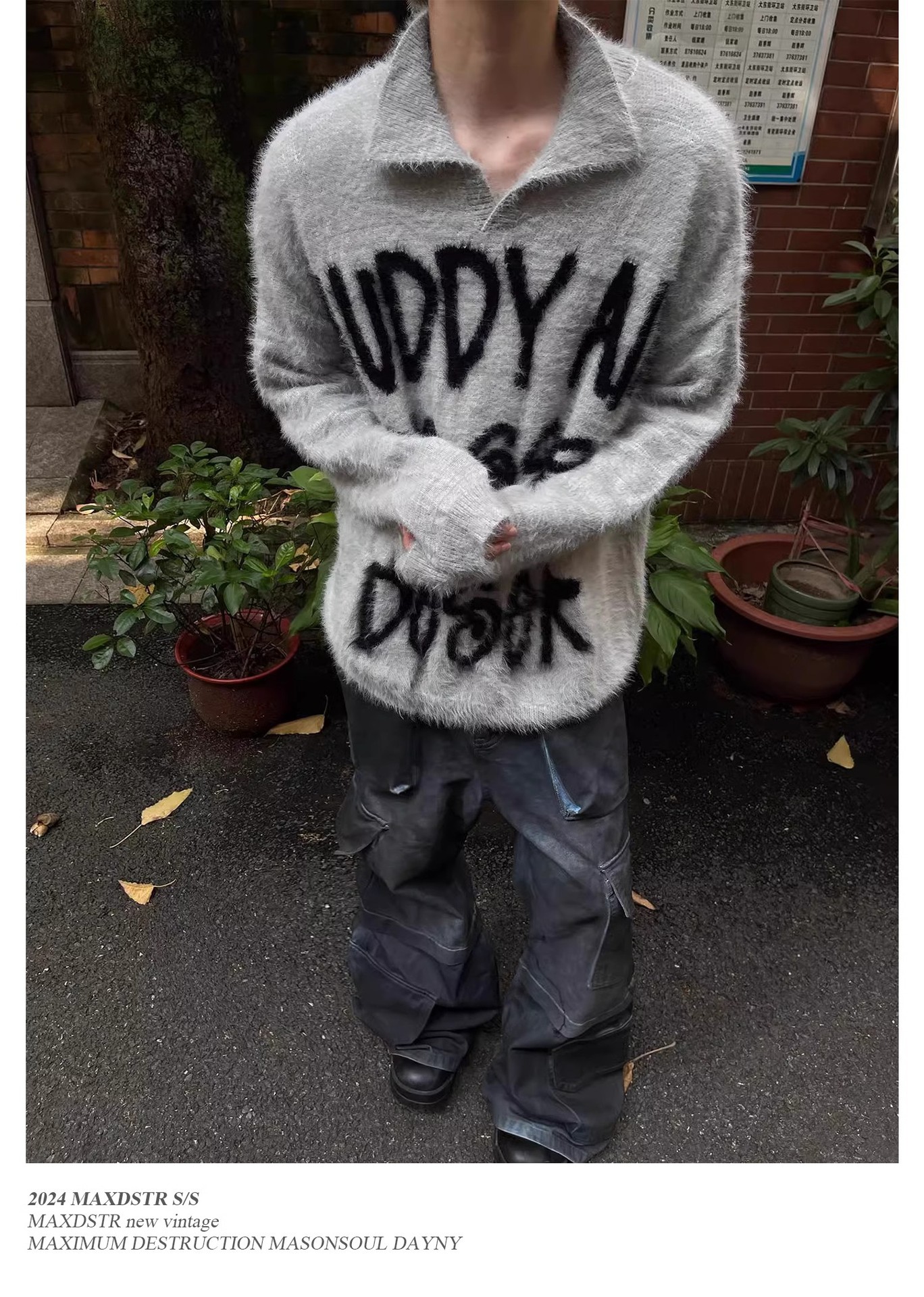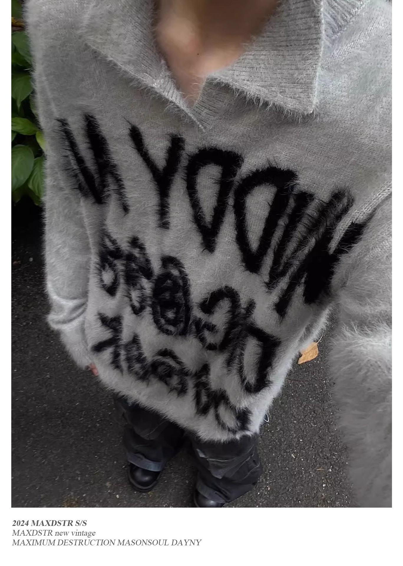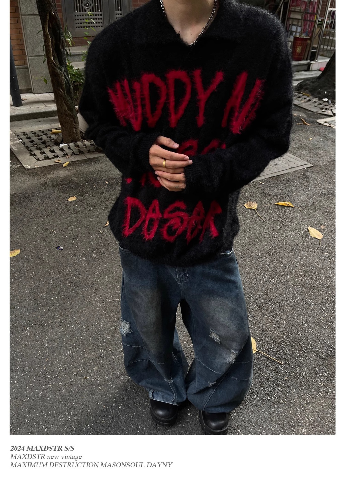 아메리칸 스타일 레트로 콘트라스트 컬러 레터 스웨터 남자 봄과 가을 새로운 힙합 캐주얼 루즈 패션 브랜드 올매치 커플스토어 가기