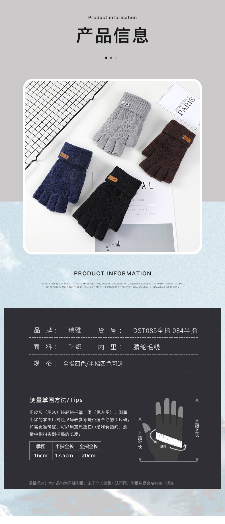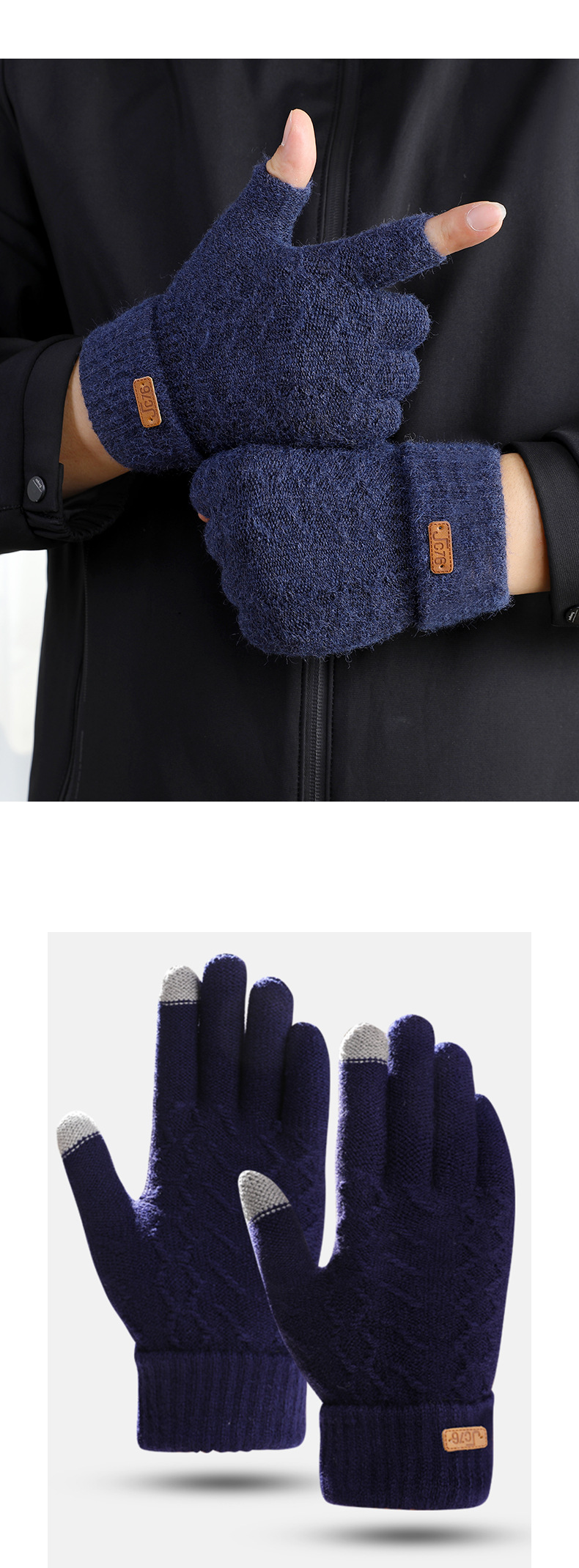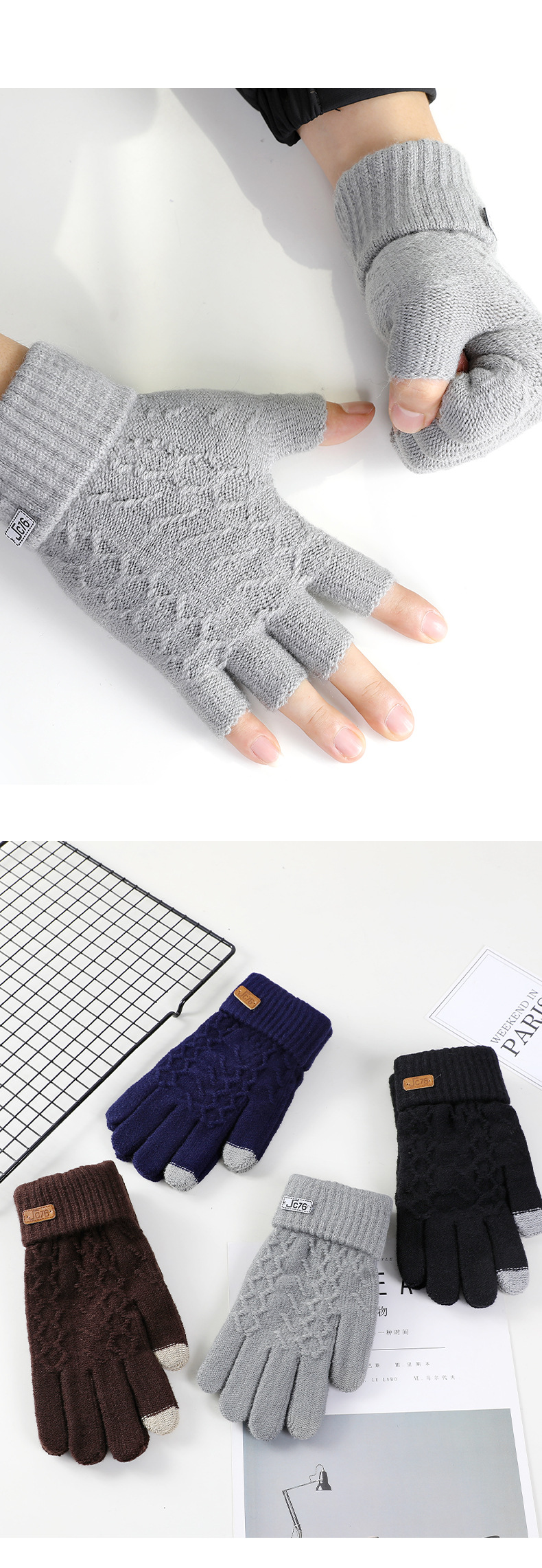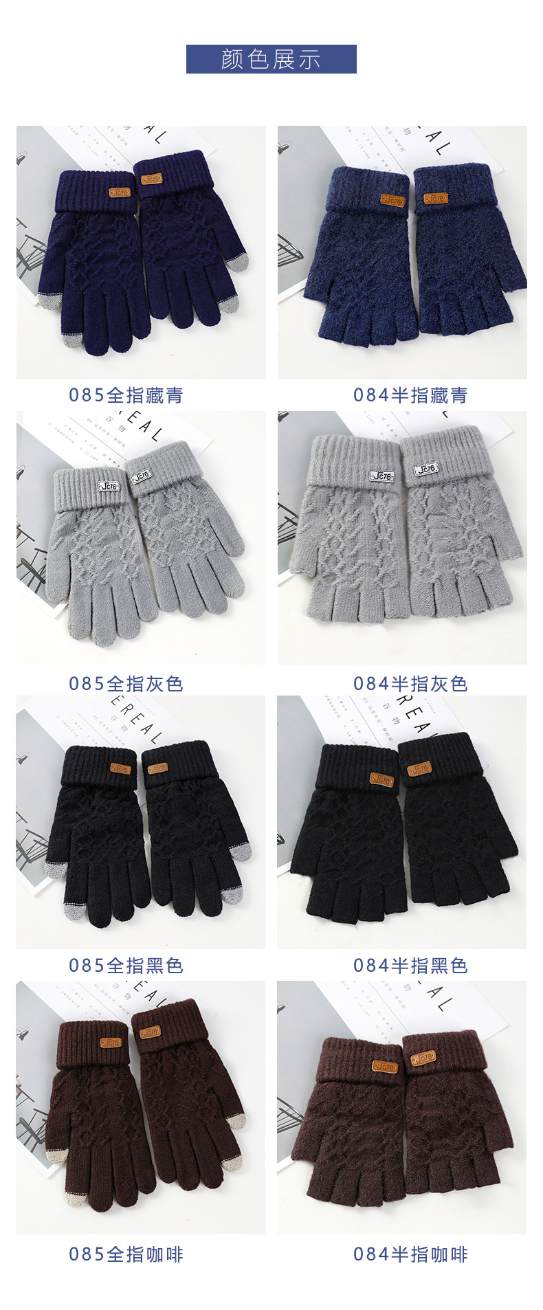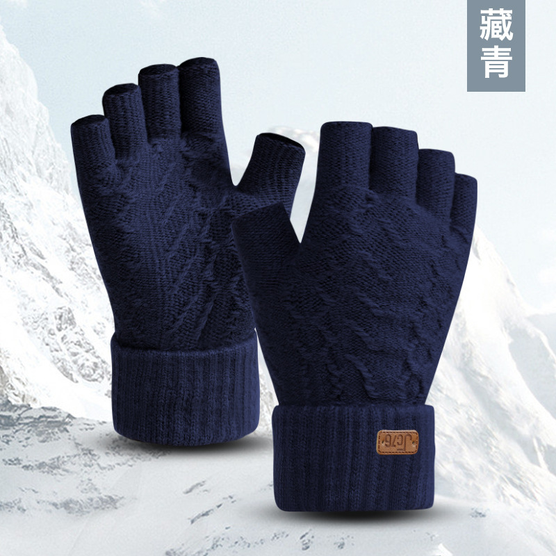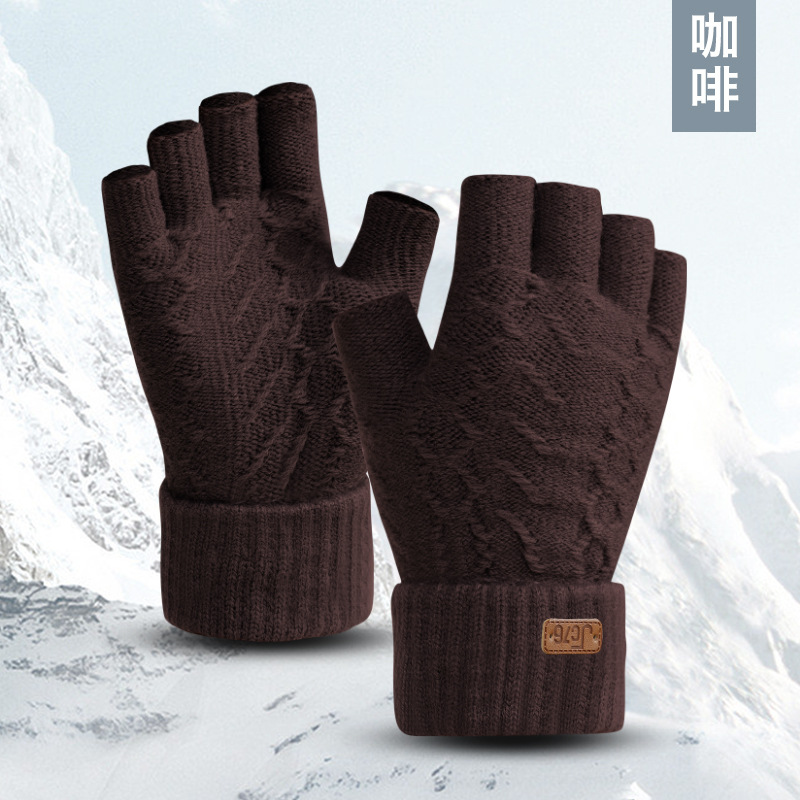 남성용 반손가락 장갑 겨울 신상 두꺼운 보온 니트 모직 운전 및 자전거용 방한 글쓰기용 손가락 노출 장갑 YA