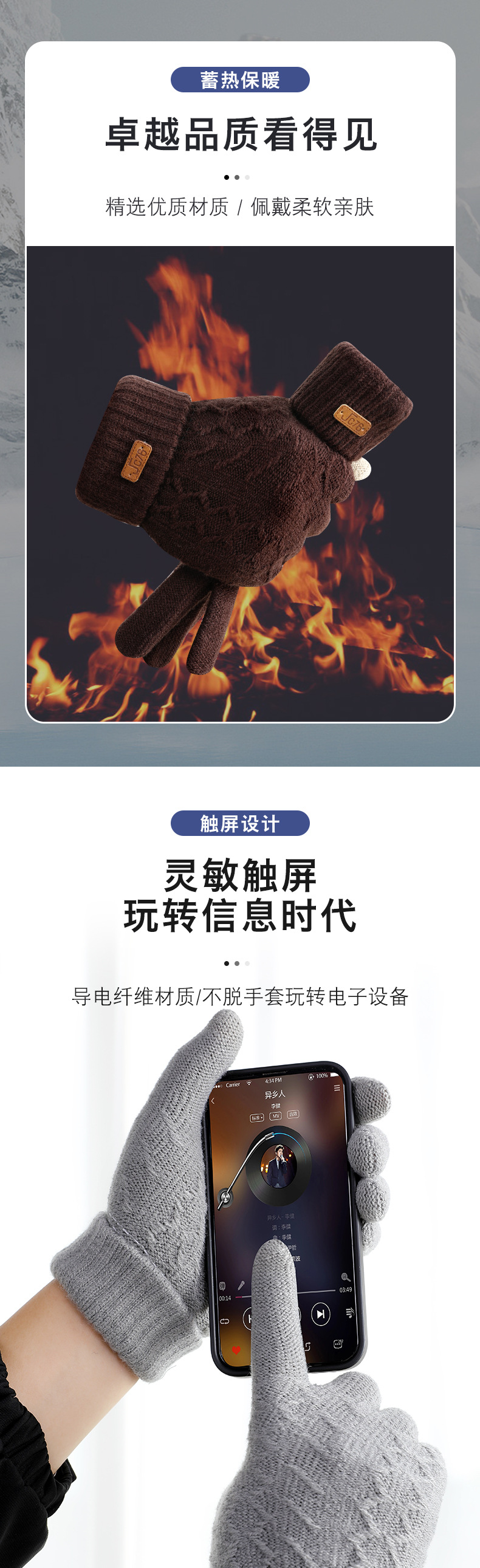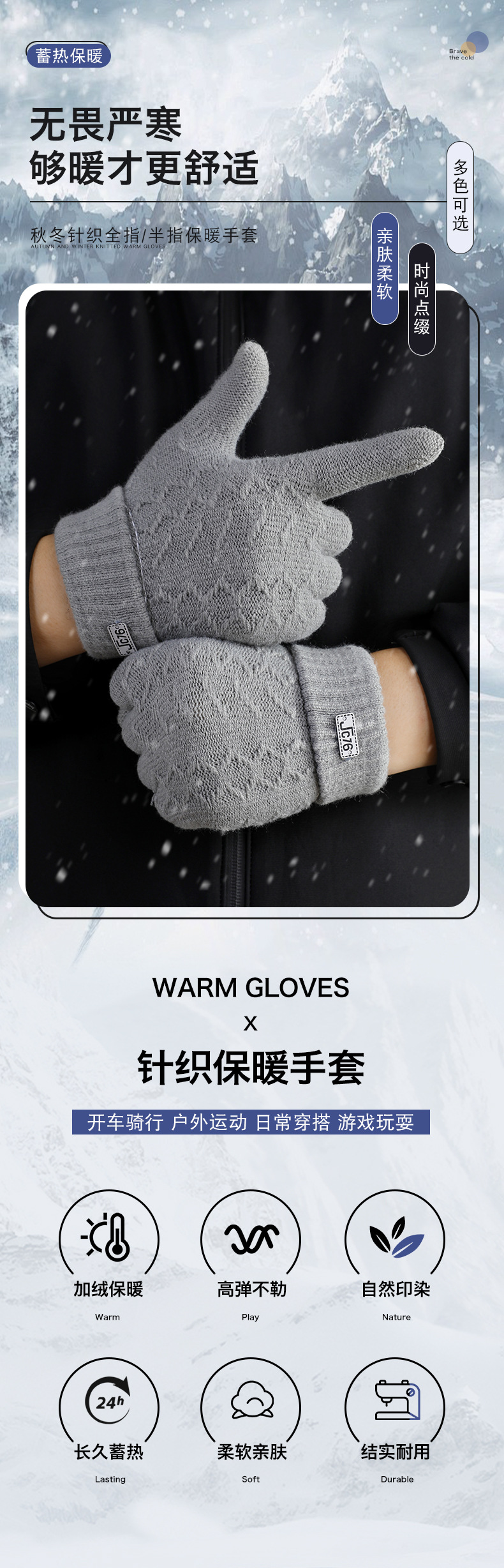남성용 반손가락 장갑 겨울 신상 두꺼운 보온 니트 모직 운전 및 자전거용 방한 글쓰기용 손가락 노출 장갑 YA스토어 가기