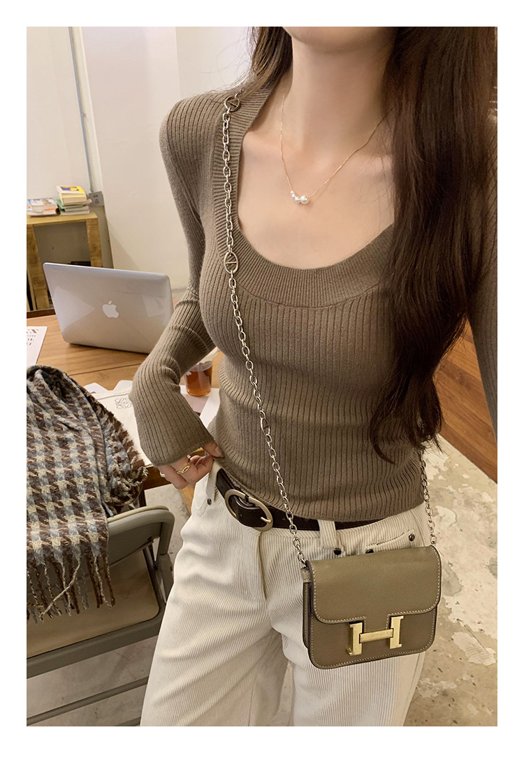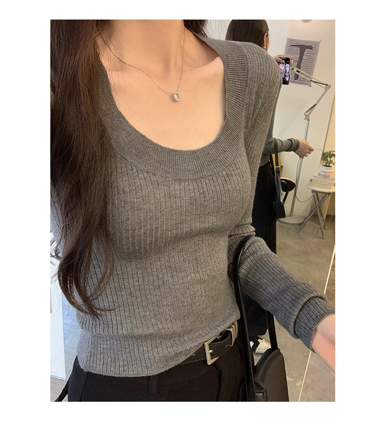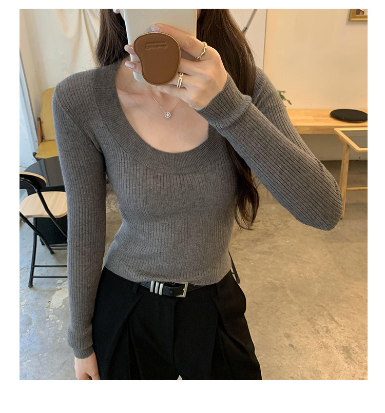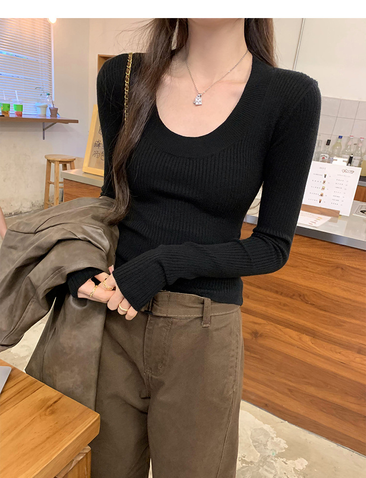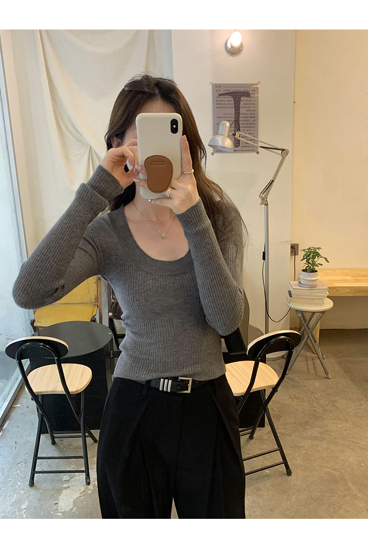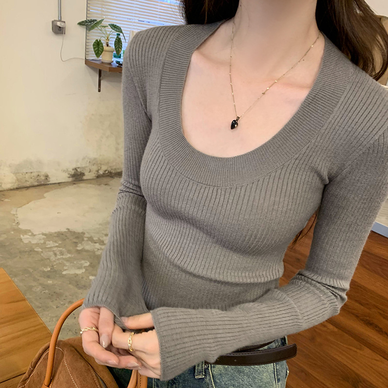 리얼 샷 젠틀 한국식 U-넥 니트 베이스 셔츠 여자 가을과 겨울 새로운 하이 엔드 슬림 핏 이너 쇼트 탑