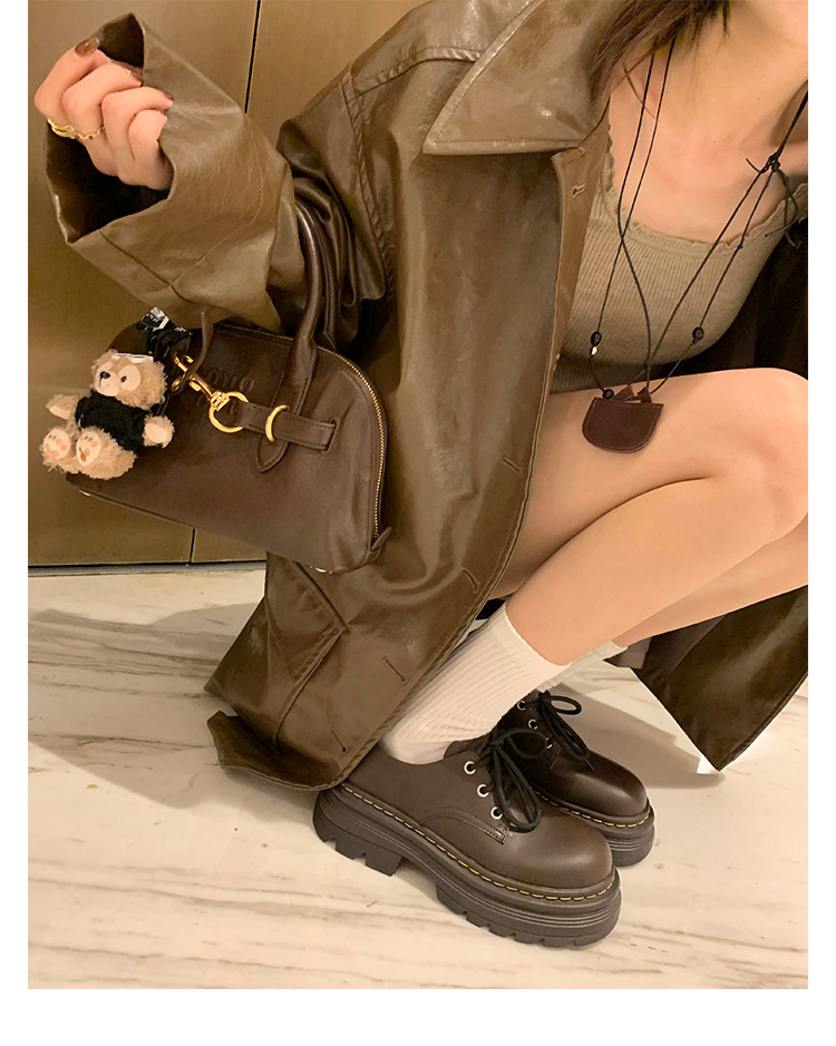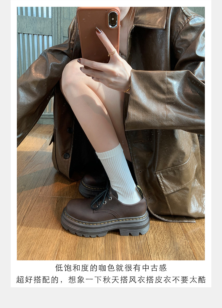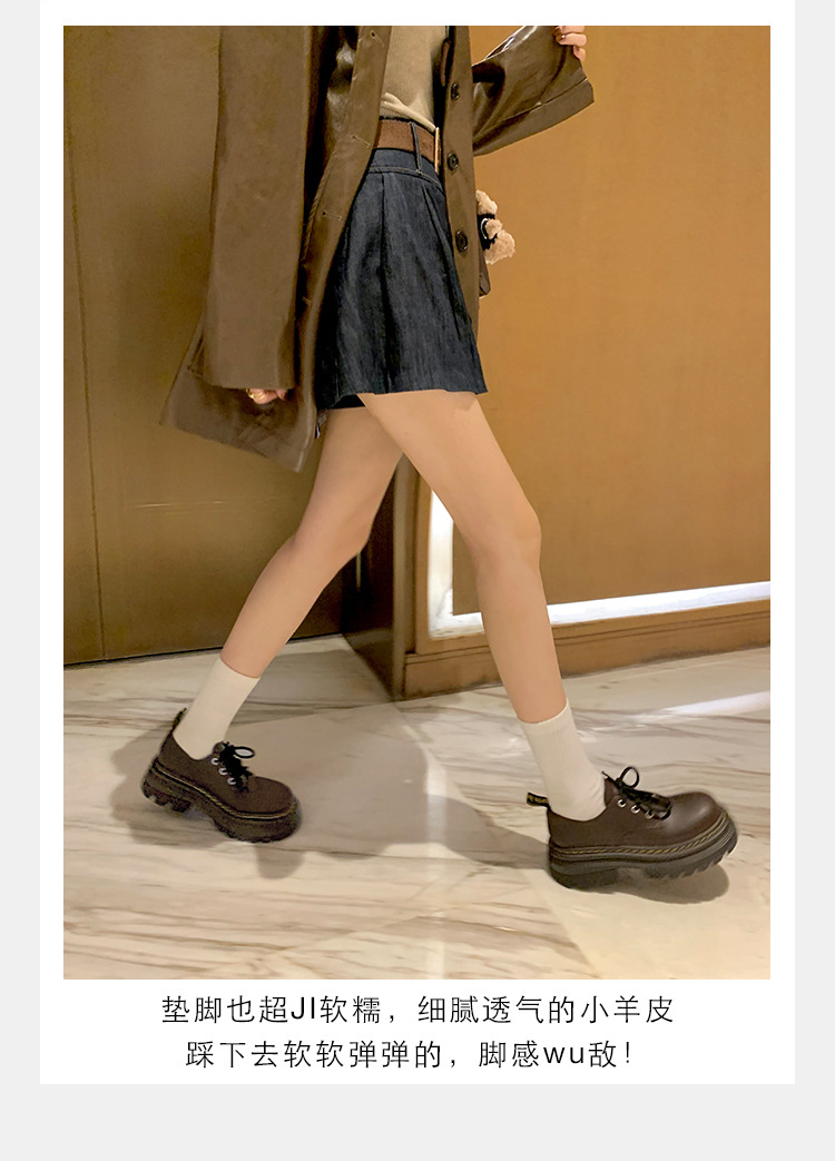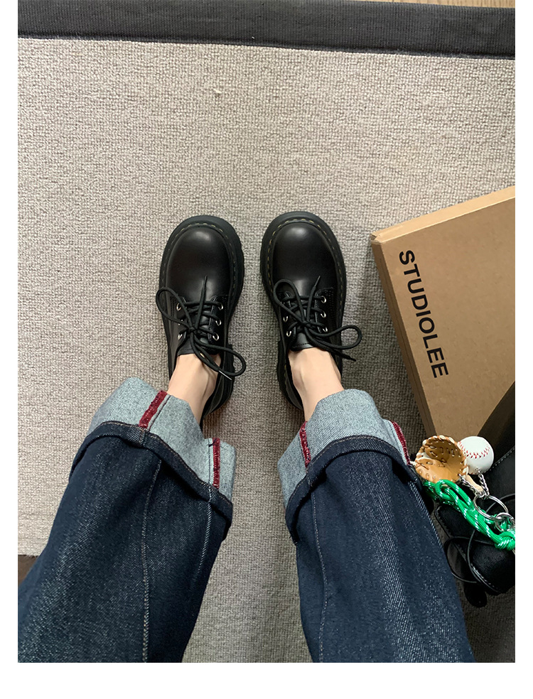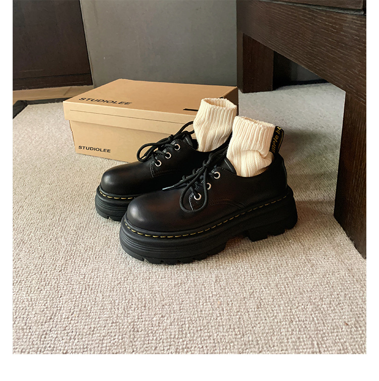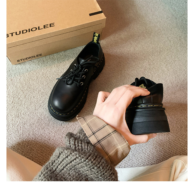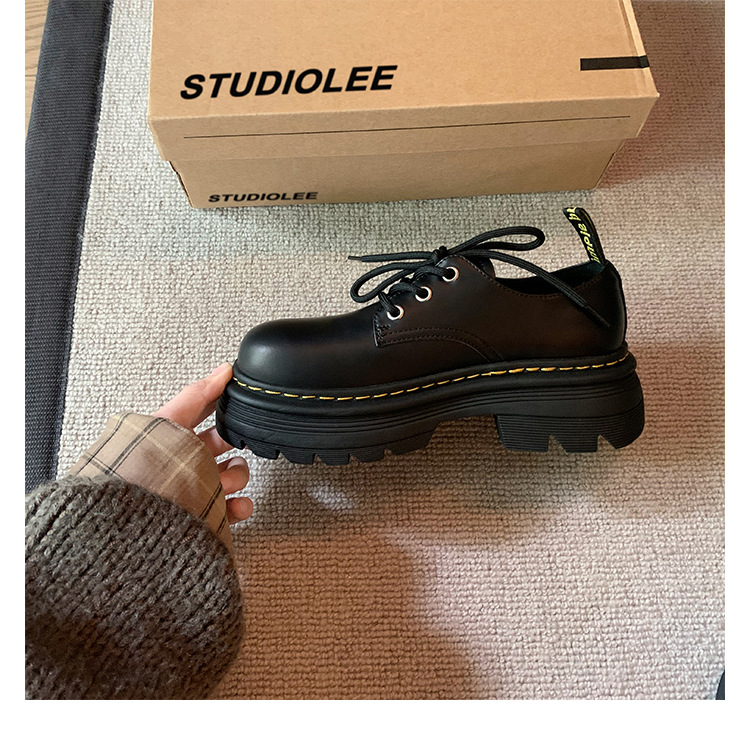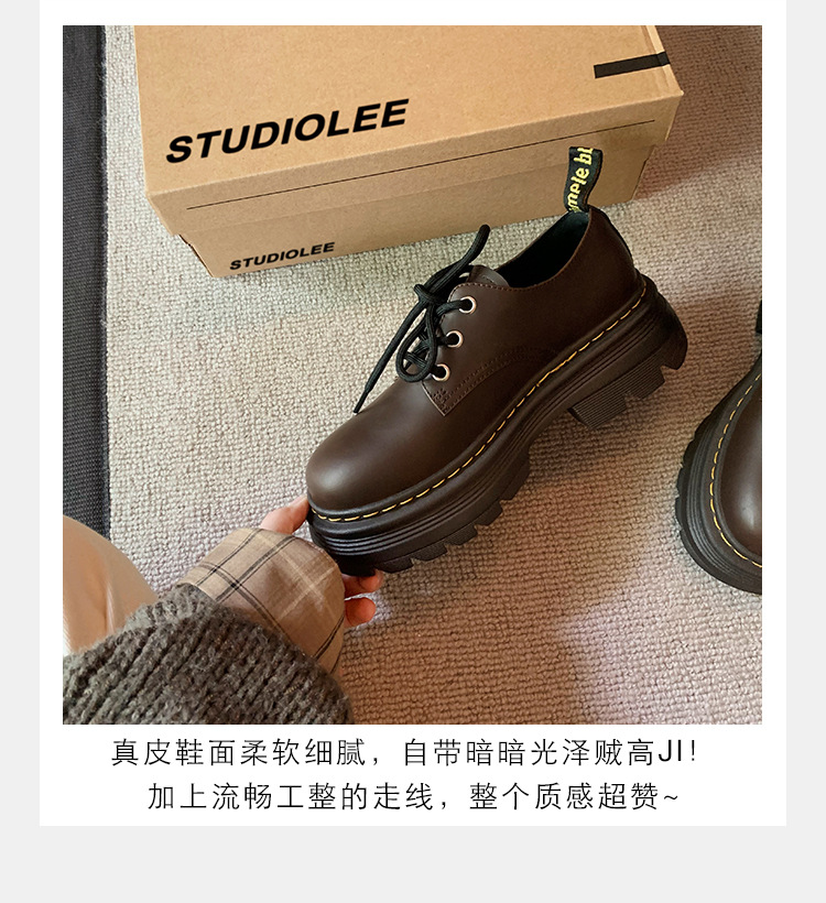 포도 엄마 studiolee 영국 스타일 레이스 업 힐 두꺼운 힐 플랫폼 더비 신발 라운드 발가락 작은 가죽 신발 여성의 가을