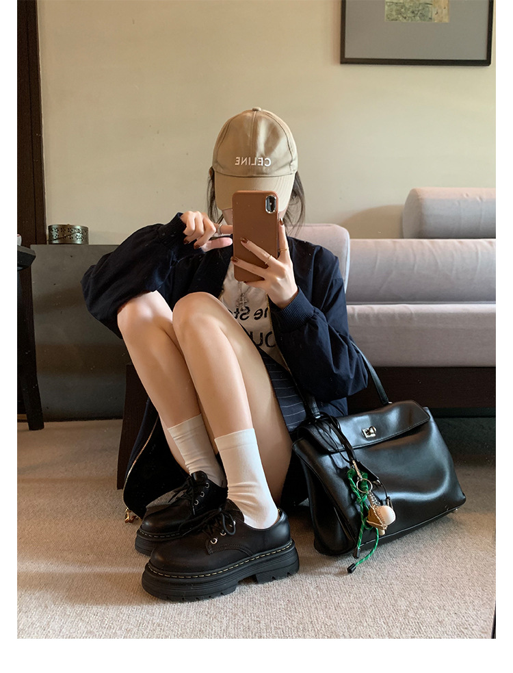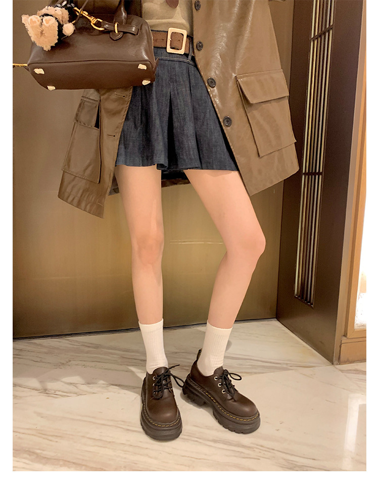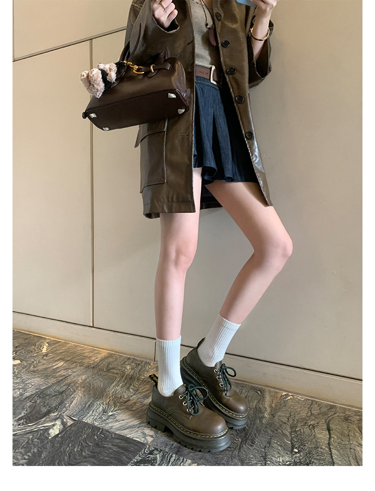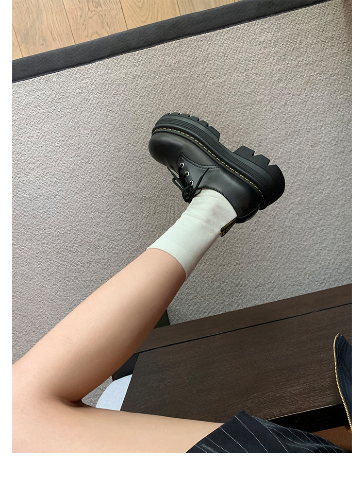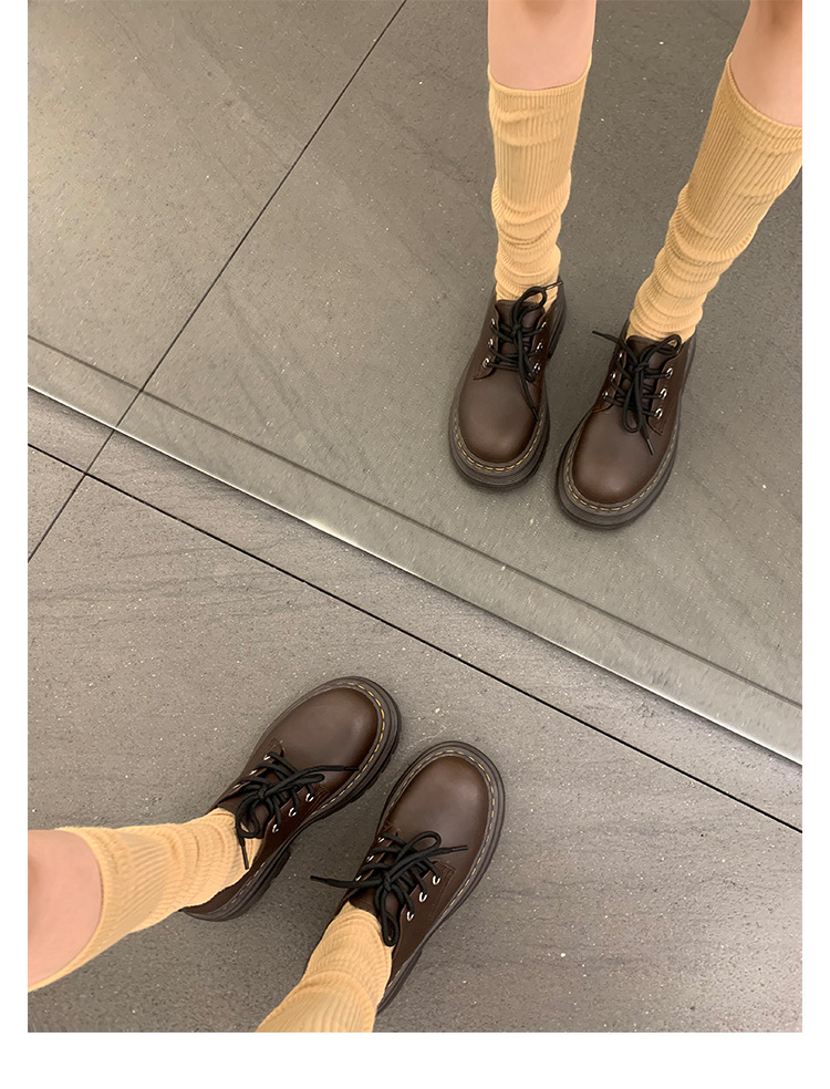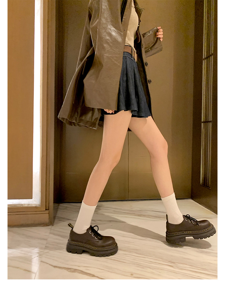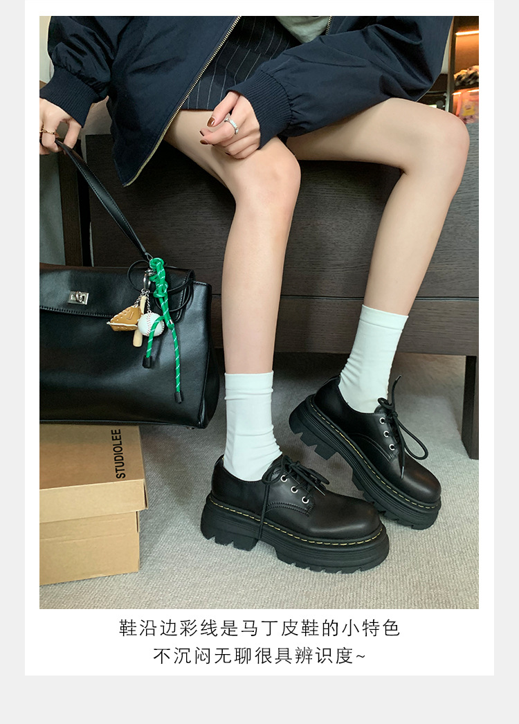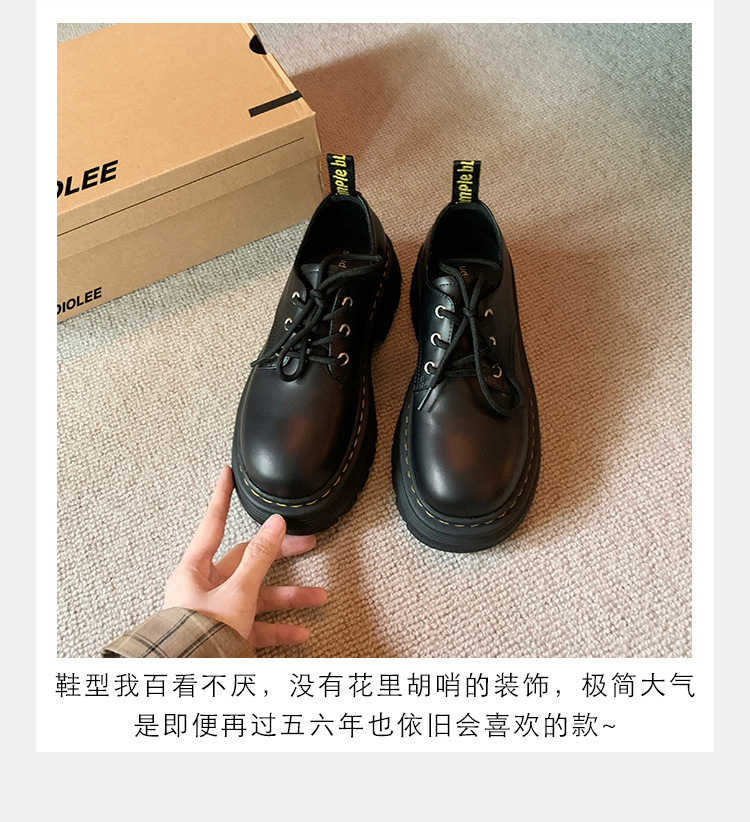 포도 엄마 studiolee 영국 스타일 레이스 업 힐 두꺼운 힐 플랫폼 더비 신발 라운드 발가락 작은 가죽 신발 여성의 가을