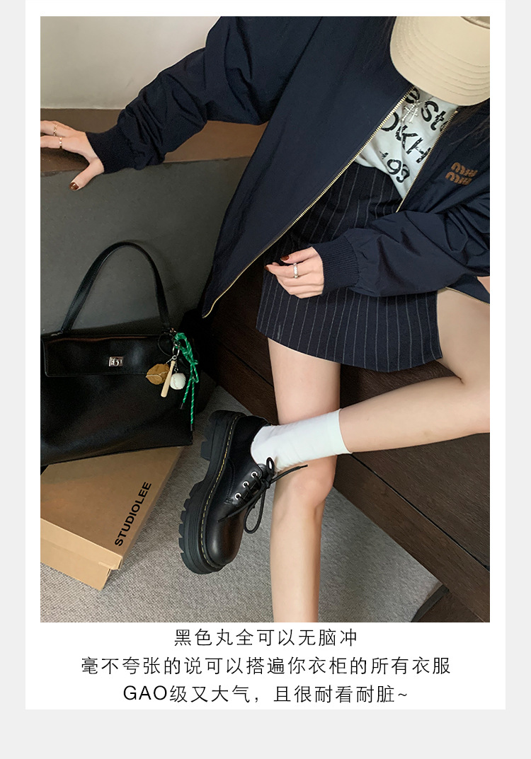포도 엄마 studiolee 영국 스타일 레이스 업 힐 두꺼운 힐 플랫폼 더비 신발 라운드 발가락 작은 가죽 신발 여성의 가을스토어 가기