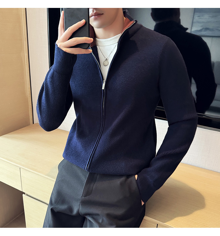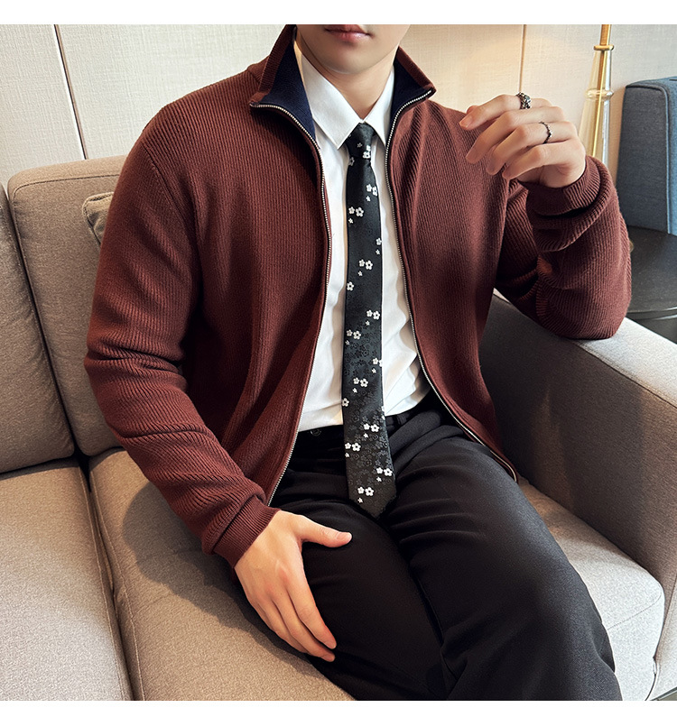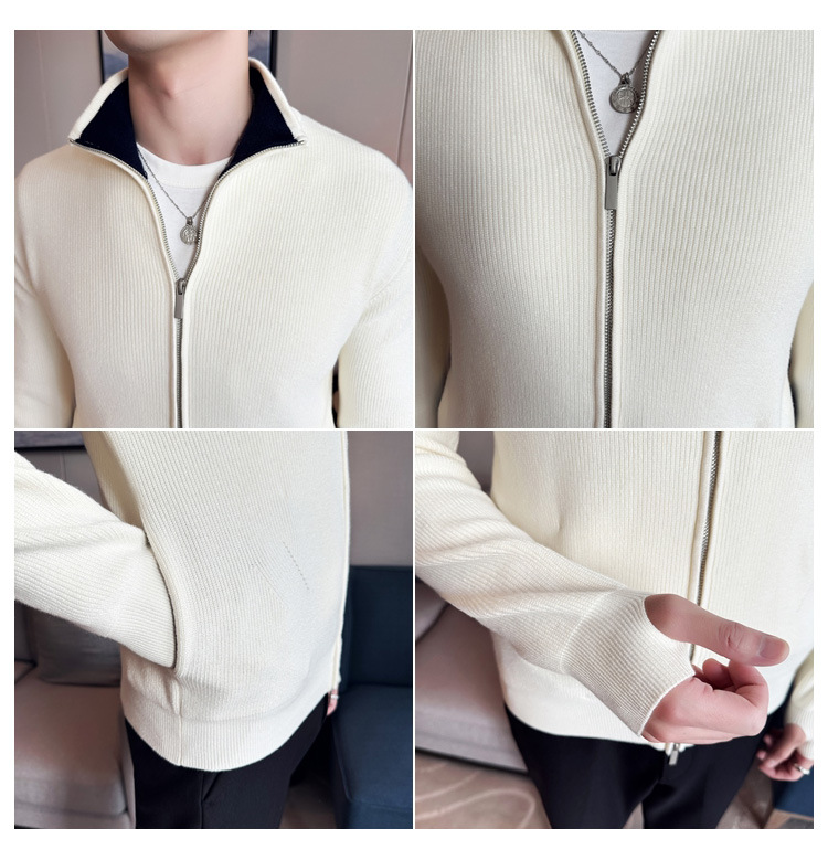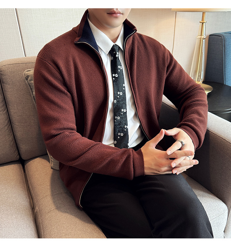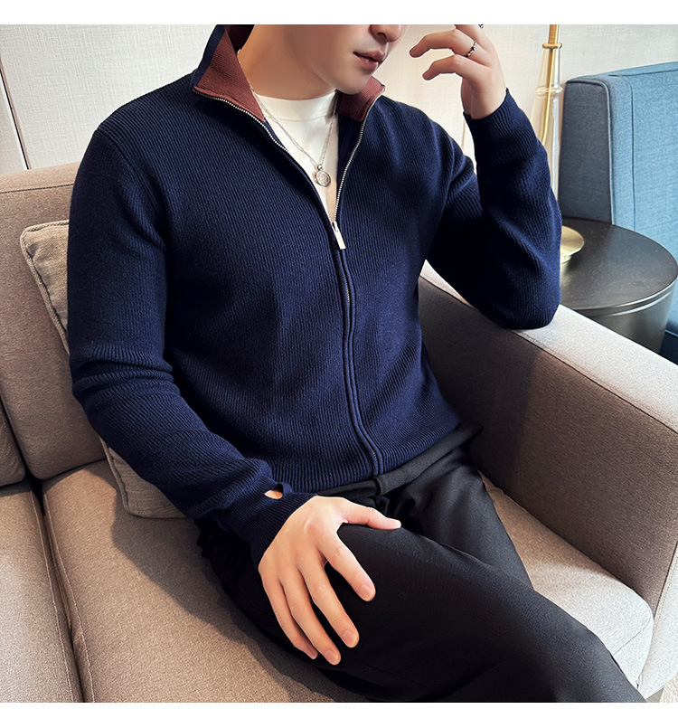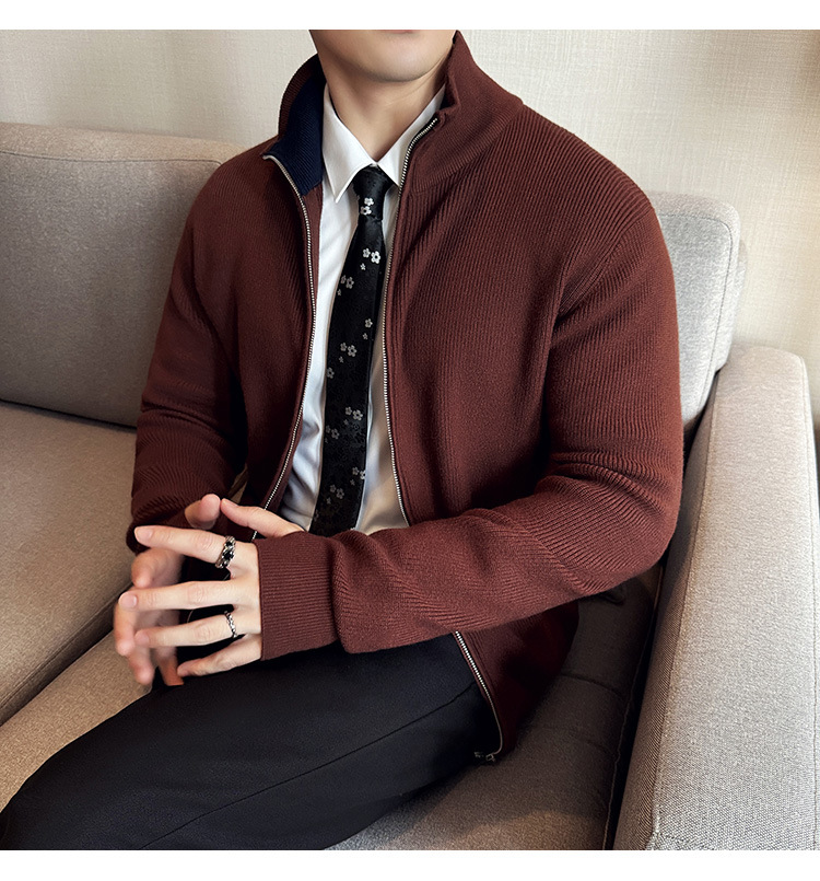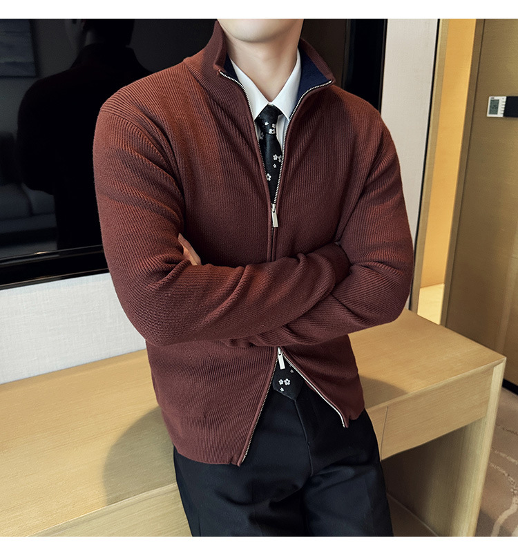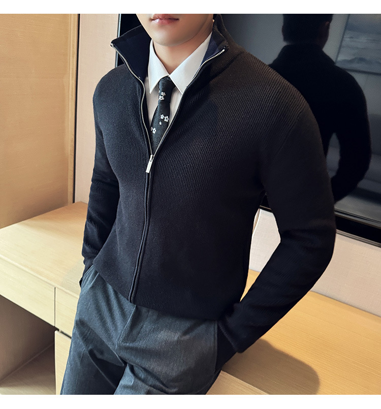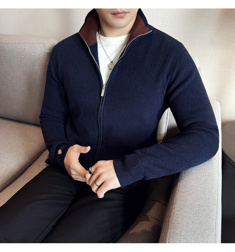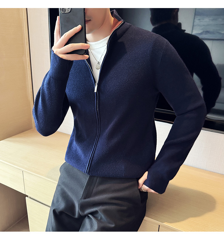 2024 년 새로운 가을과 겨울 두꺼운 남성 스웨터 카디건 지퍼 스탠드 칼라 외부 스웨터 대외 무역 도매 남성 코트스토어 가기