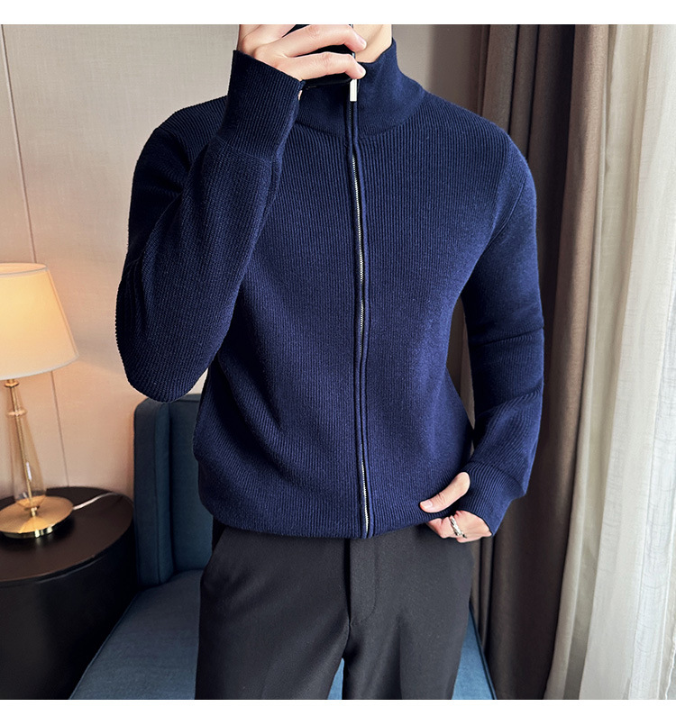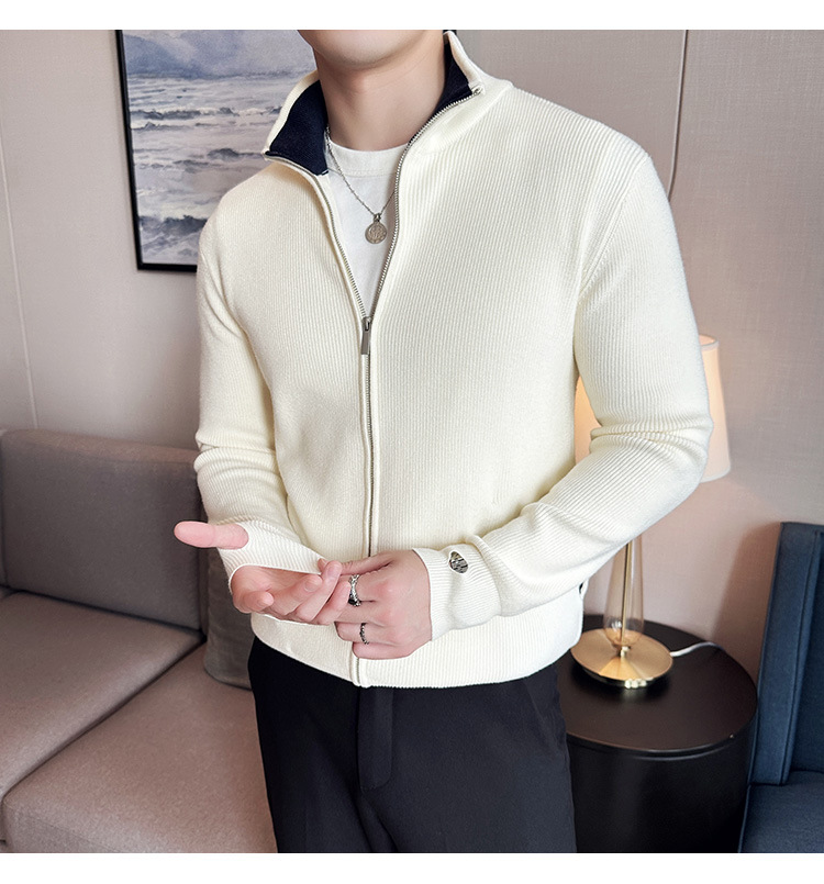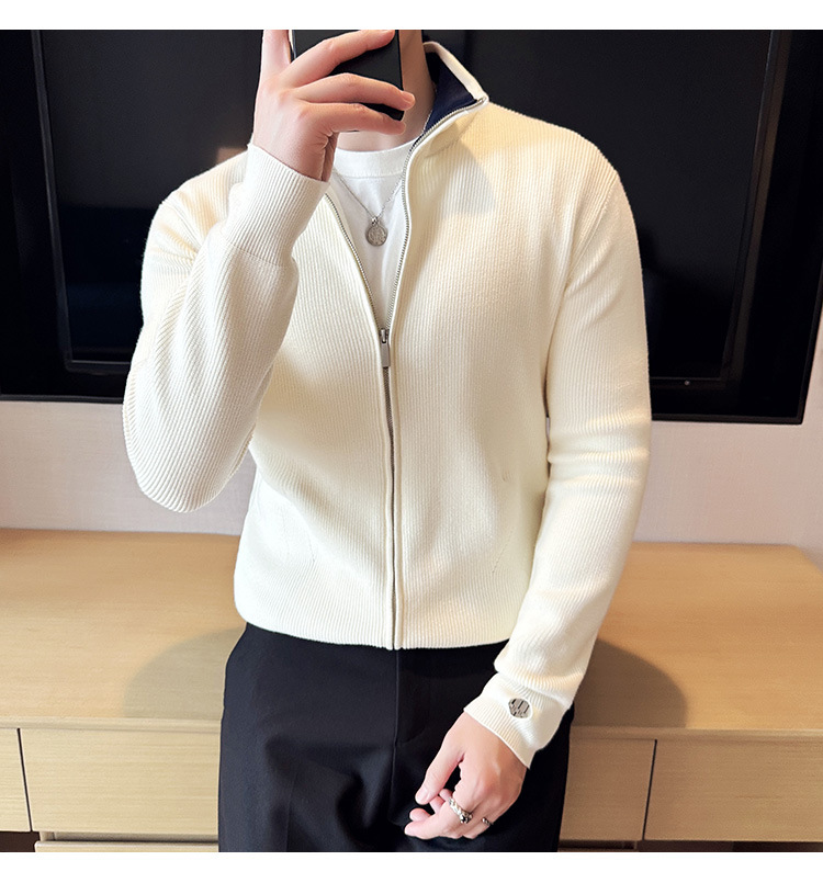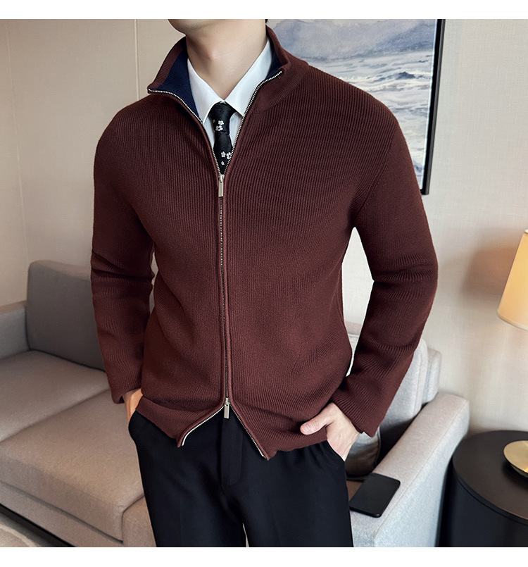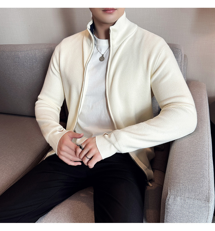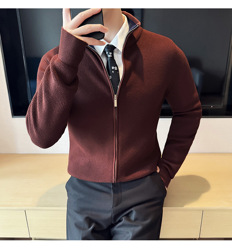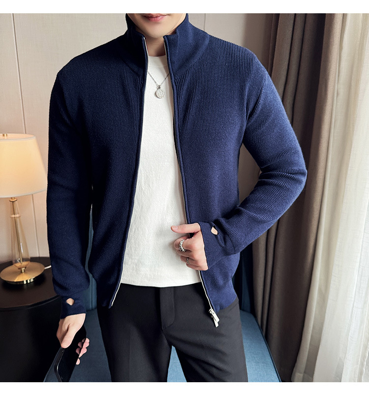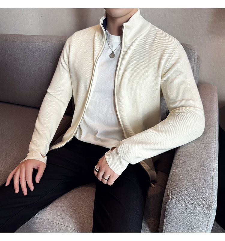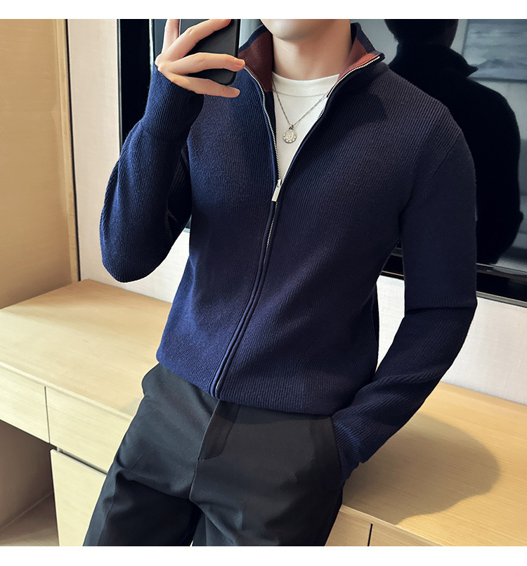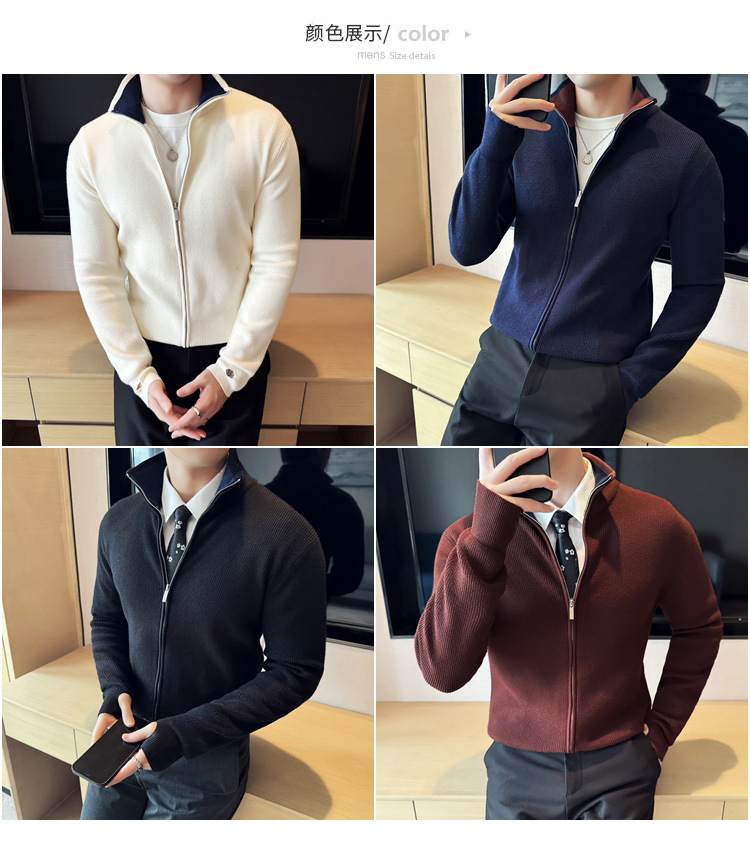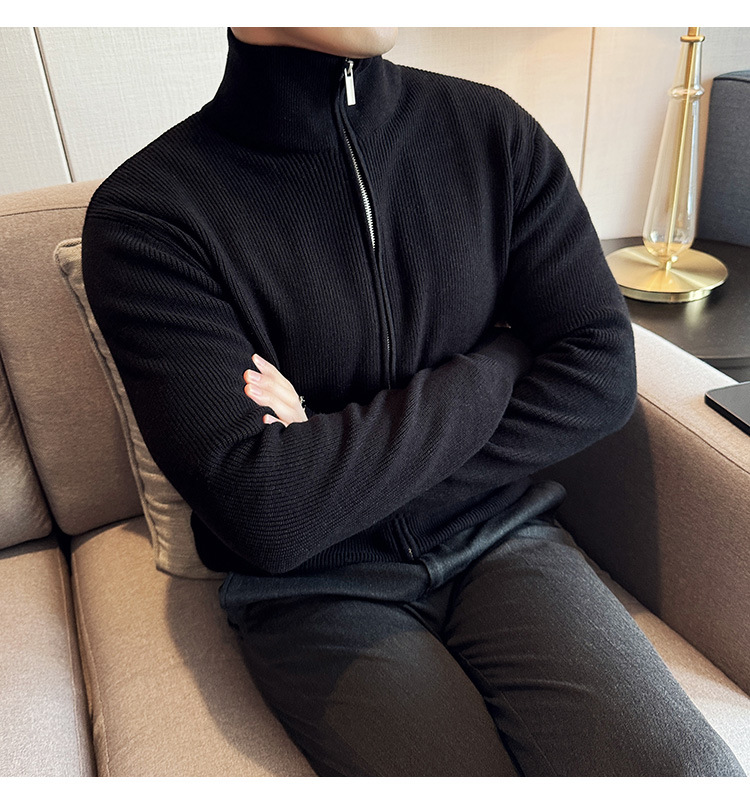 2024 년 새로운 가을과 겨울 두꺼운 남성 스웨터 카디건 지퍼 스탠드 칼라 외부 스웨터 대외 무역 도매 남성 코트스토어 가기