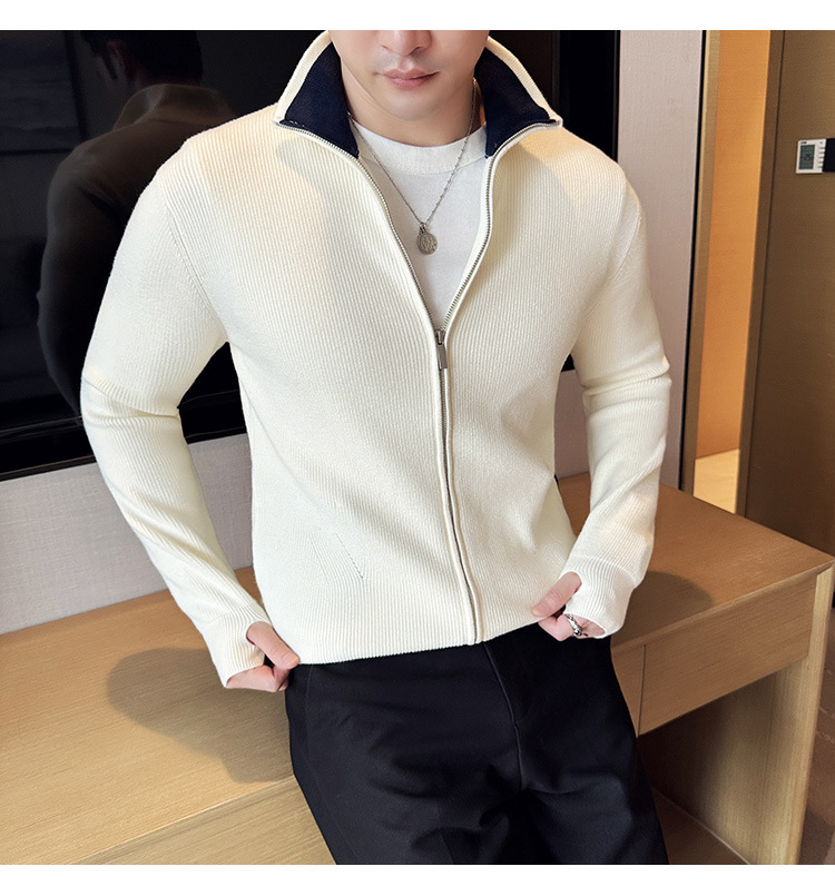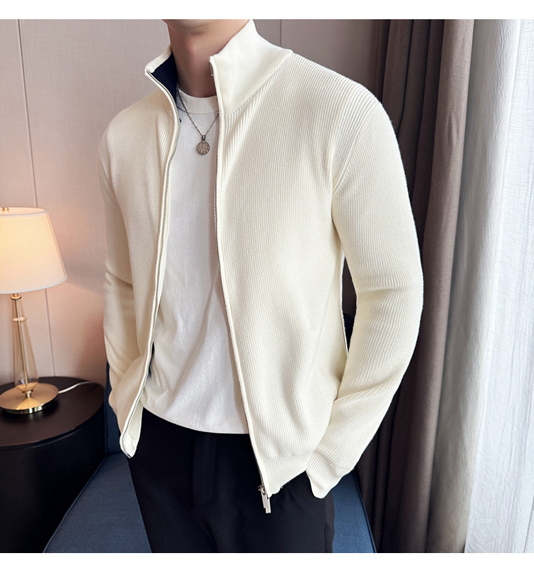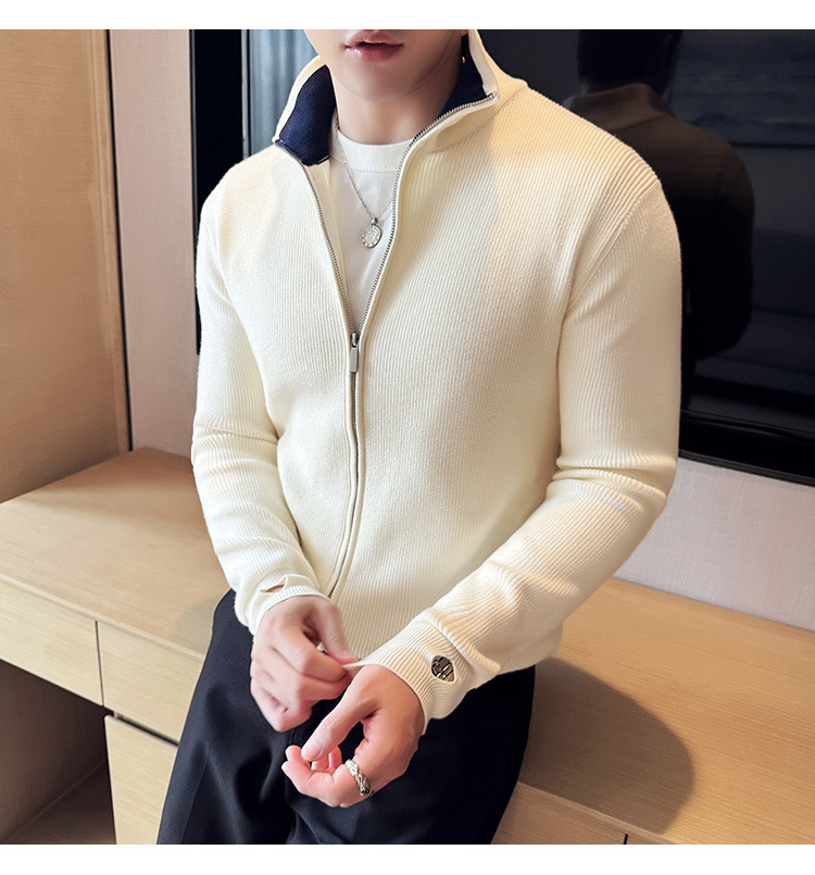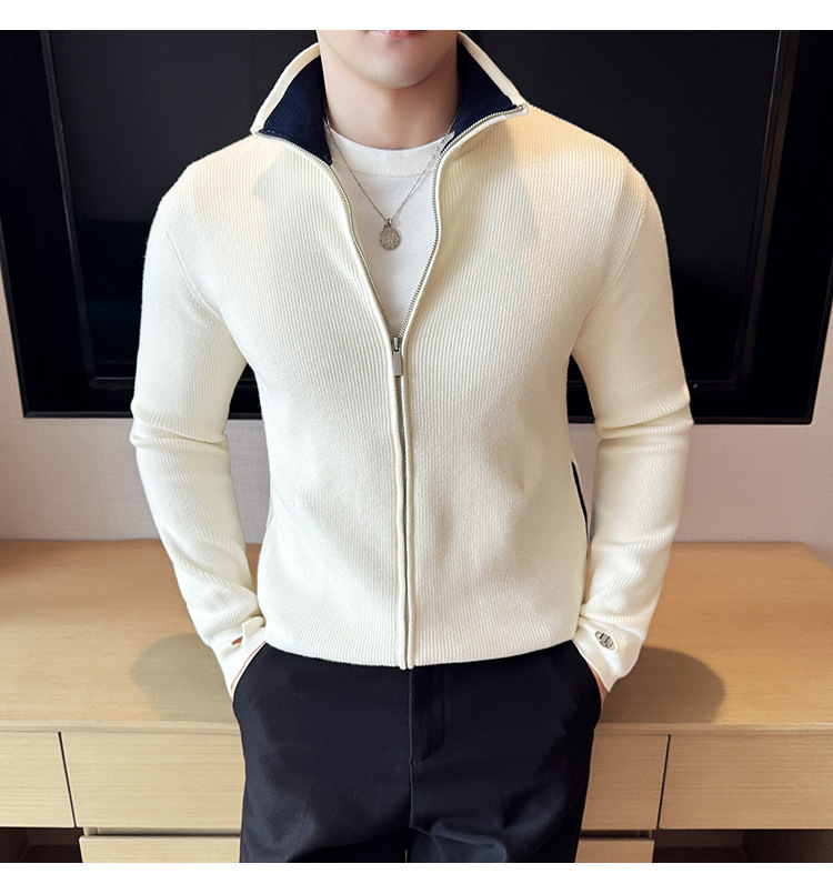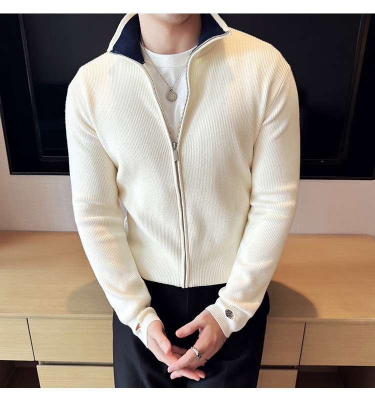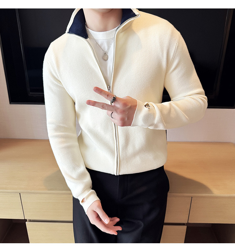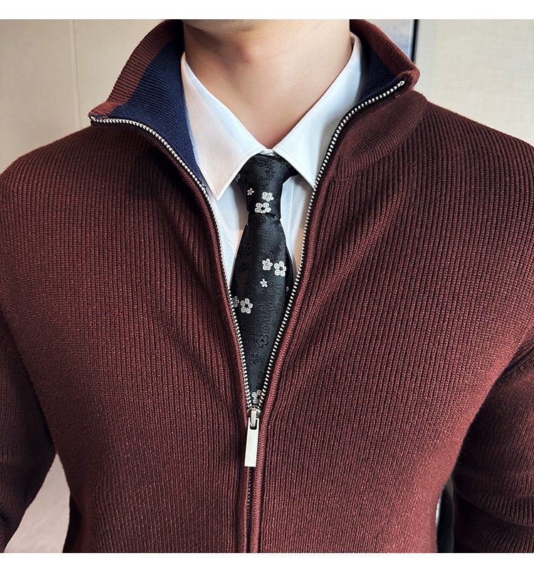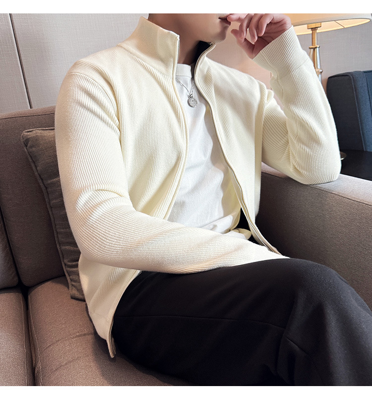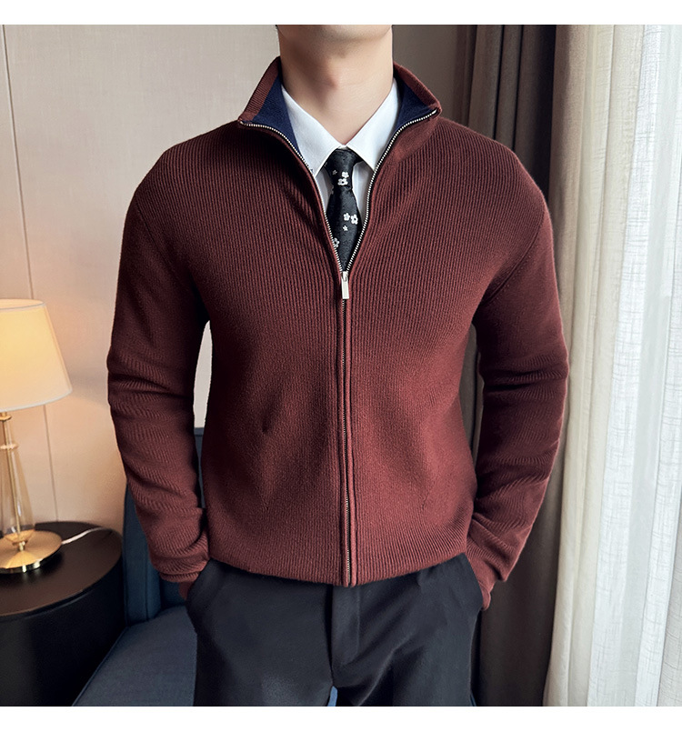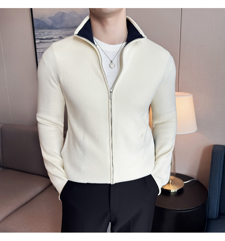 2024 년 새로운 가을과 겨울 두꺼운 남성 스웨터 카디건 지퍼 스탠드 칼라 외부 스웨터 대외 무역 도매 남성 코트스토어 가기