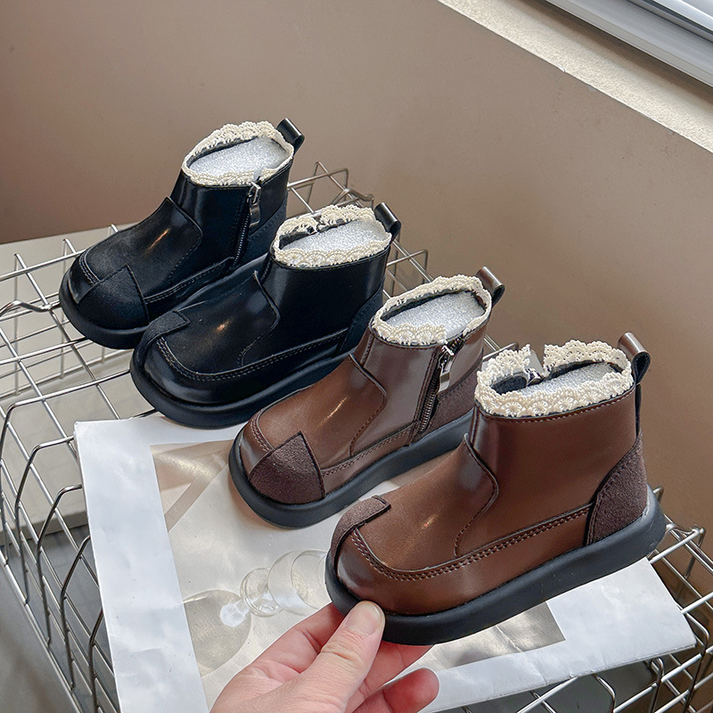 영국 스타일 어린이 마틴 부츠 2024 가을과 겨울 새로운 소녀 짧은 부츠 작은 가죽 신발 공주 담배 부츠 아기 신발스토어 가기