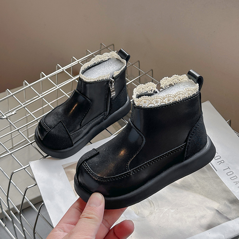영국 스타일 어린이 마틴 부츠 2024 가을과 겨울 새로운 소녀 짧은 부츠 작은 가죽 신발 공주 담배 부츠 아기 신발