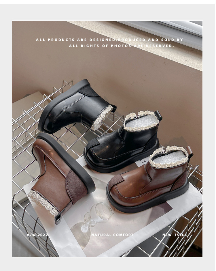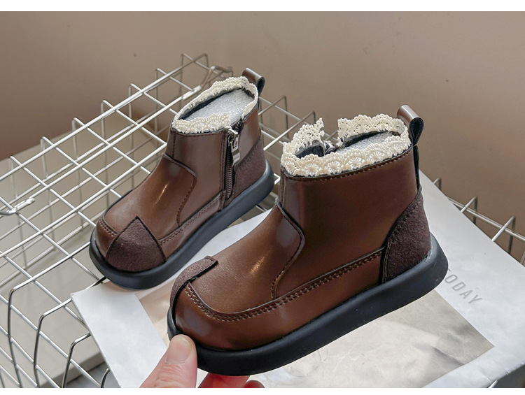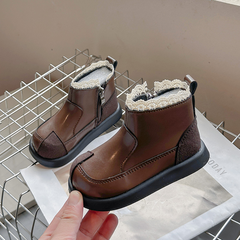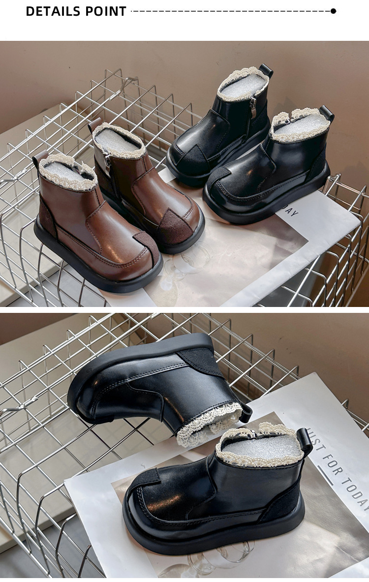 레이스 가을과 겨울 어린이 신발 1-3-6 세 어린이 마틴 부츠 소녀 부츠 기모 어린 소녀 공주 발목 부츠
