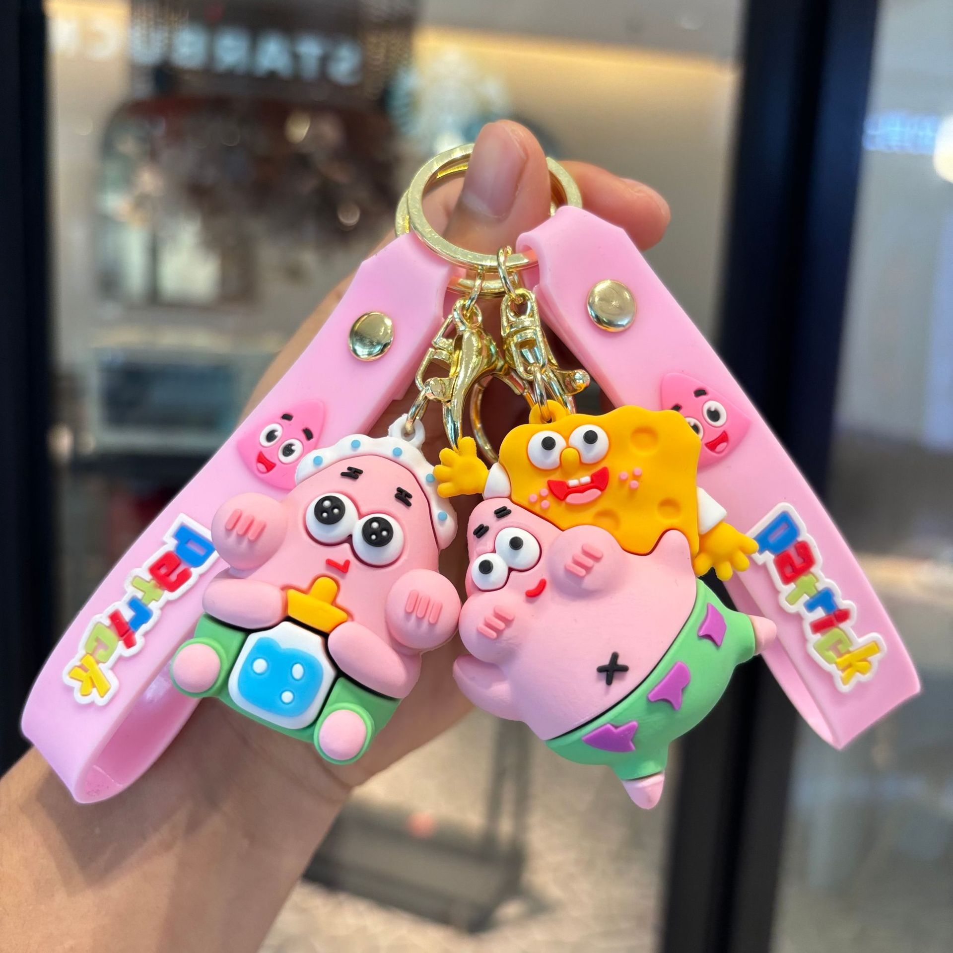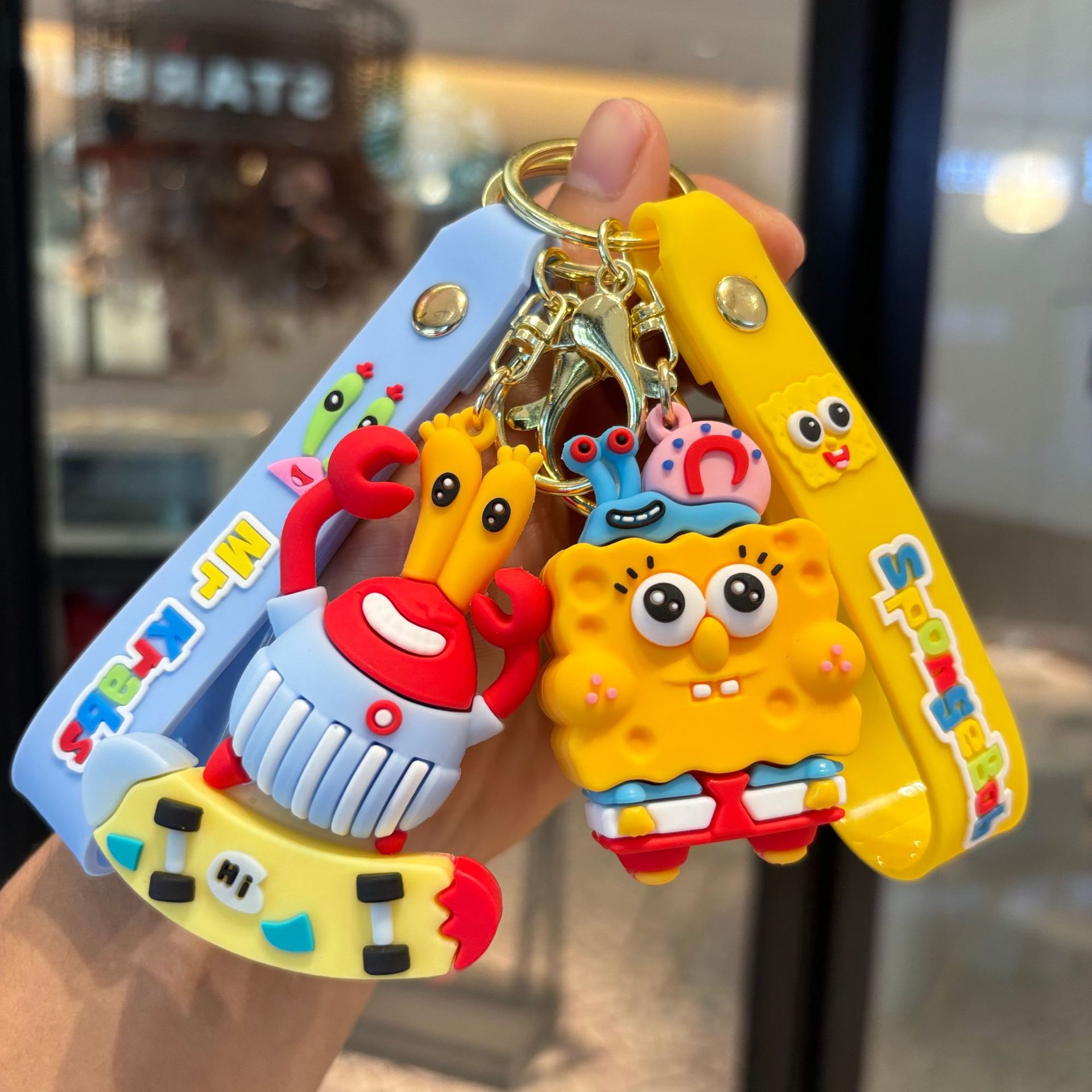국경 간 스폰지 밥 키 체인 펜던트 유료 귀여운 인형 잡기 아기 기계 작은 선물 키 체인 도매