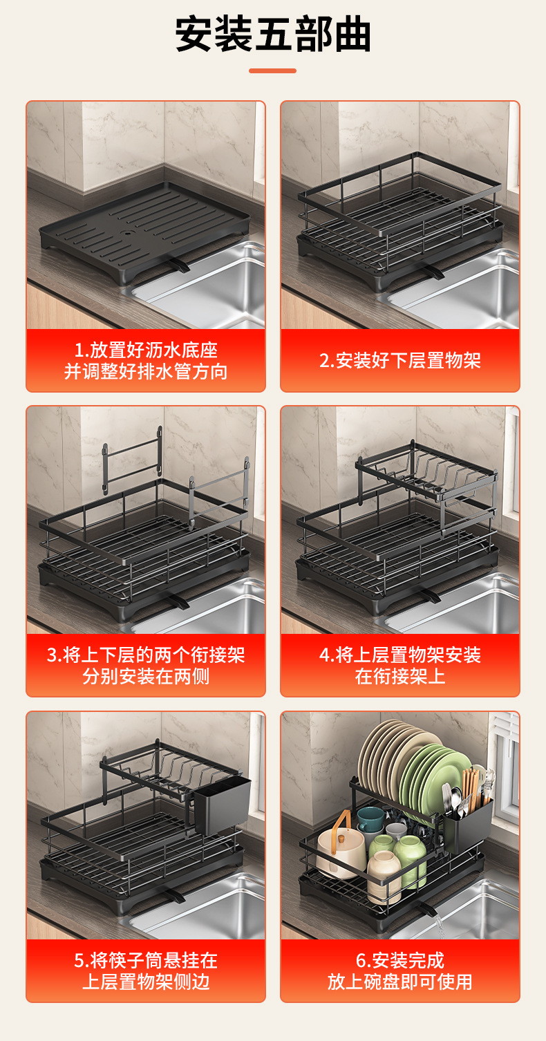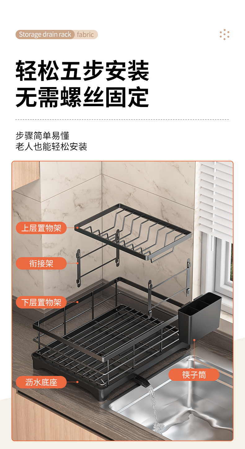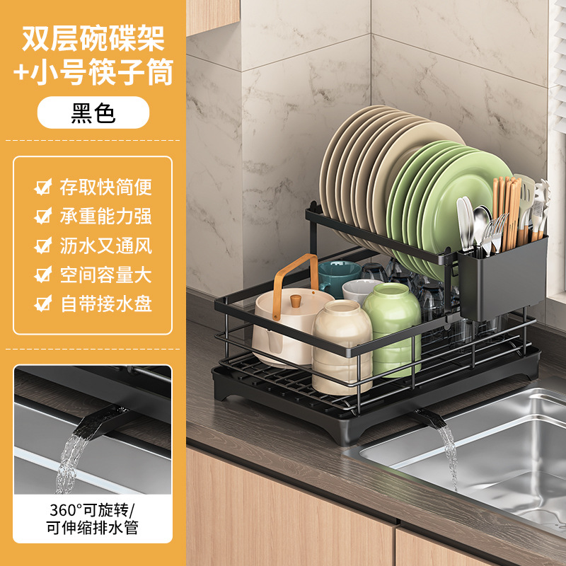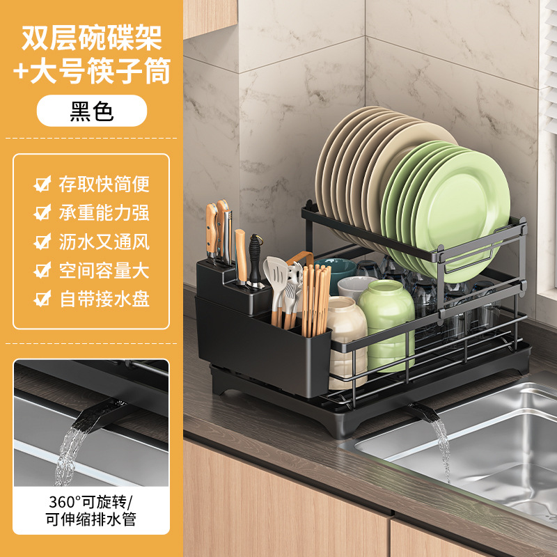 • 블랙 배수 랙 더블 레이어 + 젓가락 꽂이