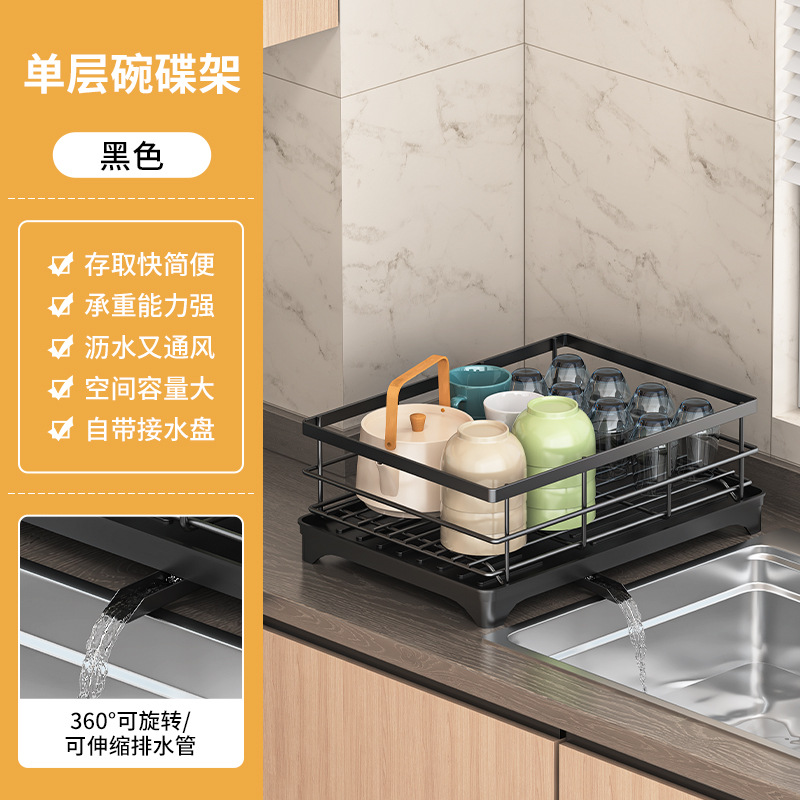 • 검정색 식기 건조대 - 단층