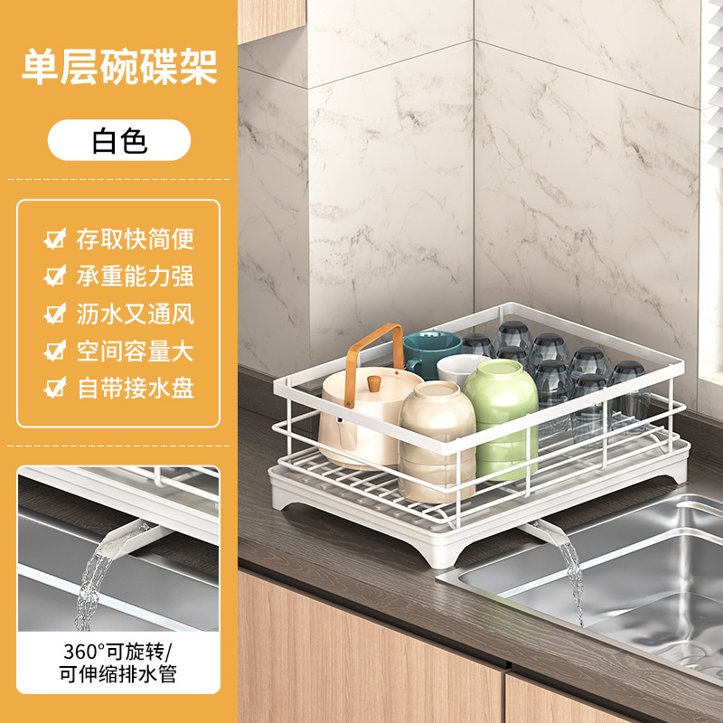 • 흰색 식기 건조대 - 단층