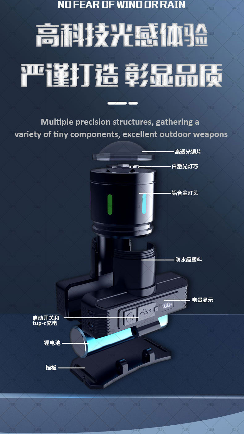 국경 간 형광 유도 전조등 알루미늄 합금 흰색 레이저 슈퍼 밝은 머리 장착 작업 광부의 램프 야외 등산 낚시 램프