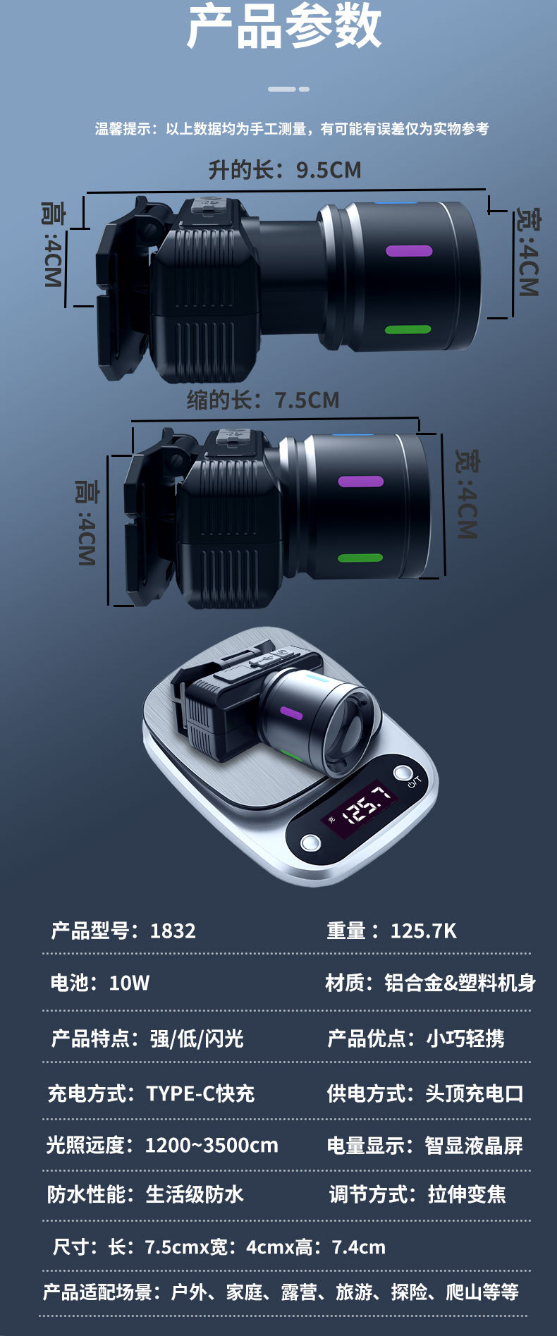 产品尺寸:7.5*4*7.47cm