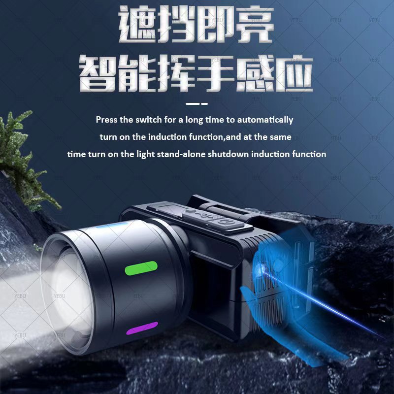 국경 간 형광 유도 전조등 알루미늄 합금 흰색 레이저 슈퍼 밝은 머리 장착 작업 광부의 램프 야외 등산 낚시 램프스토어 가기