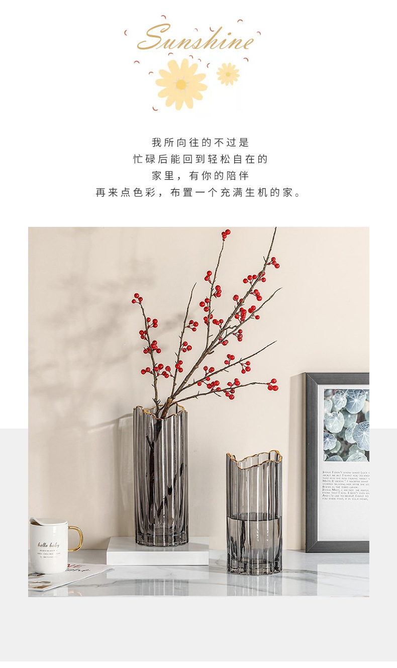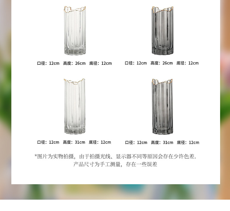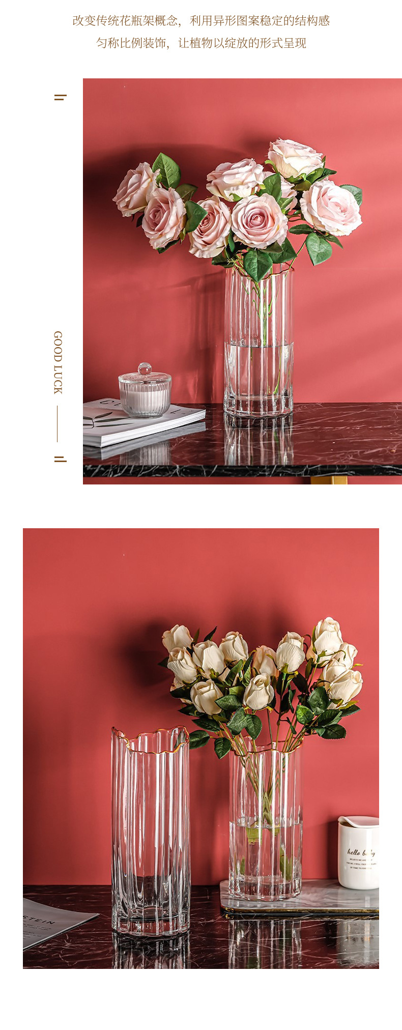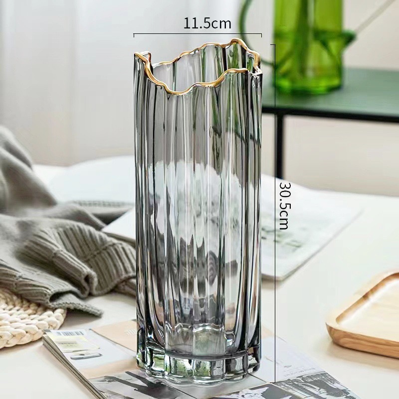 대형 직선형 꽃병, 빙하 디자인 유리 꽃병, 고급스러운 장식품, 수경 재배용 부겐빌라 꽃병스토어 가기