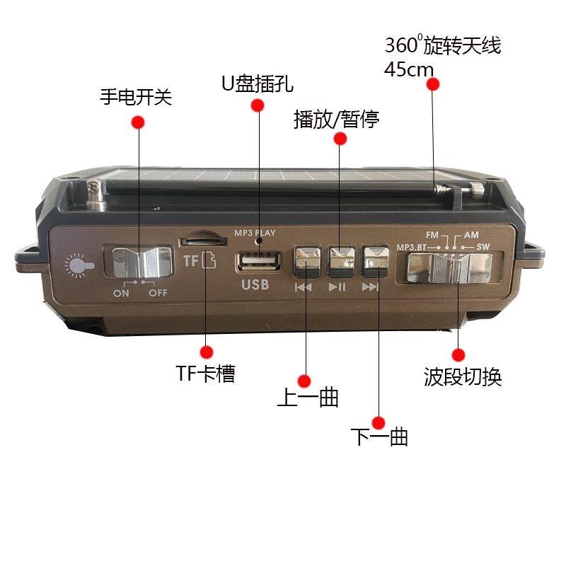 새로운 휴대용 라디오 태양 손 크랭크 발전 노인 반도체 멀티 밴드 블루투스 카드 조명 램프