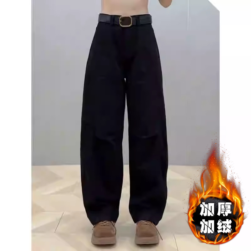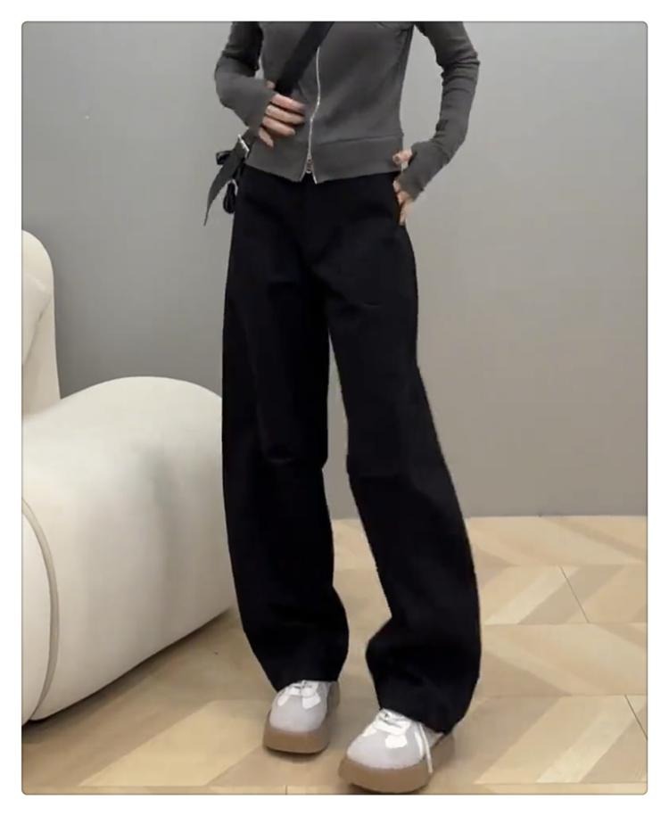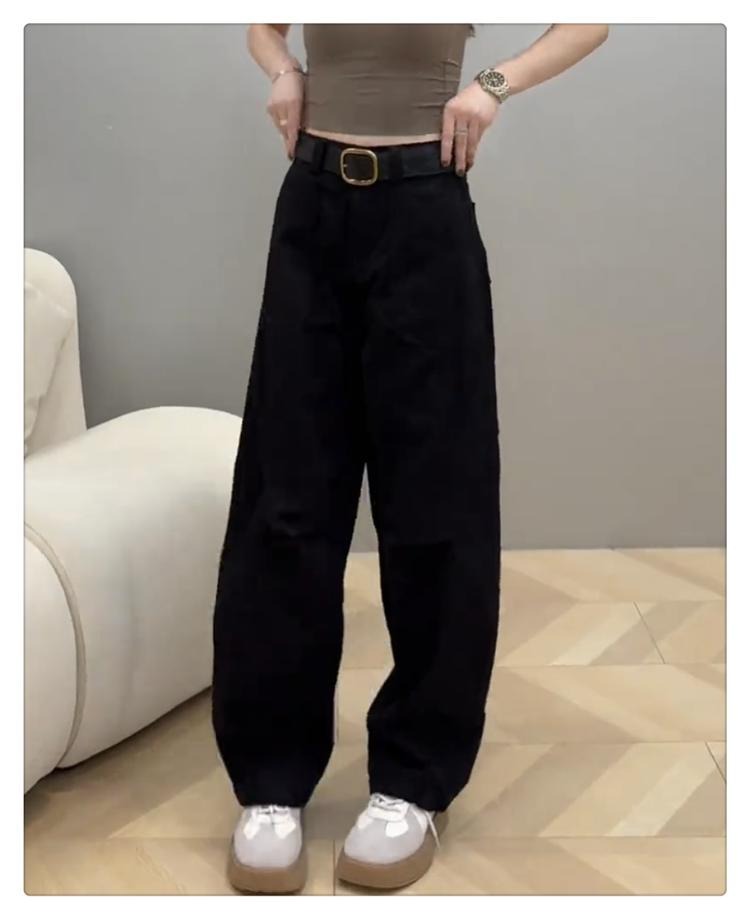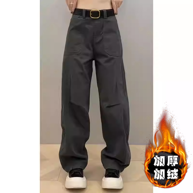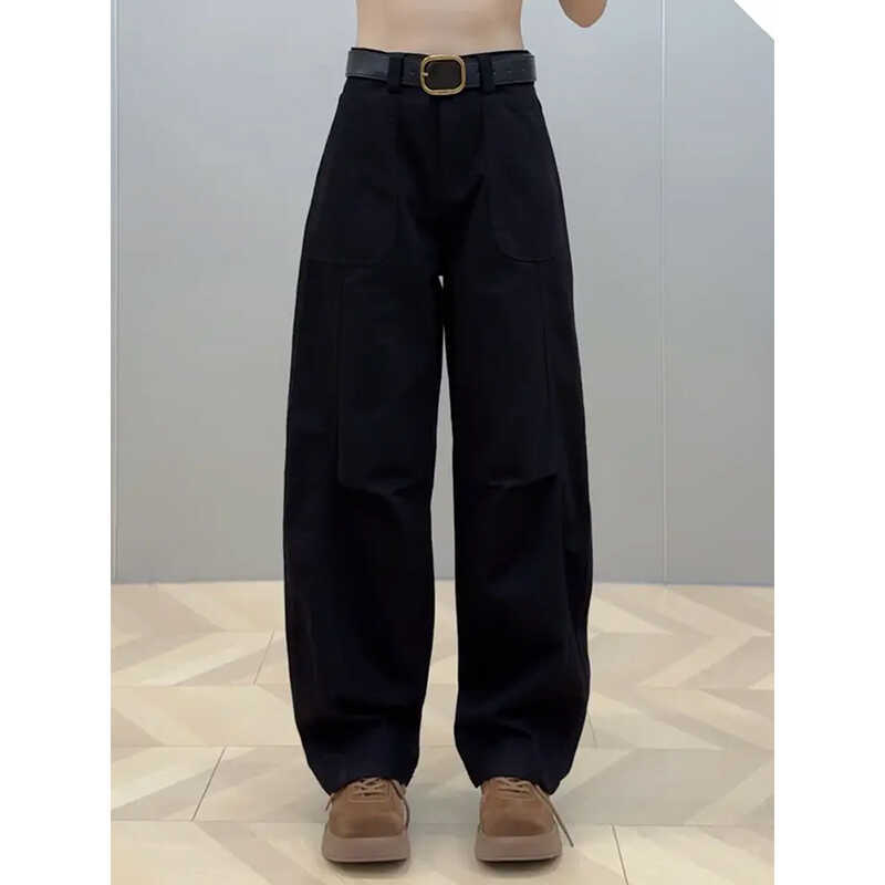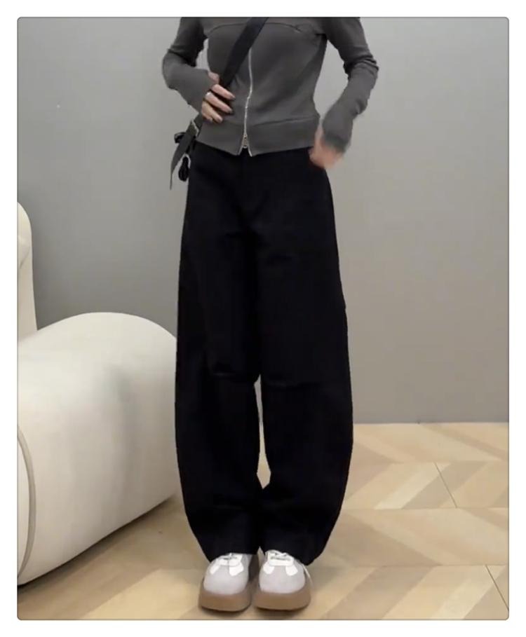 플러스 사이즈 작업복 캐주얼 청바지 여성의 가을 통통녀 느슨한 슬림 마체테 바나나 바지 높은 허리 스트레이트 와이드 다리 바지