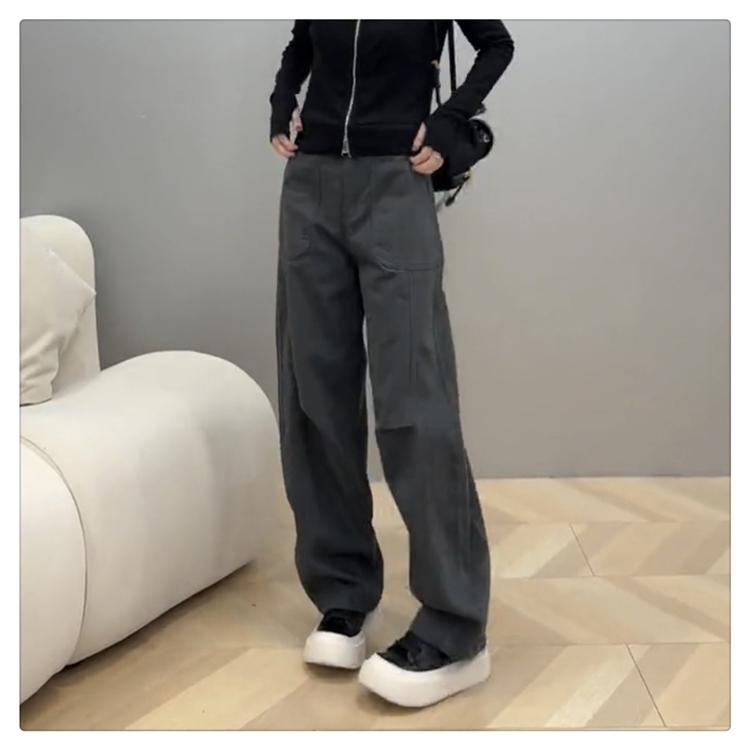 플러스 사이즈 작업복 캐주얼 청바지 여성의 가을 통통녀 느슨한 슬림 마체테 바나나 바지 높은 허리 스트레이트 와이드 다리 바지스토어 가기
