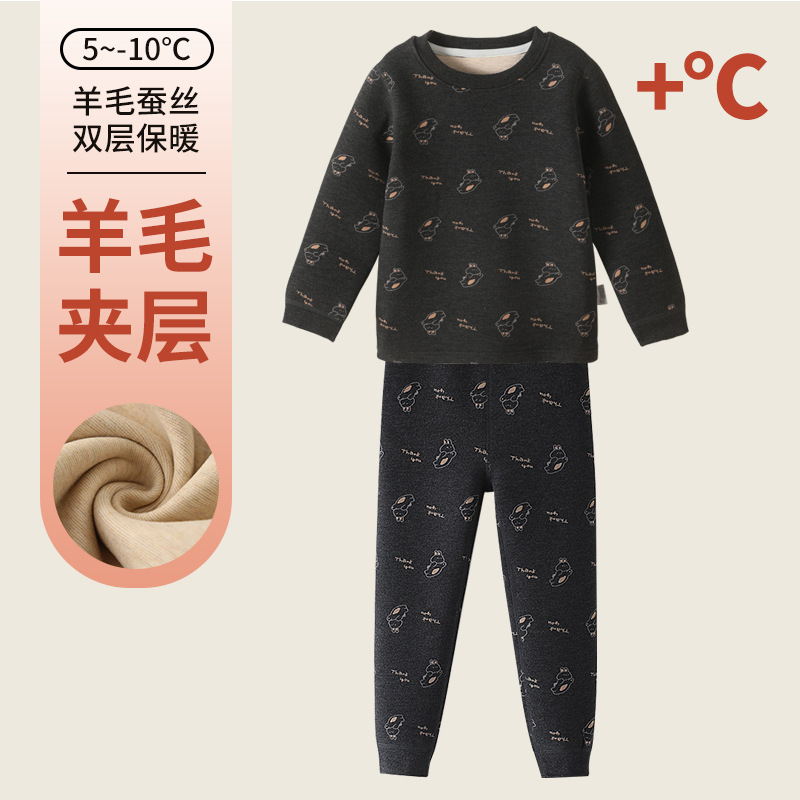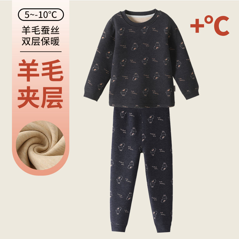 어린이 벨벳 열 속옷 세트 새 겨울 잠옷 더블 레이어 두꺼운 소녀 실크 홈 옷 가을과 겨울