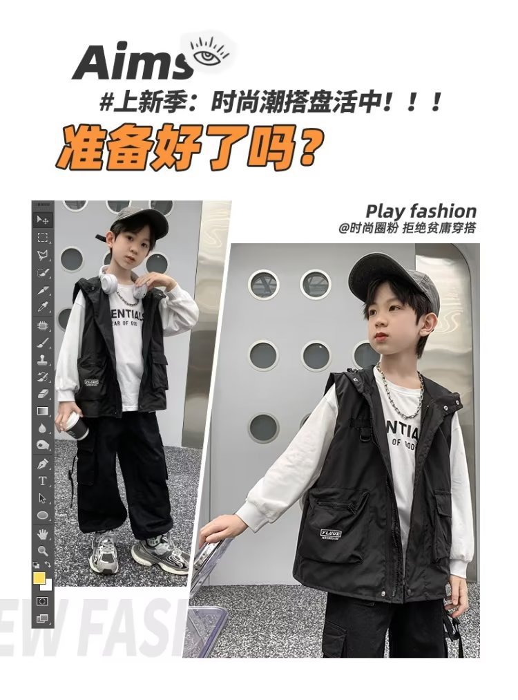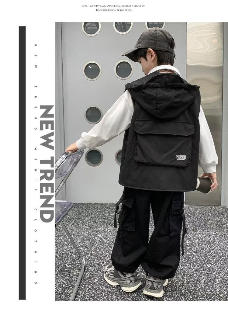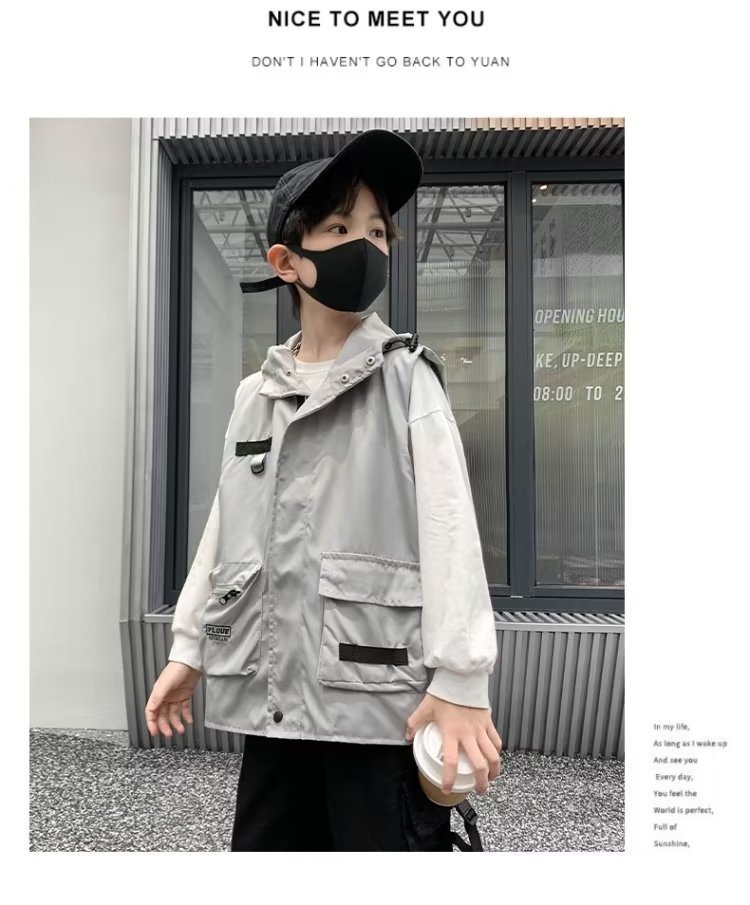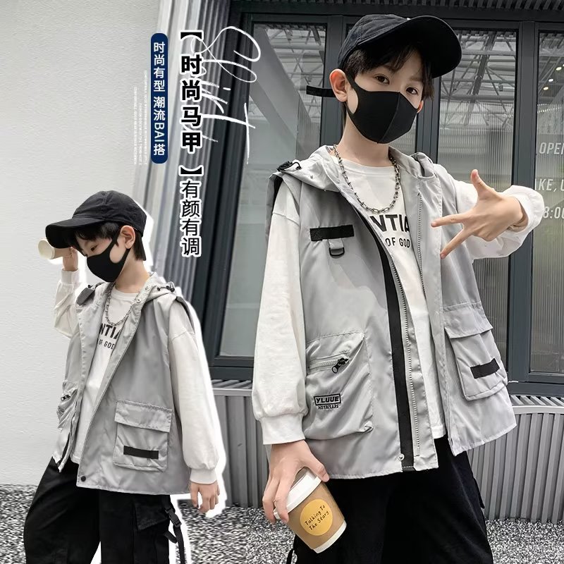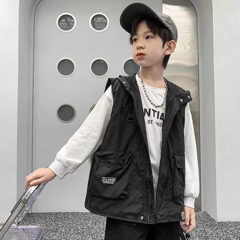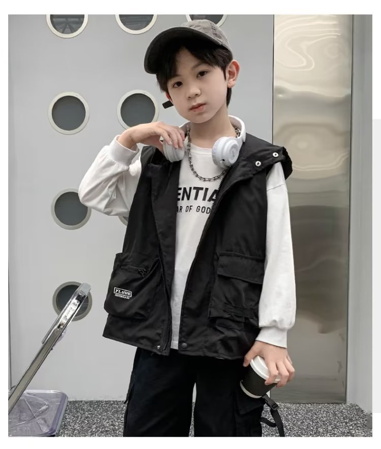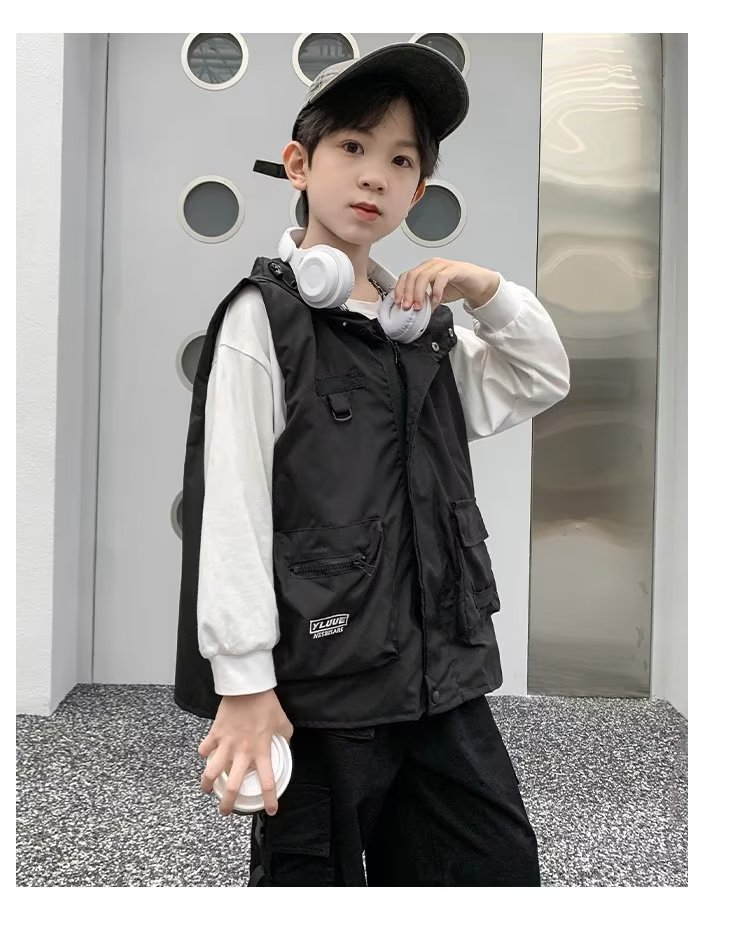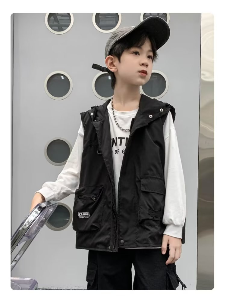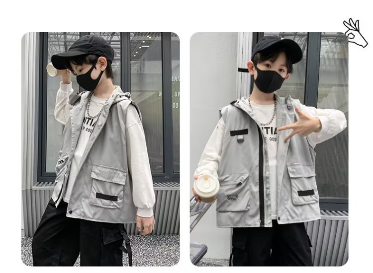 소년 작업복 후드조끼 어린이 잘 생긴 한국식 조끼 아기 가을 서양식 캐주얼 조끼스토어 가기
