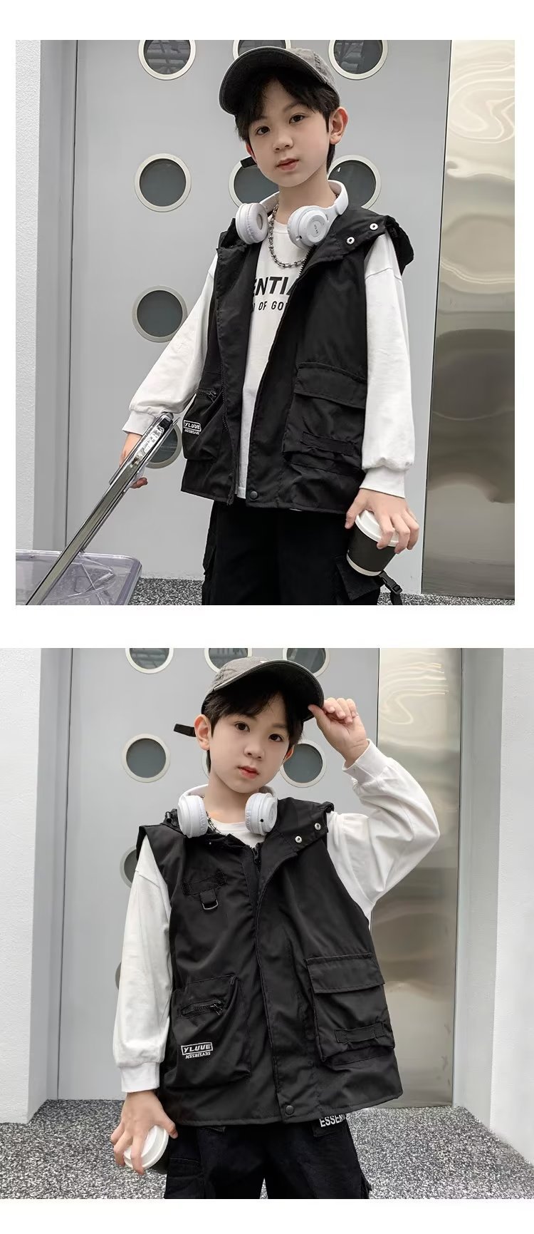 소년 작업복 후드조끼 어린이 잘 생긴 한국식 조끼 아기 가을 서양식 캐주얼 조끼