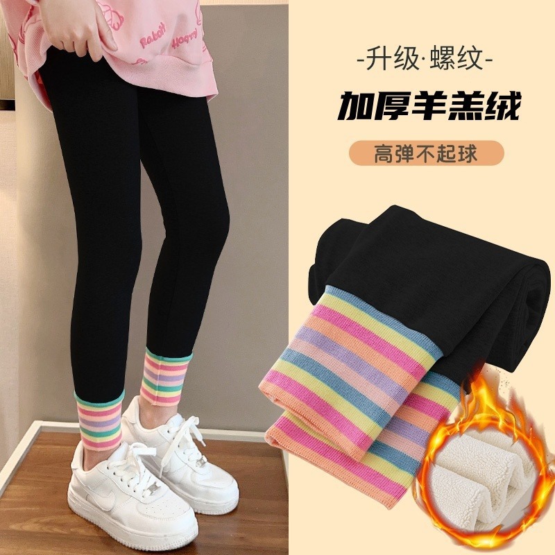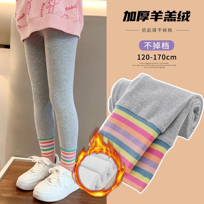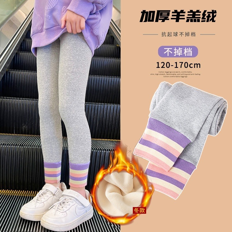 양고기 양털 걸스 레깅스 기모 두꺼운 서양식 어린이 바지가 중대형 어린이 바지 가을 및 겨울 아우터웨어 스트레칭