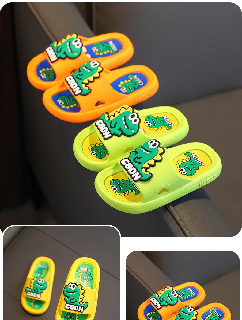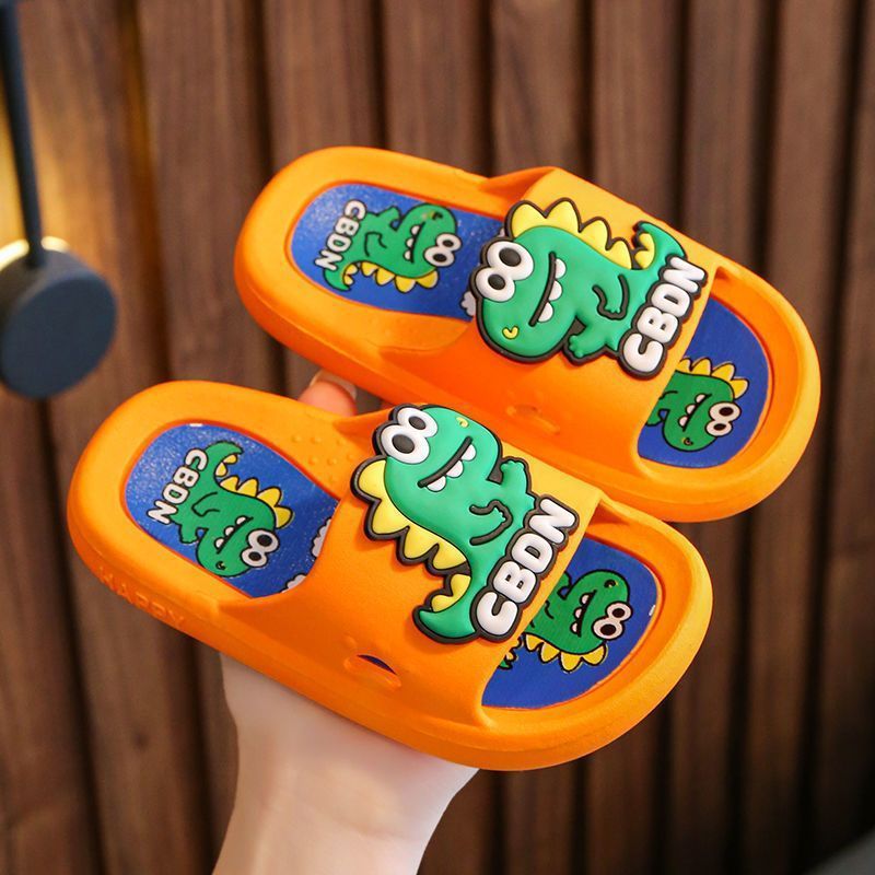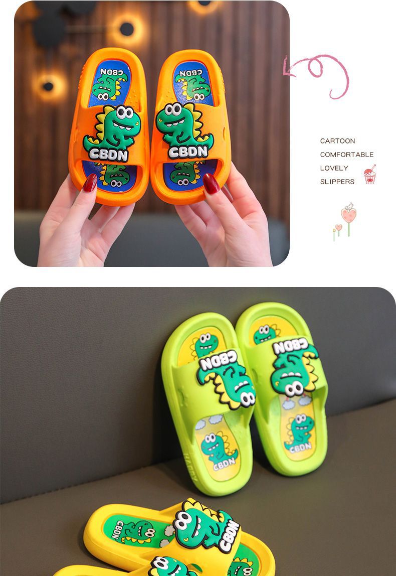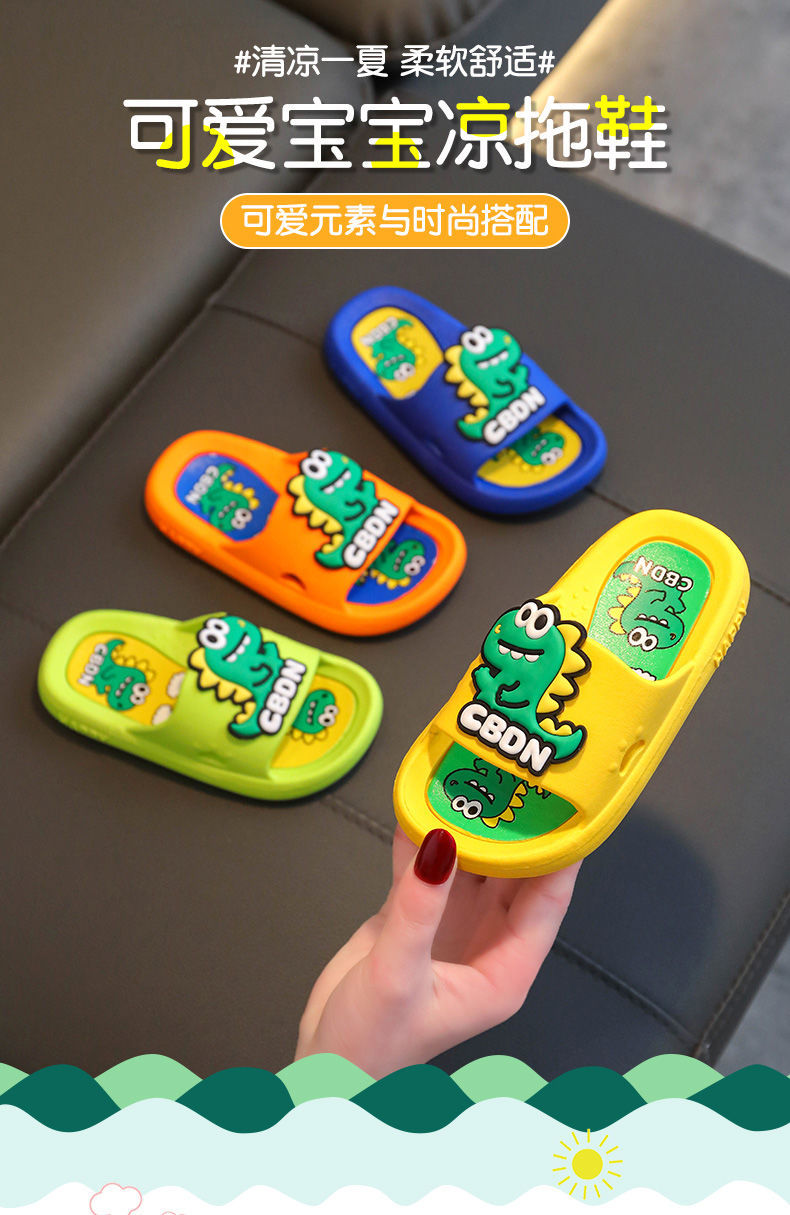 2024 남성과 여성을위한 새로운 어린이 슬리퍼 3-12 세 어린이 미끄럼 방지 만화 공룡 부드러운 밑창 여름 샌들