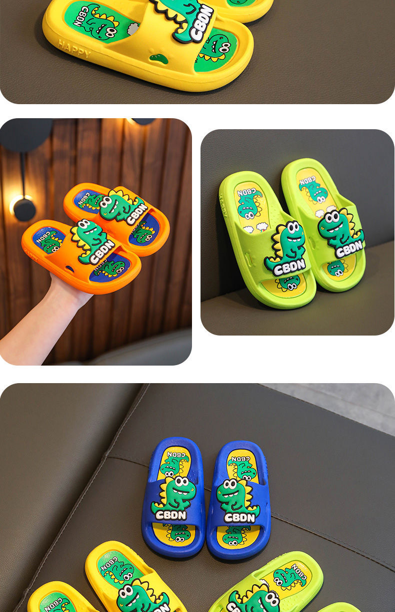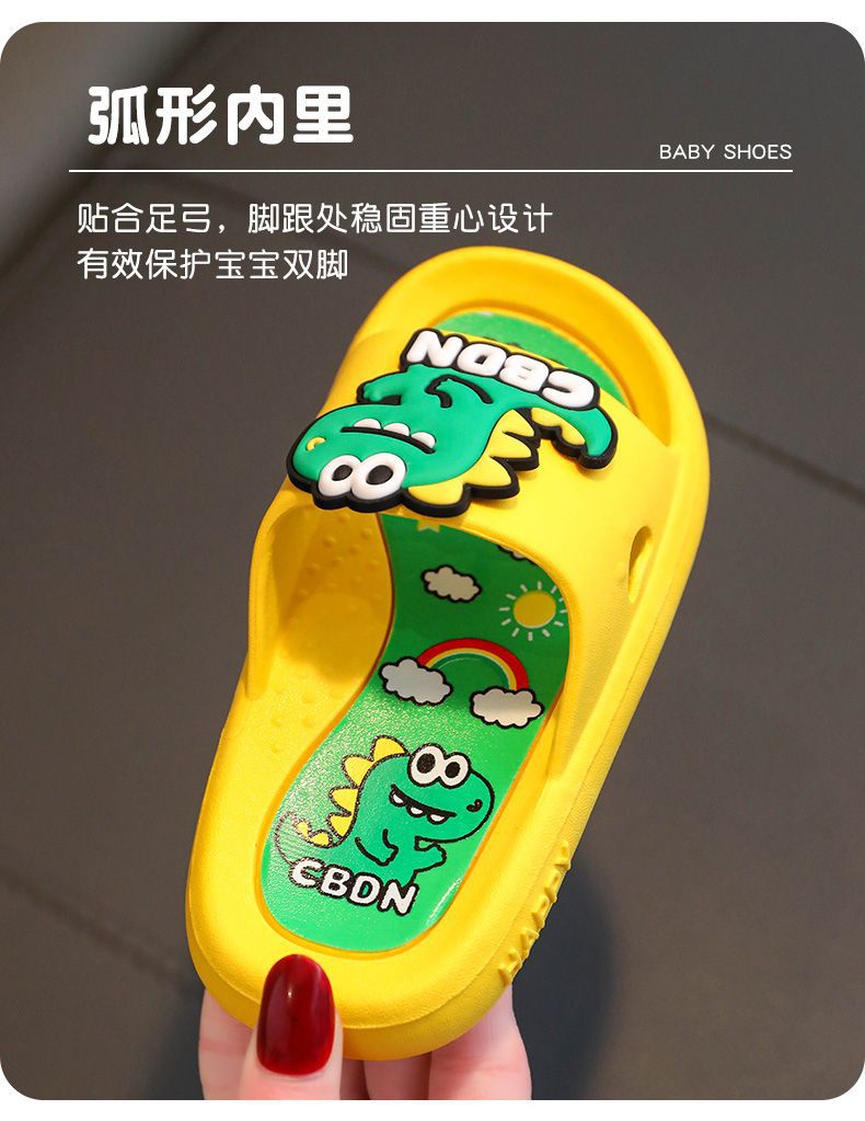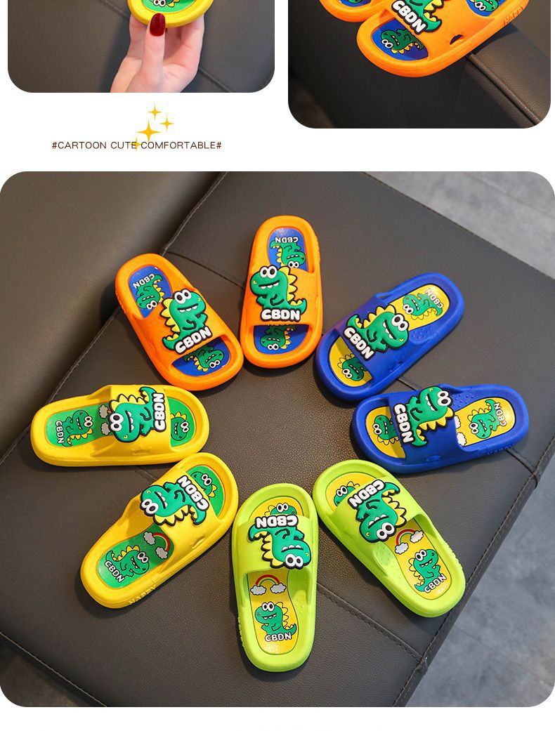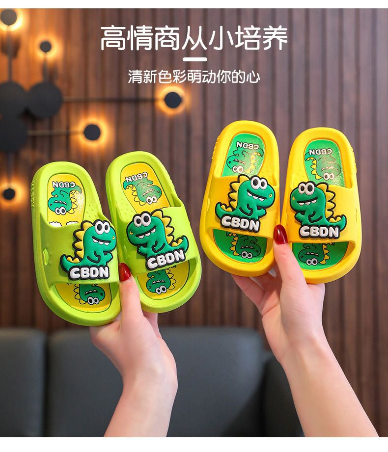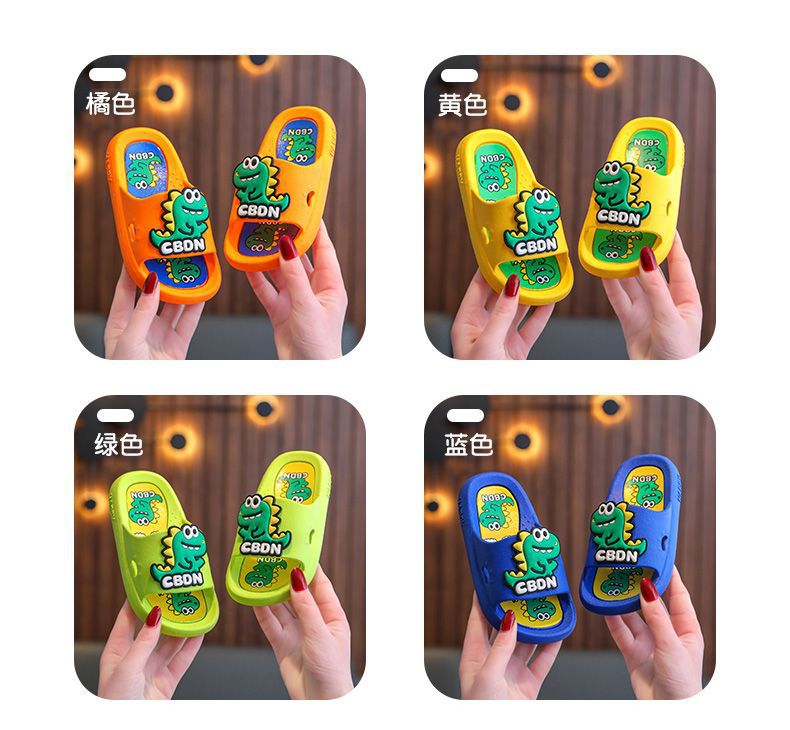 2024 남성과 여성을위한 새로운 어린이 슬리퍼 3-12 세 어린이 미끄럼 방지 만화 공룡 부드러운 밑창 여름 샌들