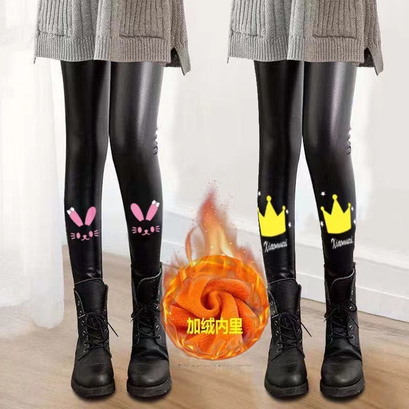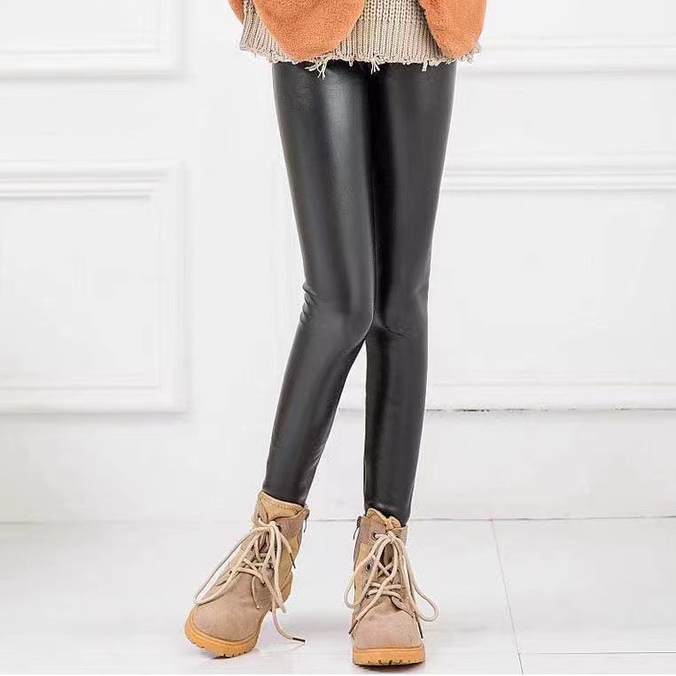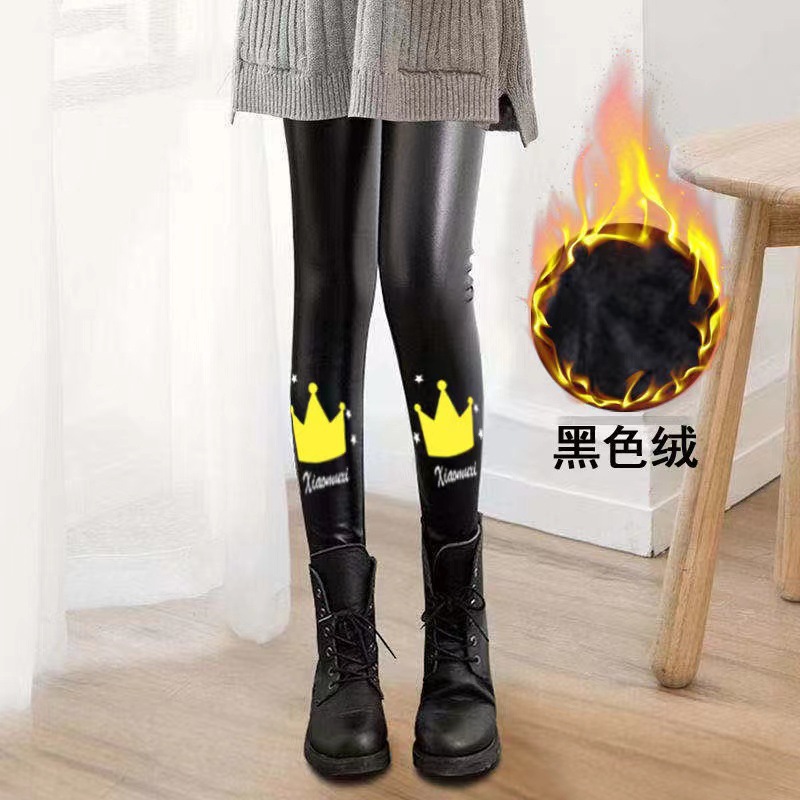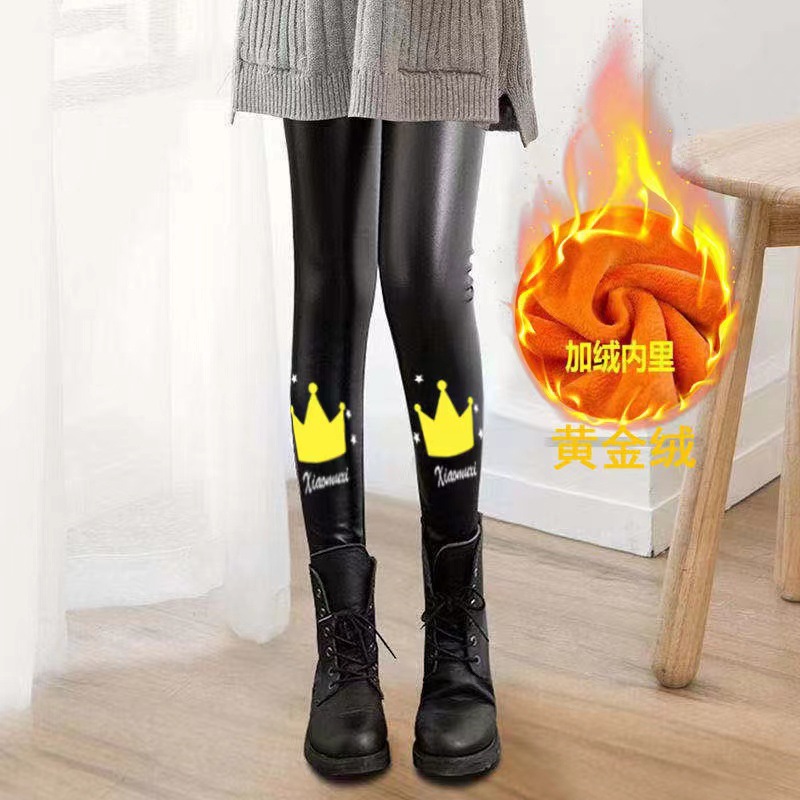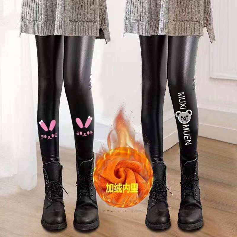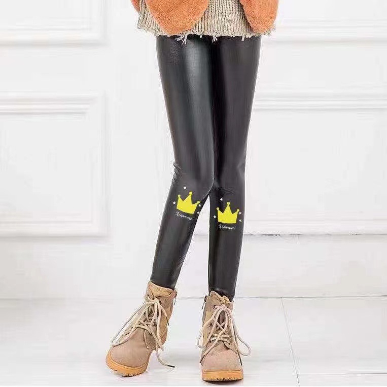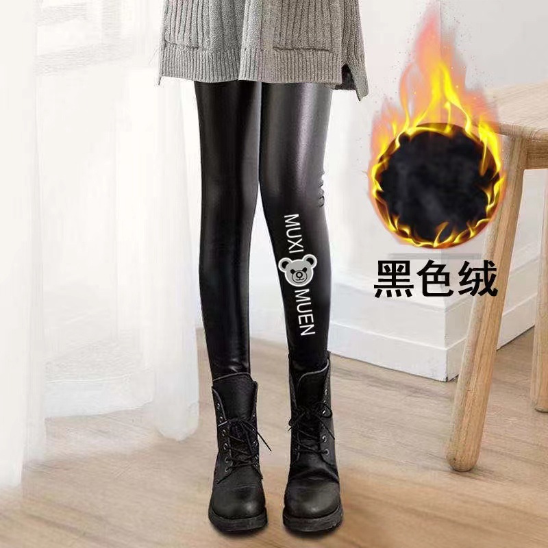 어린이 모조 가죽 바지 가을, 겨울 스타일 소녀 벨벳 두꺼운 레깅스 중소 어린이 슬림 피트 외부 가죽 바지 제조 업체 도매