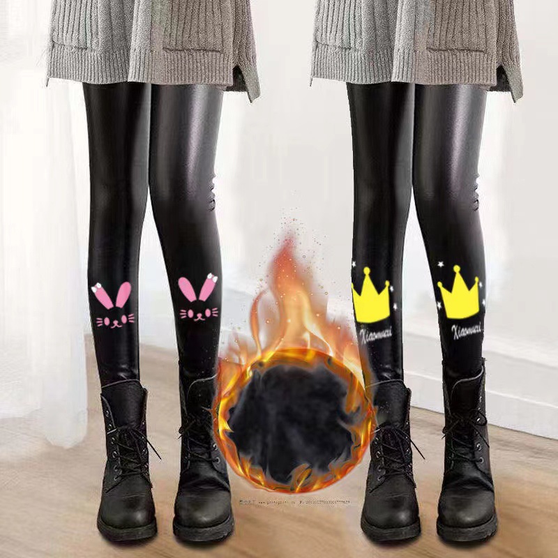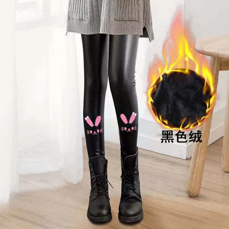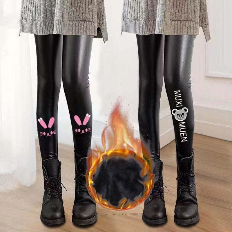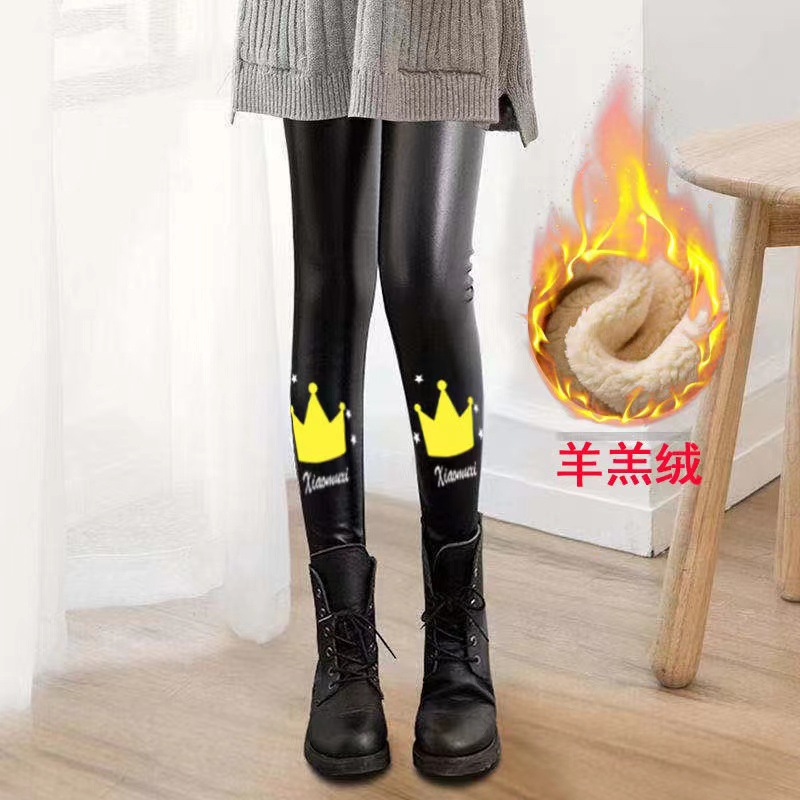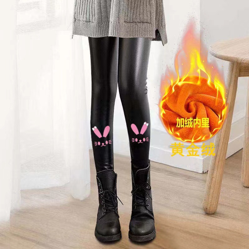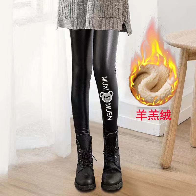어린이 모조 가죽 바지 가을, 겨울 스타일 소녀 벨벳 두꺼운 레깅스 중소 어린이 슬림 피트 외부 가죽 바지 제조 업체 도매